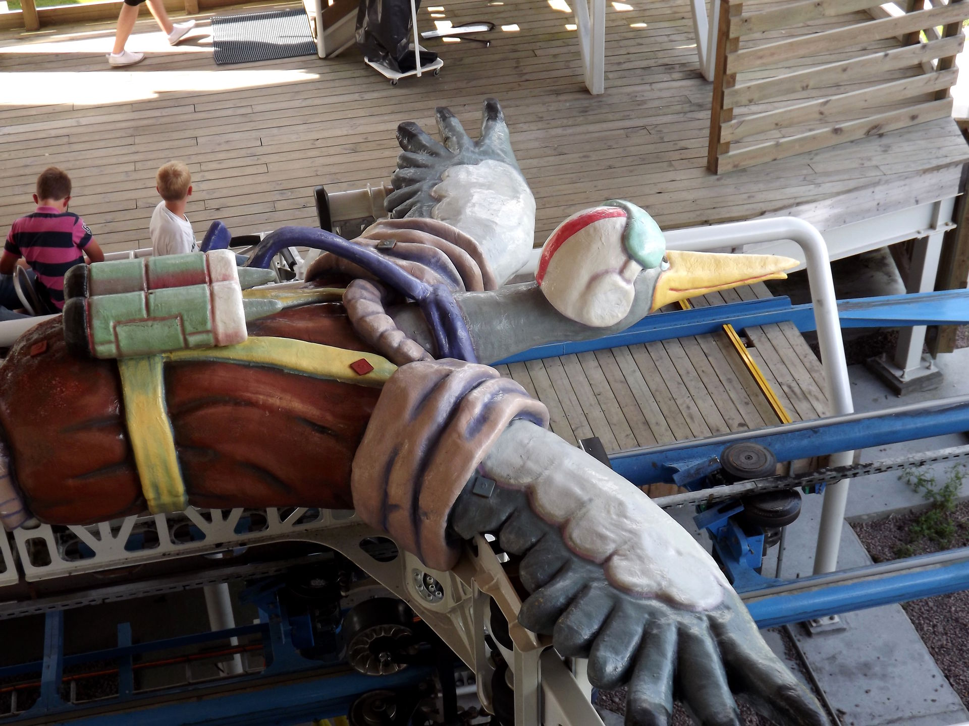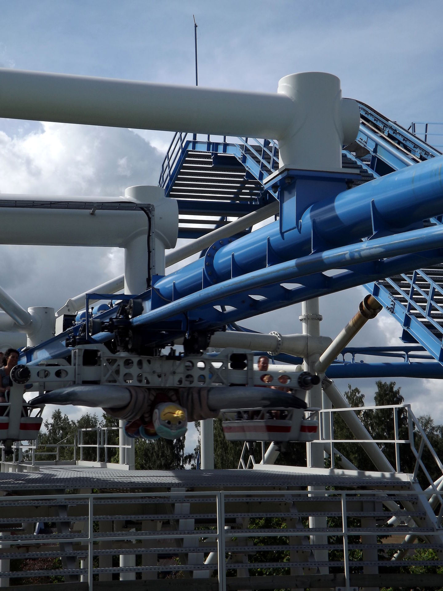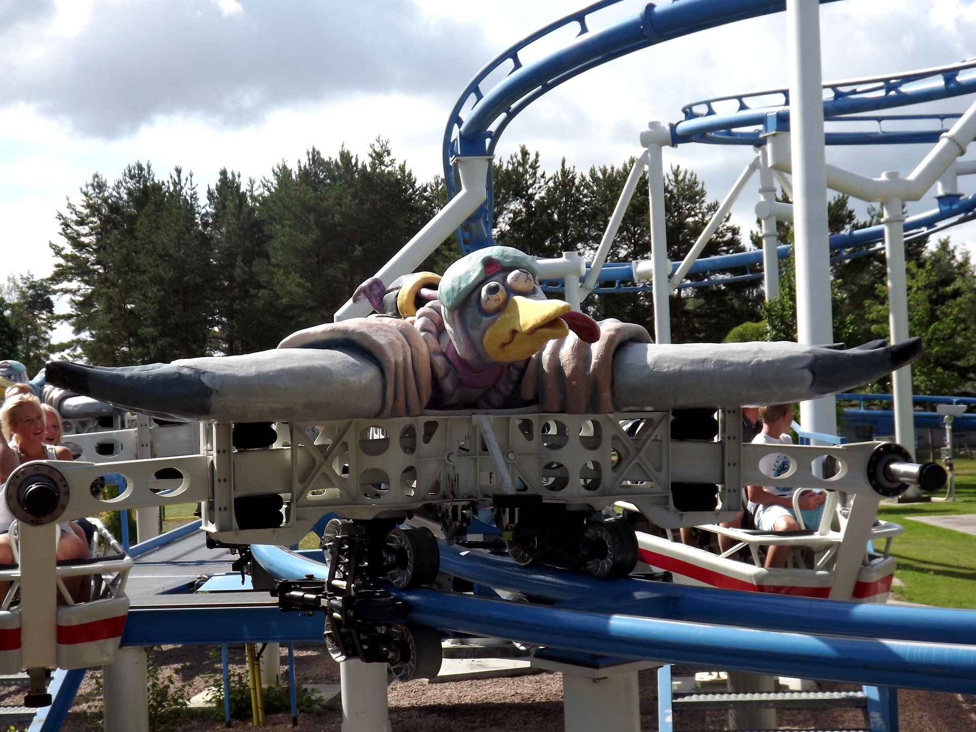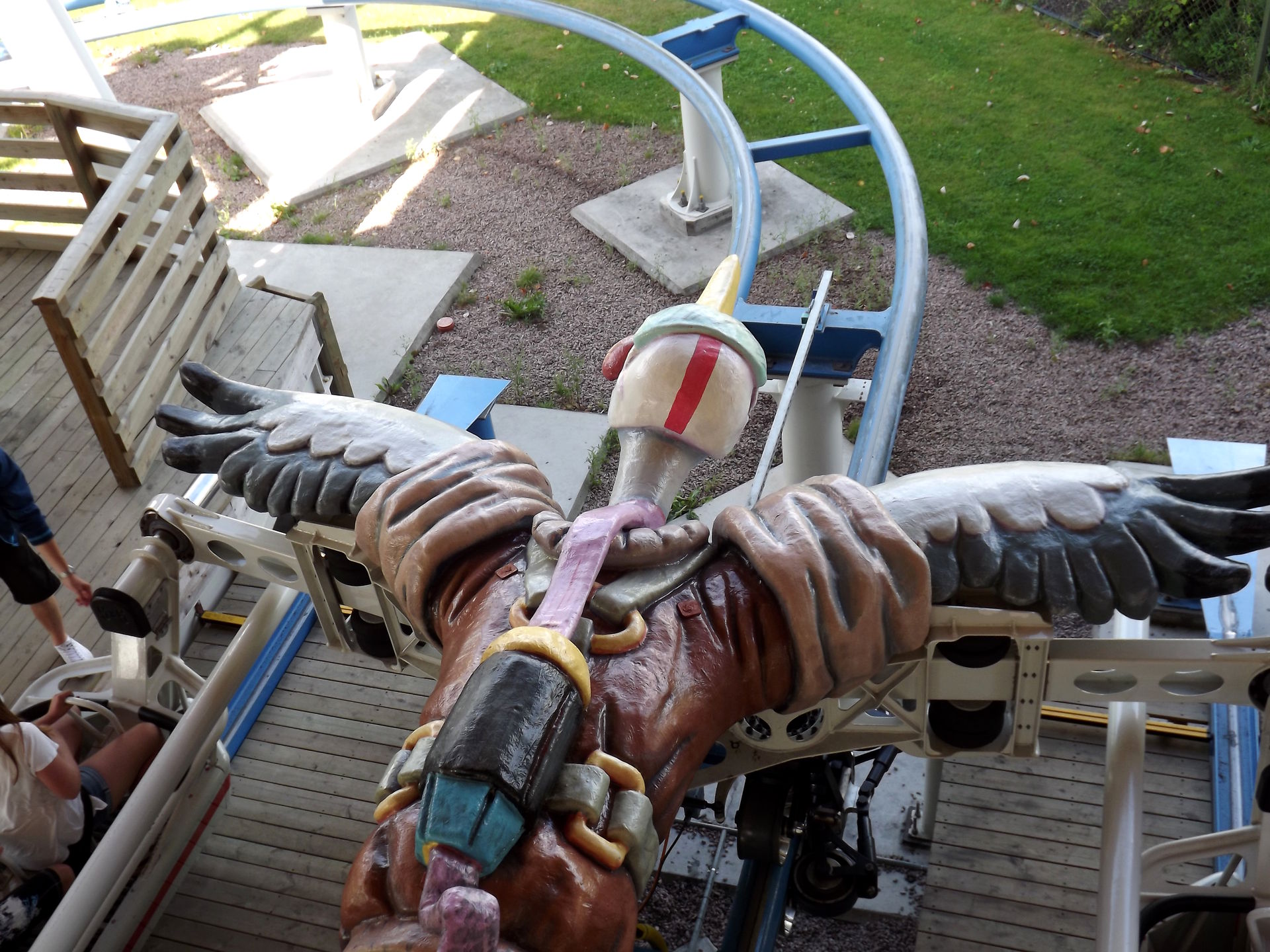 Nicht weit vom Spinner entfernt steht der Hauptbesuchsgrund vom Skara Sommarland, denn S&S bereichtere im Jahr 2009 den Park mit einem echten Unikat, dem Free Fly “Tranan” (Könnte rein optisch auch im BonBon-Land stehen). Die Bahn sieht ziemlich spektakulär und abgefahren aus, quietscht außerdem ohnegleichen und ist einfach nur seltsam. Ja, seltsam trifft es eigentlich am besten, denn so richtig Scheiße ist die Bahn nicht, so richtig toll aber auch nicht. Keine Ahnung. Seltsam eben.