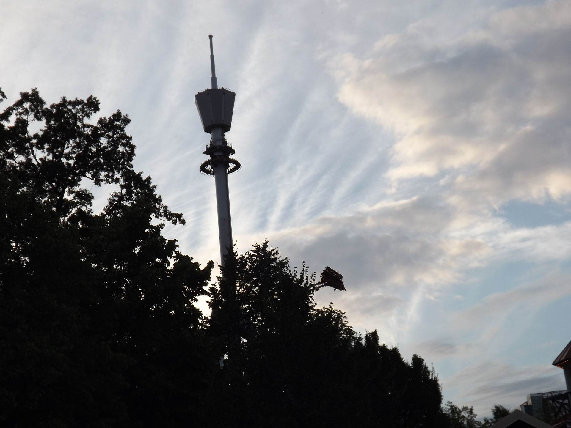 Der Aussichtsturm auf dem Berg wurde ja inzwischen zu AtmosFear umgebaut, sieht aber irgendwie gar nicht so hoch aus wie ich mir das vorgestellt hatte. Die Aussicht von oben ist trotzdem ziemlich genial und der Fall selber kann auch was.