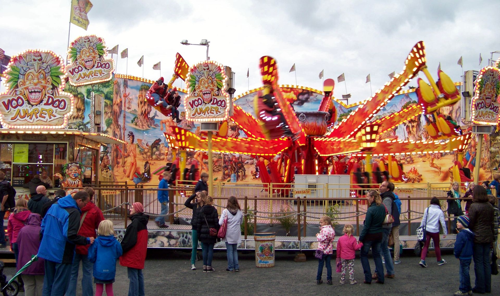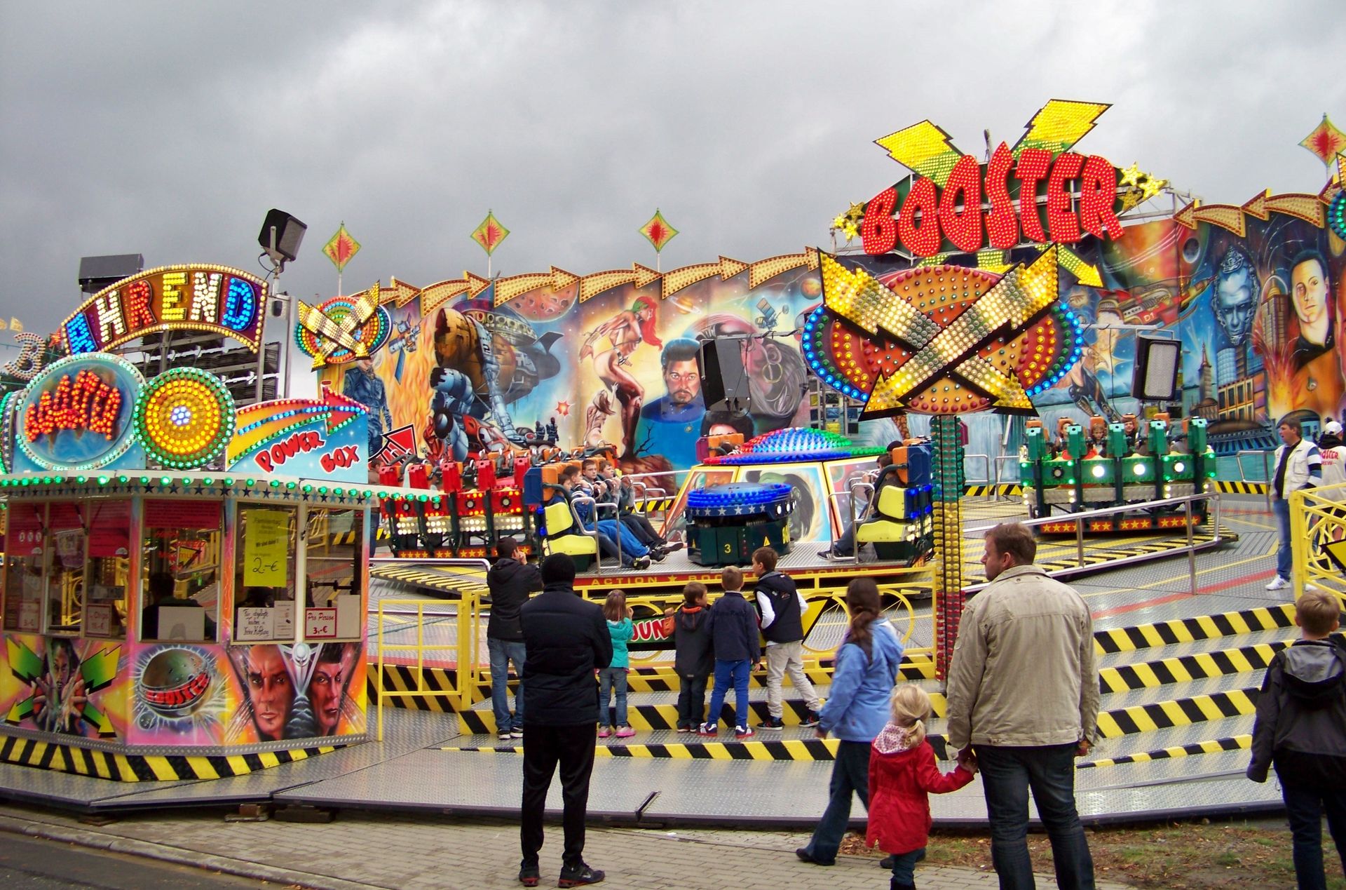 Die Oeseder Kirmes ist eine Platzkirmes mit äußerst reizvoller Aufteilung im Georgsmarienhütter Ortsteil Oesede – wie der Name der Veranstaltung schon andeutet. Trotz teils eher regnerischer Witterung am vergangenen Freitag war der Platz wirklich gut besucht. Auch die Fahrgeschäfte fanden ihr Publikum. Nur Holzems Avenger und Weltes Scheibenwischer Devil Dance hatten Mühe, ihr Publikum auf dem Platz zu finden. Beide standen allerdings auch ein wenig abseits zu den restlichen großen Fahrgeschäften. Auch etwas eigenartig ist die Platzierung der beiden Musikexpresse auf direkter Sichtachse zueinander. Eigentlich standen da nur zwei Bierstände und Ahrends Booster dazwischen.