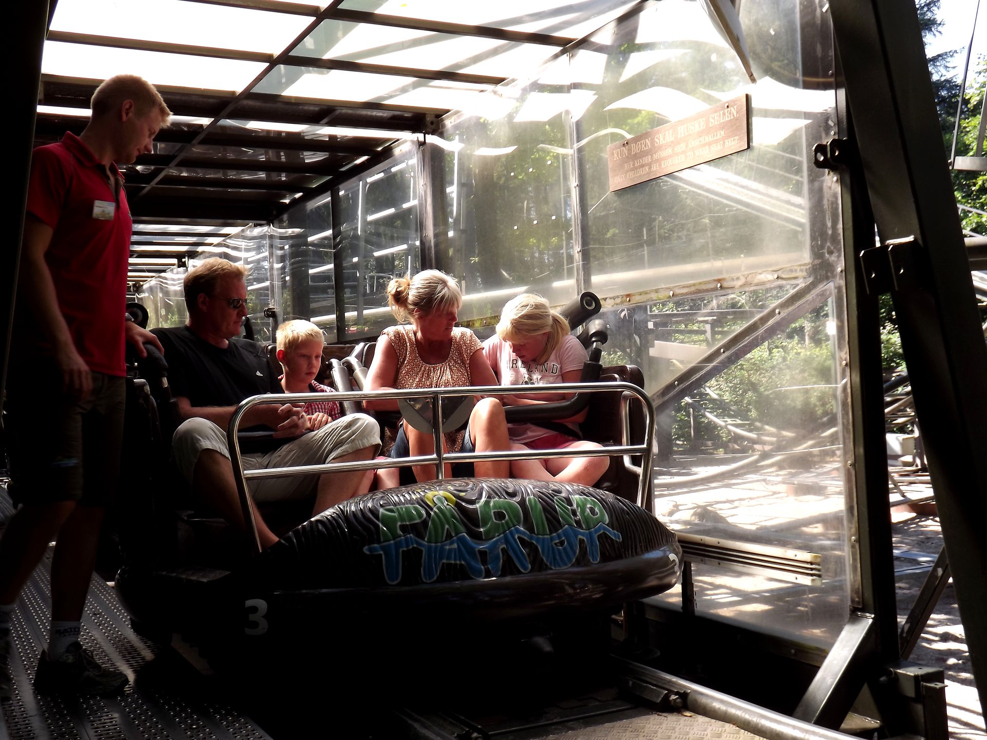 Vekoma, Orkanan, seine Runden. Die Bahn erreicht für einen Family Coaster eine wirklich beachtliche Geschwindigkeit und ist bei der Lage auf dem See ein echter Hingucker. Leider ist die Kapazität nicht besonders gut, weil Orkanen nur mit einem Zug betrieben werden kann. Zum Glück gibt es einen Singlerider Eingang, wodurch es nicht bei einer Fahrt geblieben ist.
