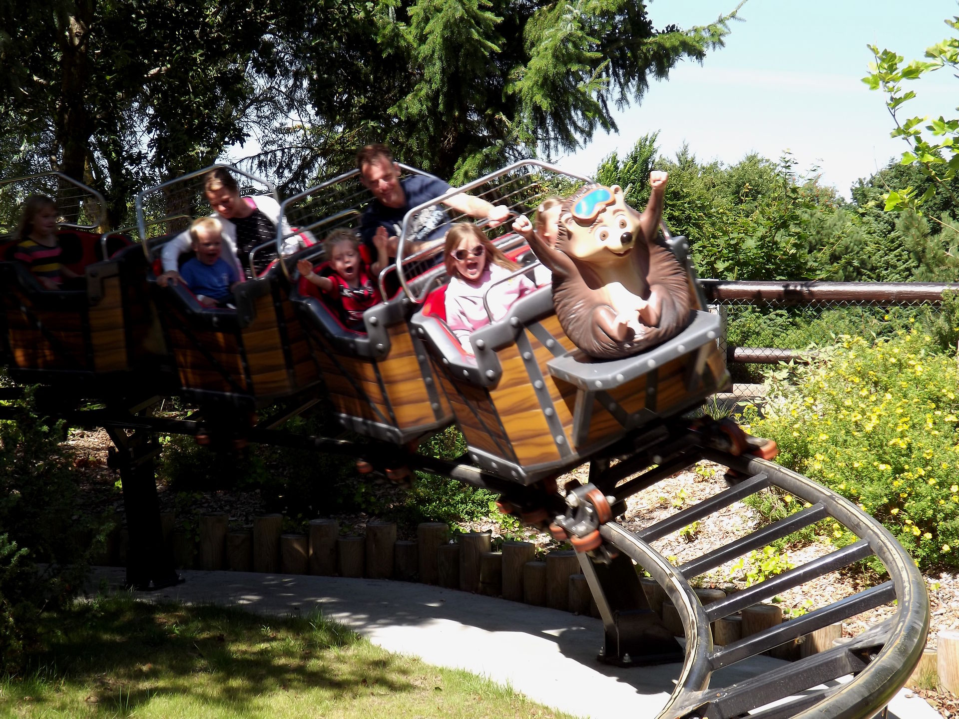 Vekoma Junior Coaster Mine Expressen, dadurch ist die Bahn unfassbar unfotogen, aber immerhin kann man in der Station ein Bild machen.