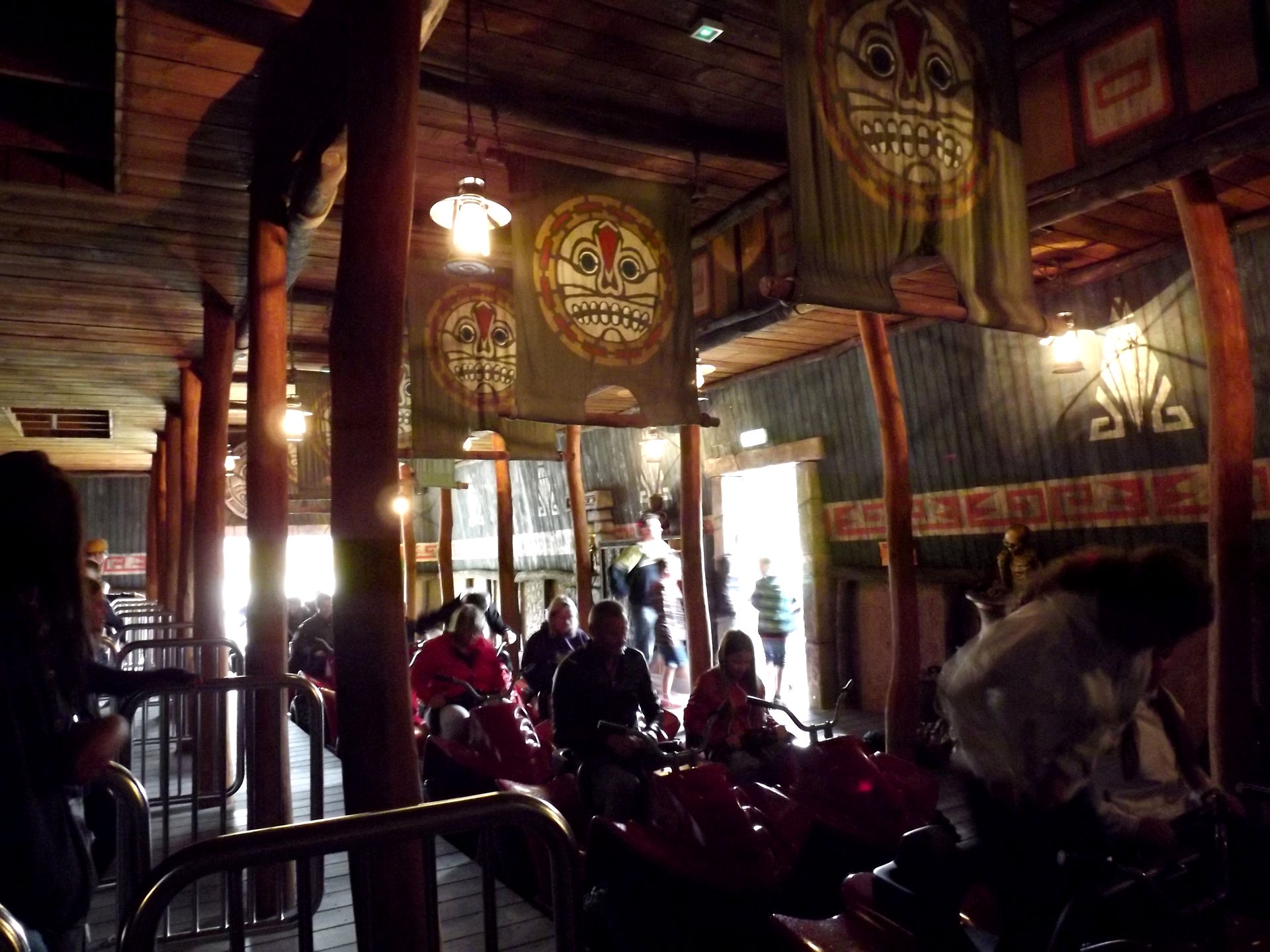 ... von der aus es in einen kleinen, aber sehr gelungenen Preshow Raum geht. Die Bahn selber hat uns Vormittags ein bisschen enttäuscht, konnte dafür warm gefahren am Nachmittag umso mehr überzeugen. Auch die ausgefallene Sitzposition auf den Quads ist erfrischend anders und spaßig. Leider drücken die Bügel extrem nach, was den Fahrspaß in der zweiten Hälfte etwas dezimieren kann. Aber ansonsten eine ganz tolle Neuheit und Bereicherung für den Park.
