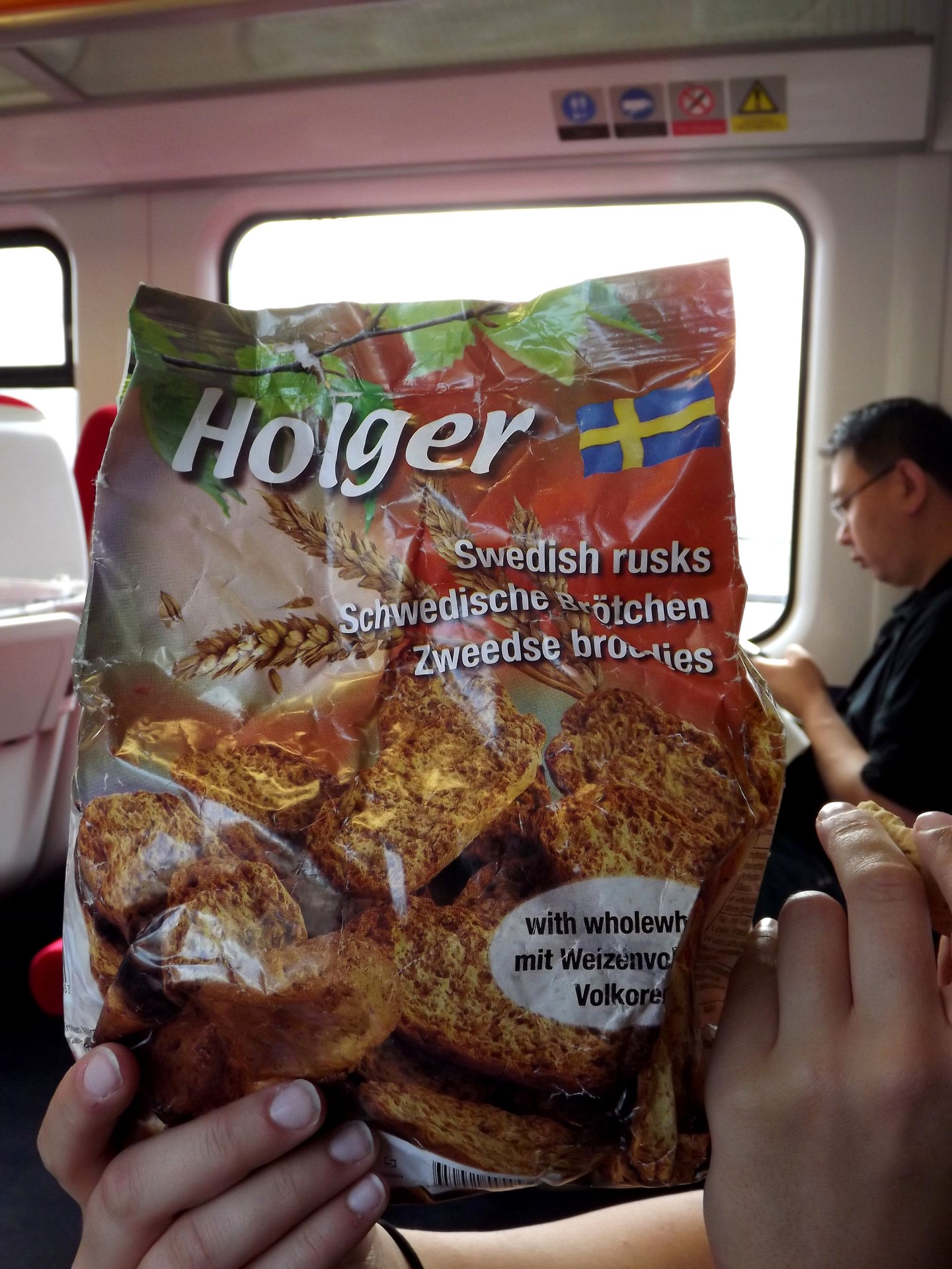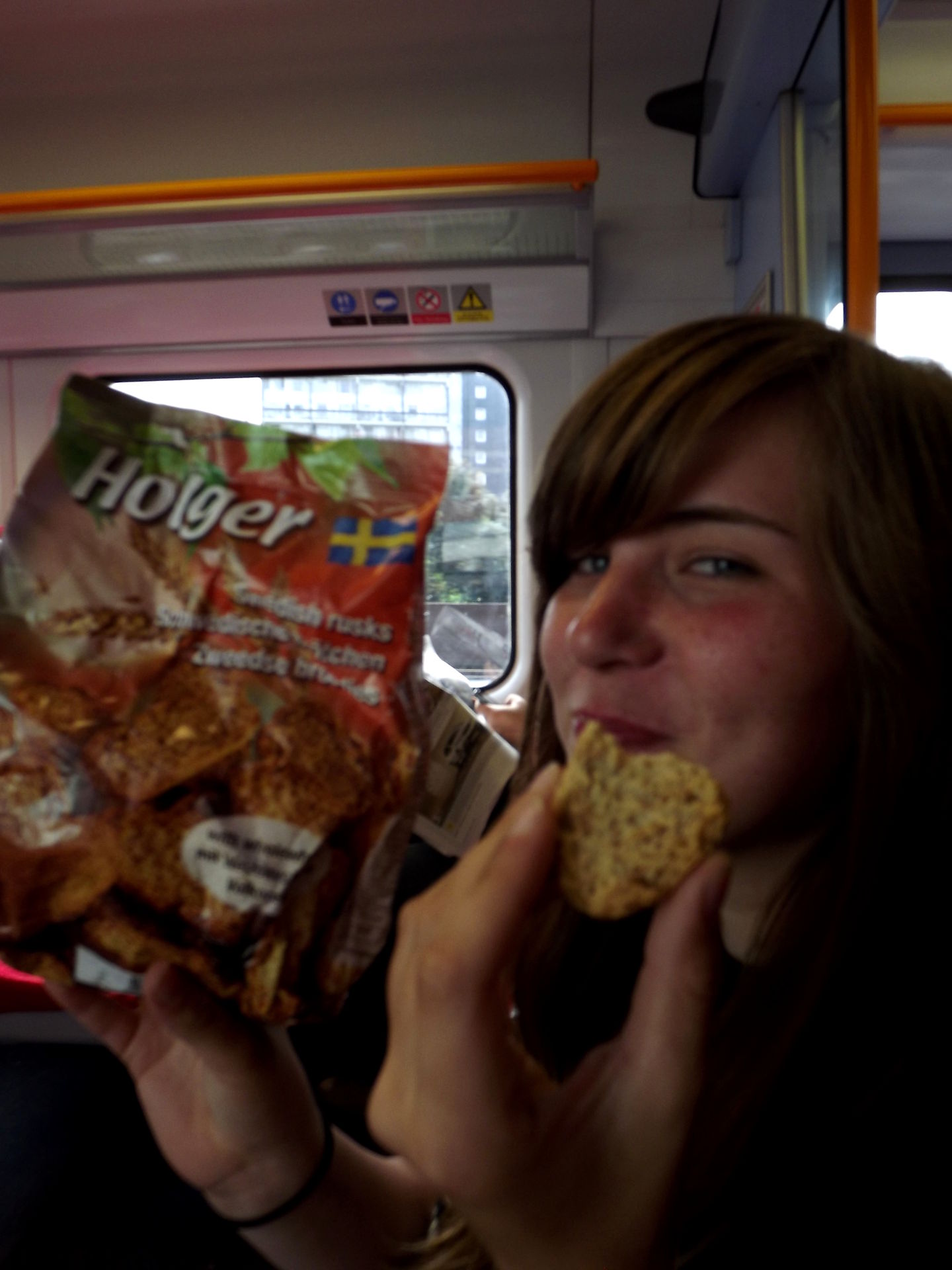 Das Timing hätte besser nicht sein können, denn der Flieger von Michael kam in der gleichen Minute in Stansted an wie unserer. Nachdem wir uns gefunden hatten saßen wir auch relativ schnell im Zug in Richtung Staines. Marie hat erst einmal Holger gegessen!