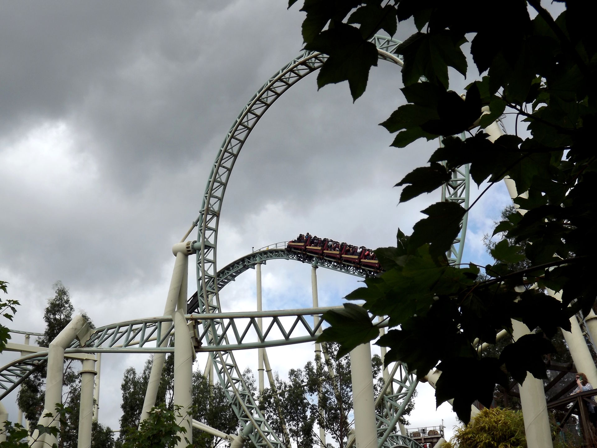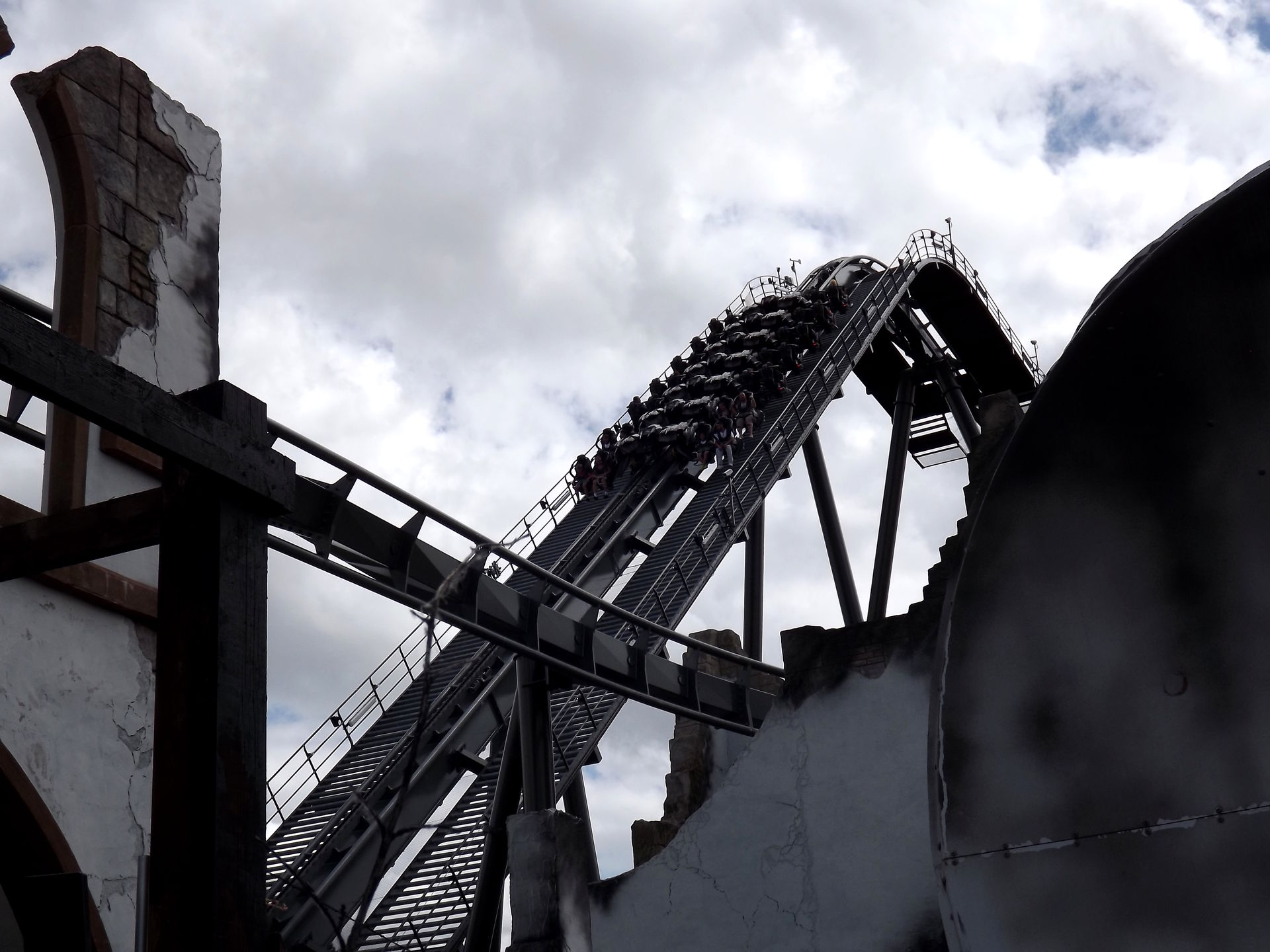 Bei Colossus hatten wir leider nicht so viel Glück, hier war die Wartezeiten Anzeige kaputt. 30 Minuten standen dran und 90 waren es dann am Ende, wurde aber erst durchgesagt, als wir schon etwas länger anstanden. Aber es hilft ja einfach nichts, wir mussten wegen Steve und Marie ja sowieso alle Bahnen durchkriegen, auch wenn wir uns 1,5 Stunden für eine Bahn eigentlich überhaupt nicht leisten konnten. Aber so nebenbei: Ich mag Colossus.