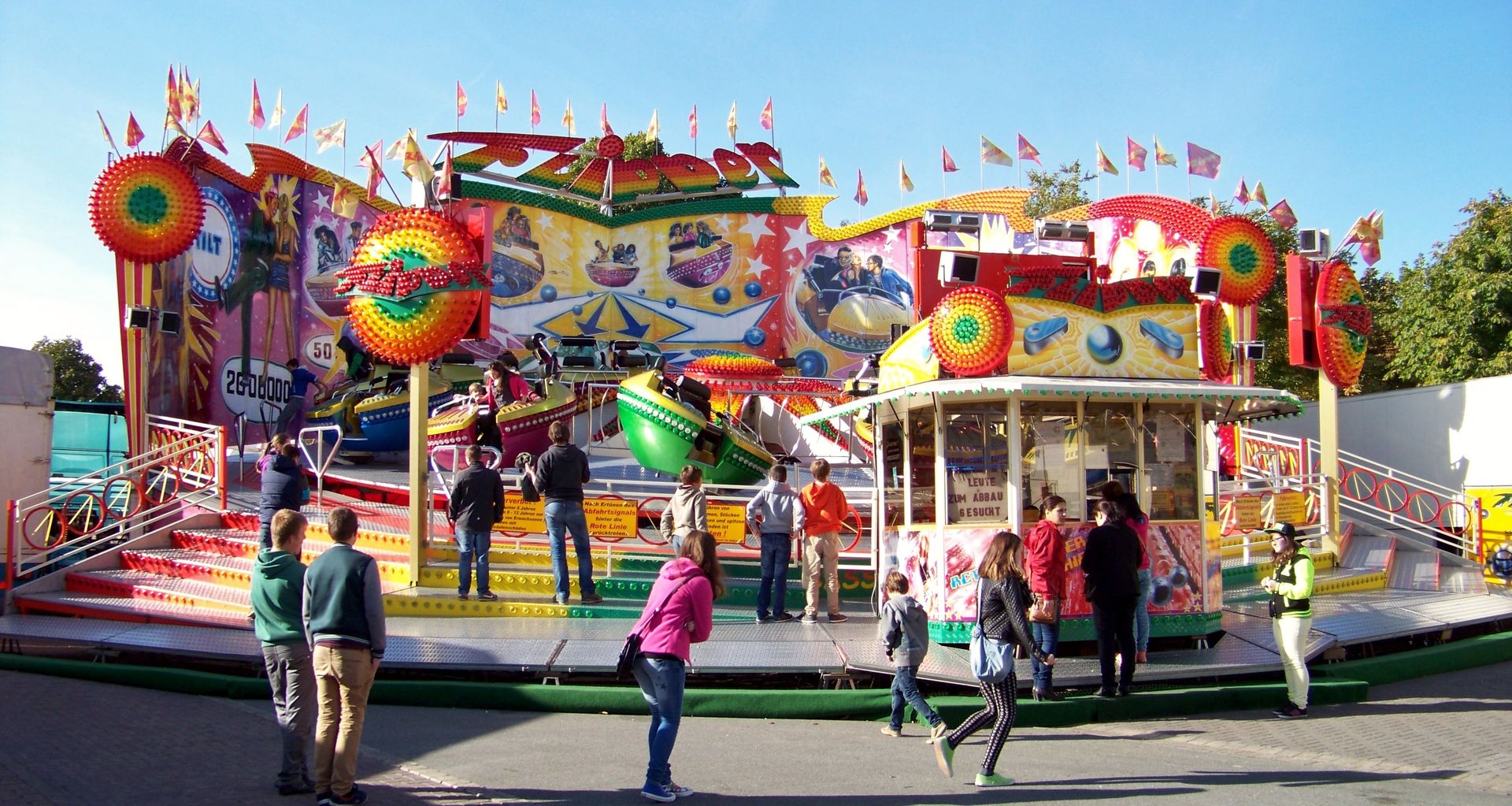 Auch der aktuelle Jahrgang überzeugt mit einem an Fahrgeschäften nur so strotzenden Festplatz (fast schon wieder ein wenig zu viel des Guten), der einen extremen Kontrast dazu bildet, wie ich den Platz kennen gelernt habe. Denn zu den oben schon genannten Stammgeschäften gesellen sich in diesem Jahr auf der hinteren Festmeile auf engstem Raum das Caesar's Wheel von Landwermann-Henschel, der Flipper von Splitt (der aussieht als hätte er die Werkshallen von Huss erst gestern verlassen), Kollmanns