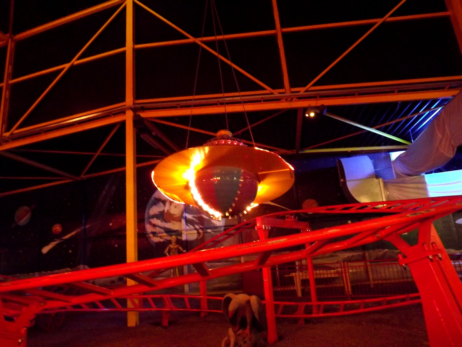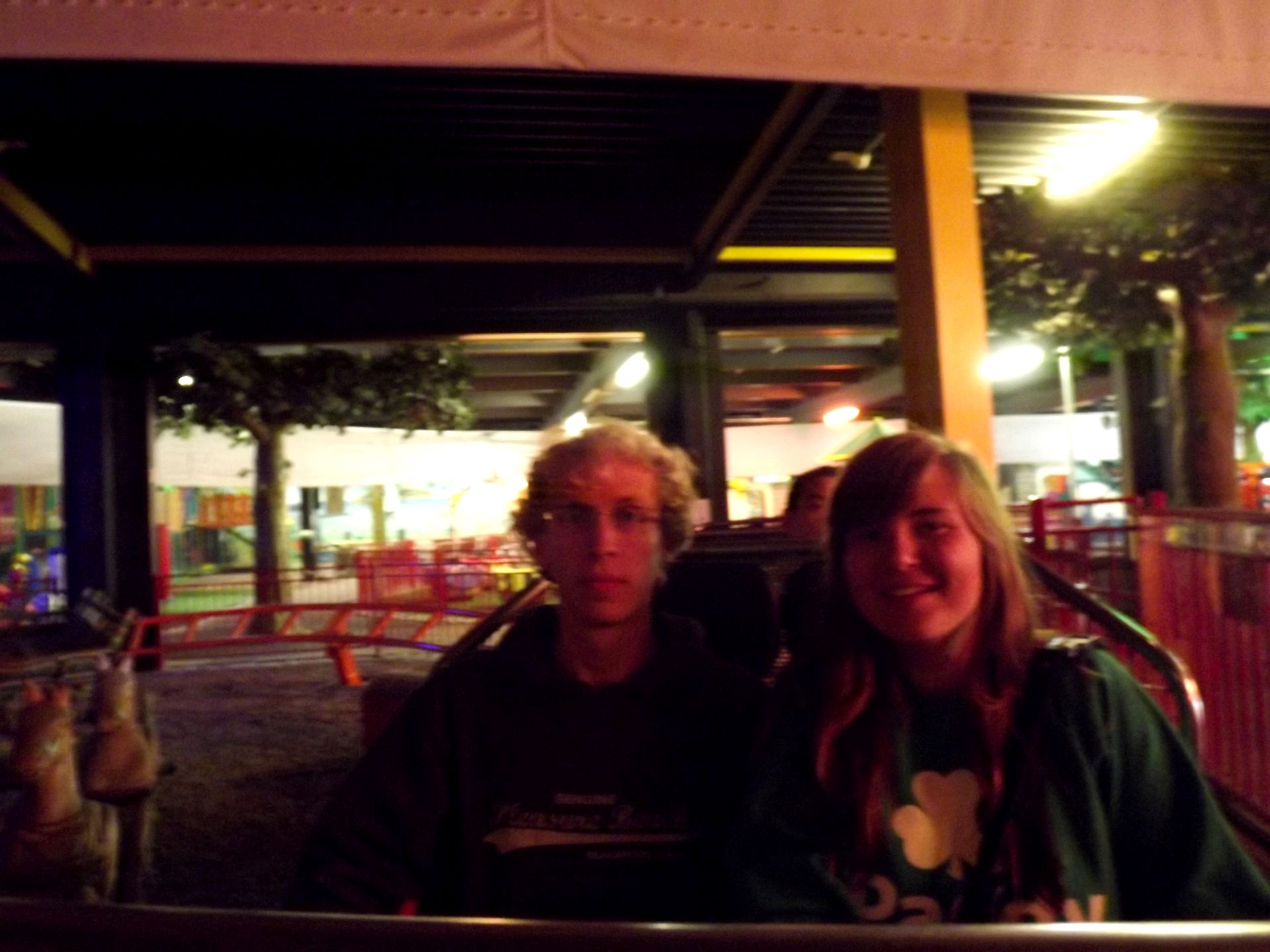 Der Coaster hatte einige Startschwierigkeiten, denn der Operator bekam ihn nicht in gang. Wir saßen also 10 Minuten im Zug, befürchteten schon das schlimmste, als ein alter Opa ankam und offensichtlich Ahnung hatte. Er trat gegen den Zug und er fuhr.