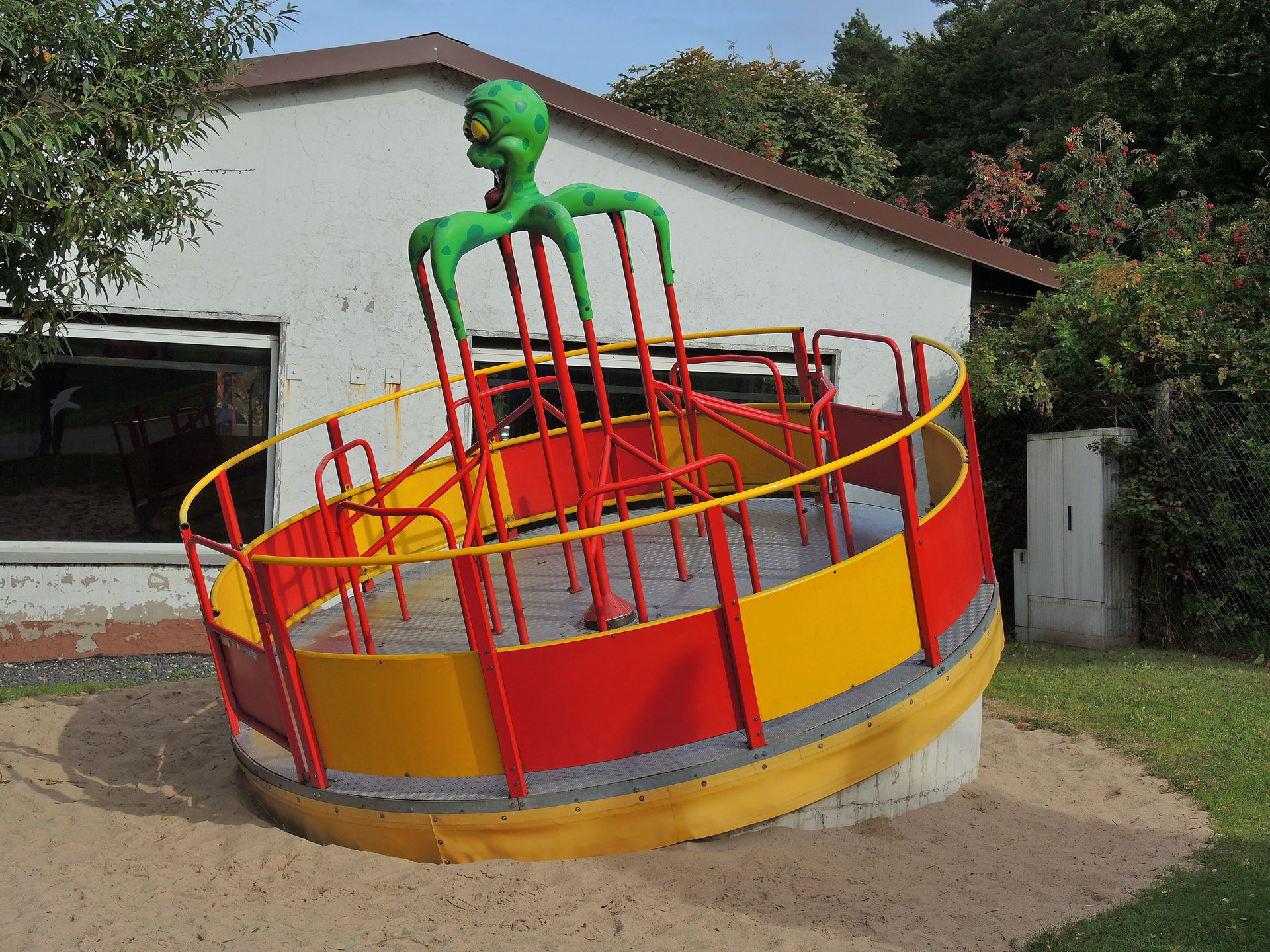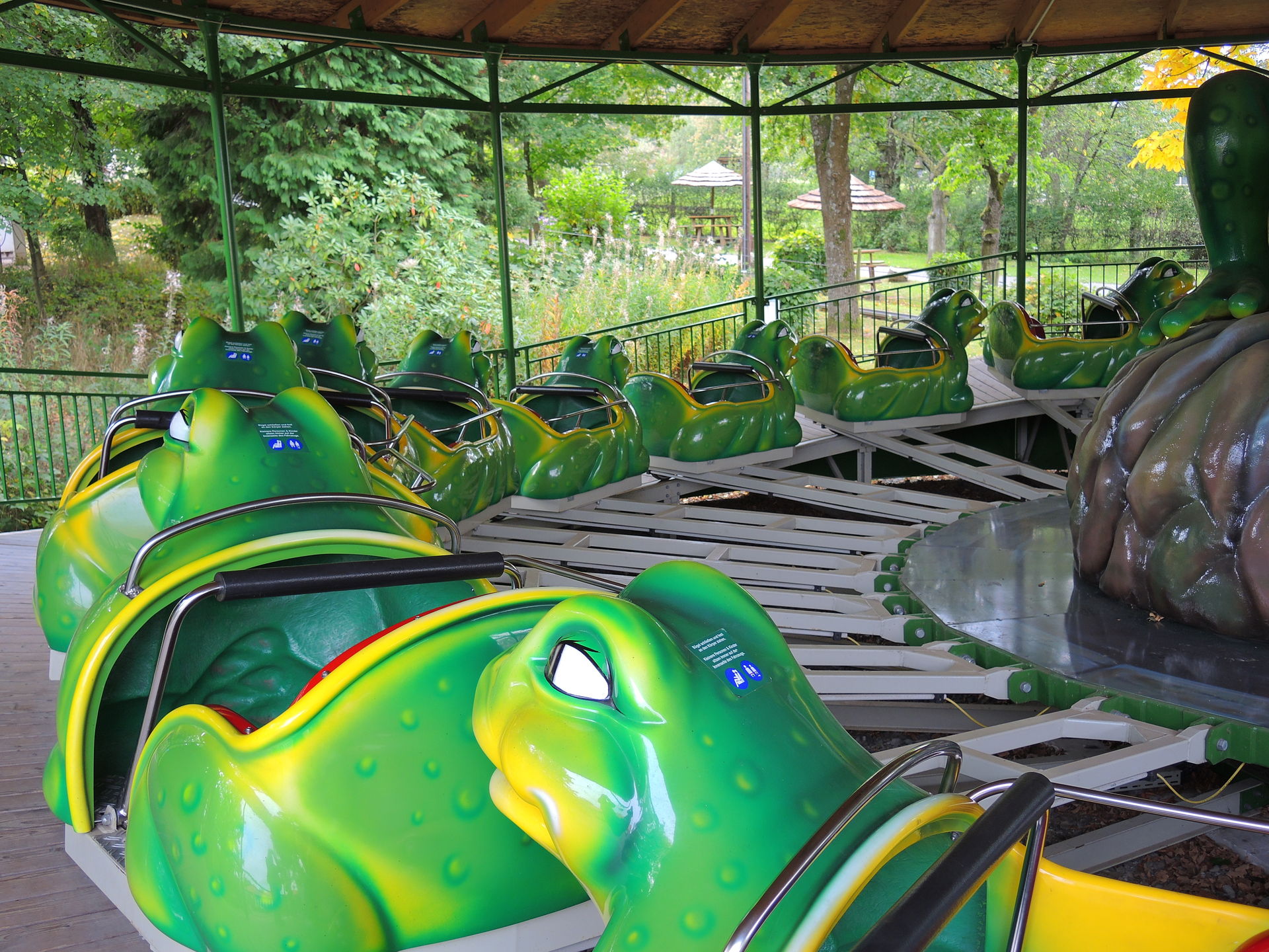 Der Park bietet zwei klassische Rundfahrgeschäfte. Zum einen der gethemte Wellenflieger im Fliegenpilz-Design und der Berg- und Talbahn Froschkönig welcher ziemlich neu zusein scheint.