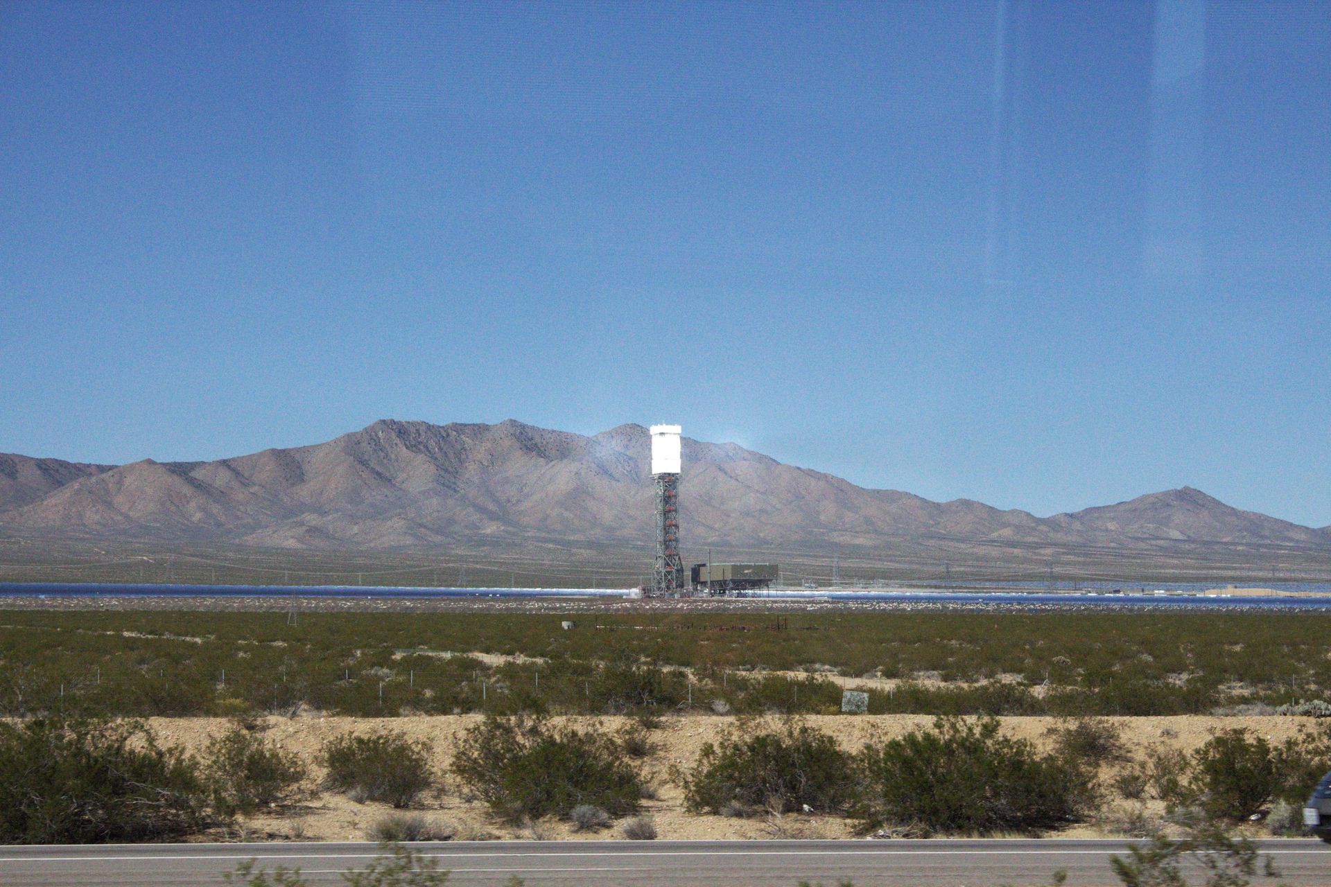 Hierbei handelt es sich um Ivanpah, dem derzeit größten Sonnenwärmekraftwerk der Welt - wenige Tage vor unserer Vorbeifahrt ans Netz gegangen. Siehe: heise.de Sonnenwaermekraftwerk-Ivanpah-Solargigant-geht-erstmals-ans-Netz-1978265.html