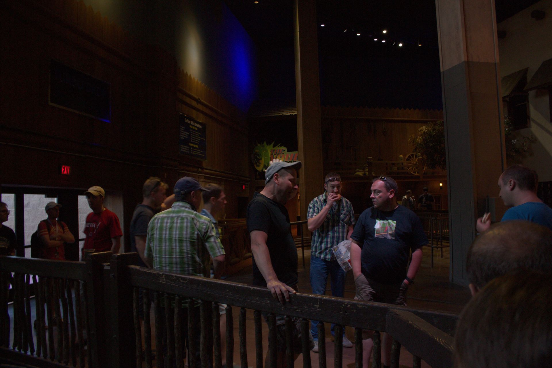 Das Witzigste kam dann, als wir reingingen und uns kurz mal versammelt hatten. Volker hielt eine Ansprache und meinte, dass er nicht wüsste ob die Leute bescheid wissen. Es könnte ja auch sein, dass niemand da ist, dass das Dingen nicht fährt oder sonstwas. Prompt stand jedoch schon ein Mitarbeiter hinter ihm und hat nach den Rollercoaster-Guys gefragt. Joa, so schnell kanns gehen.