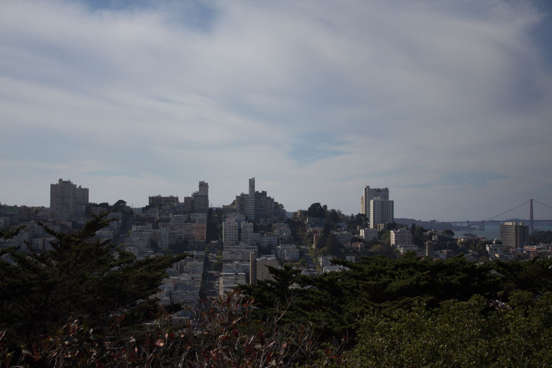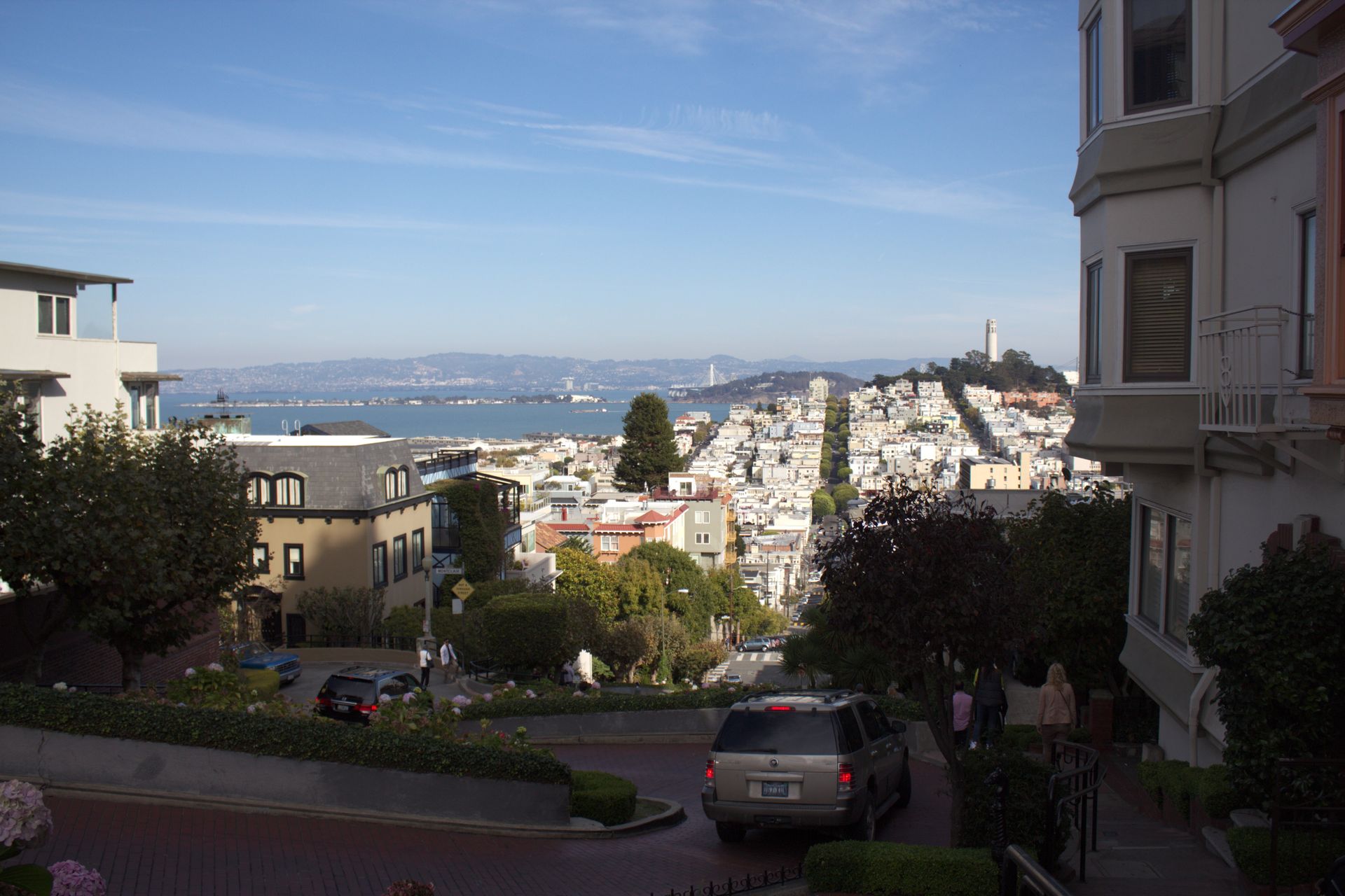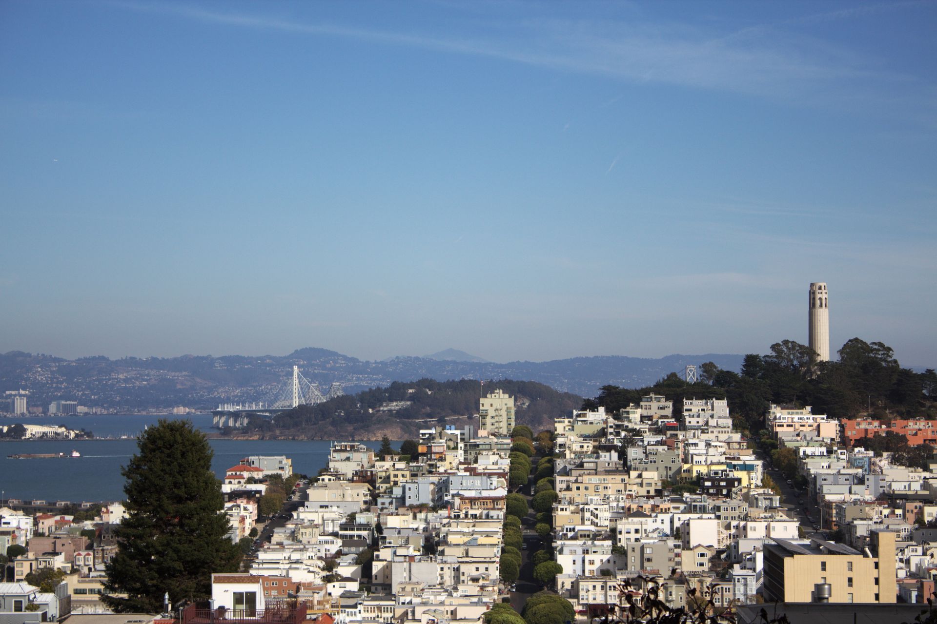 Blick von der Lombard Street richtung Coit Tower und Baybridge