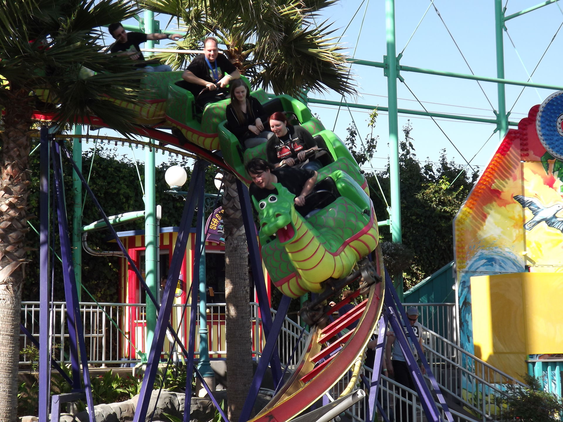 Am Ende vom Park steht noch ein Family Coaster namens Sea Serpent, der eigentlich ganz witzig ist. Zumindest sehen alle so aus, als hätten sie unglaublich viel Spaß!