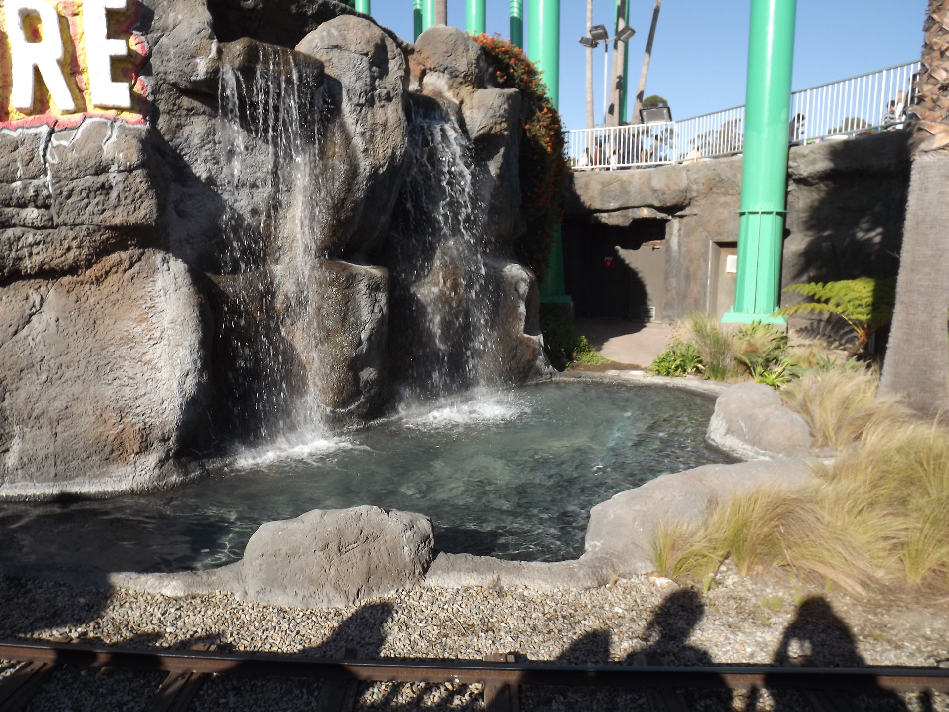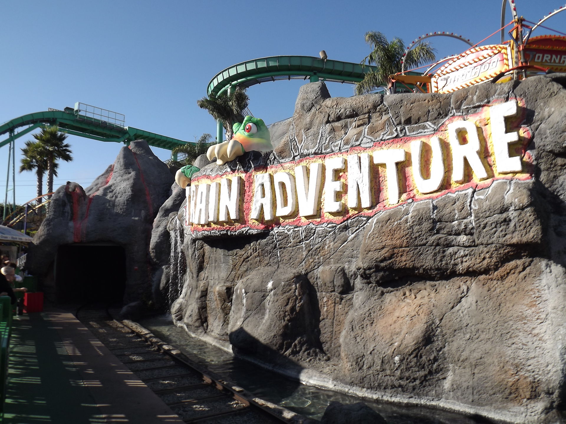Bevor wir allerdings mit diesem Prachtstück fahren konnten mussten wir erst einmal um den Park rumlaufen um zum Haupteingang zu gelangen, denn hier ist das Büro, dass uns die Wristbands und die Tickets für ein paar zusätzliche Attraktionen ausgedruckt hat. Außerdem sieht der Haupteingang auf Gruppenfotos ja auch viel besser aus.