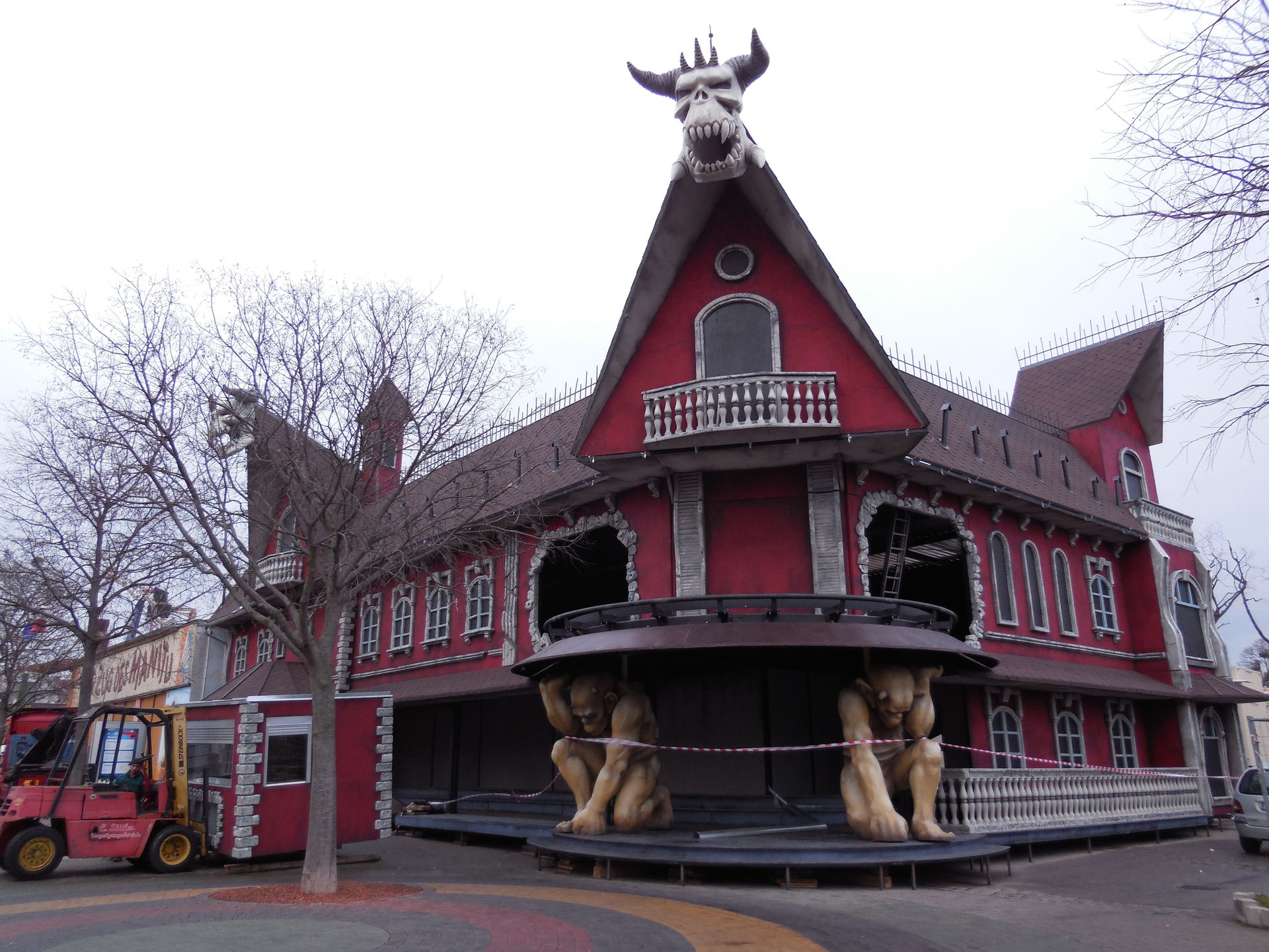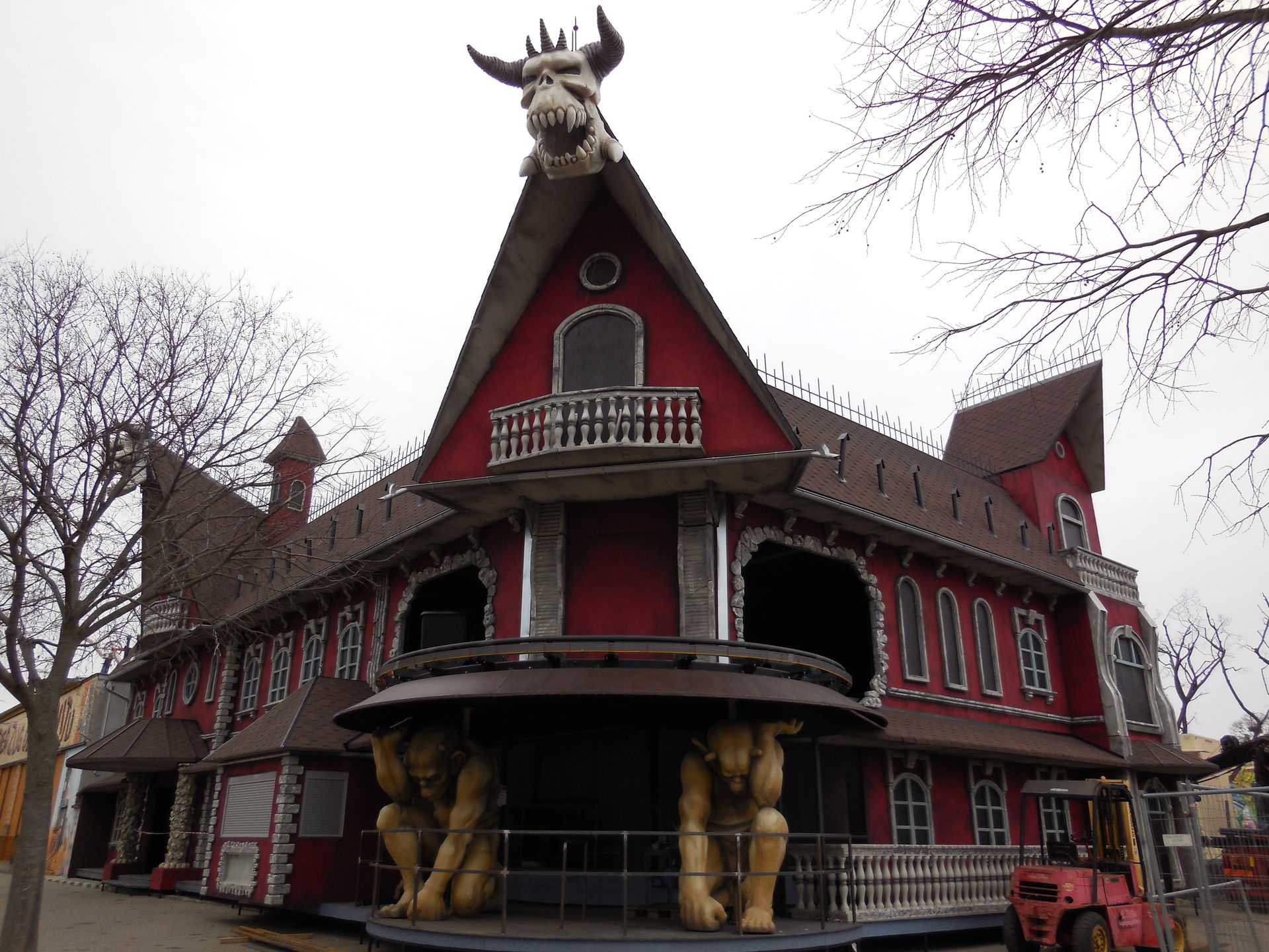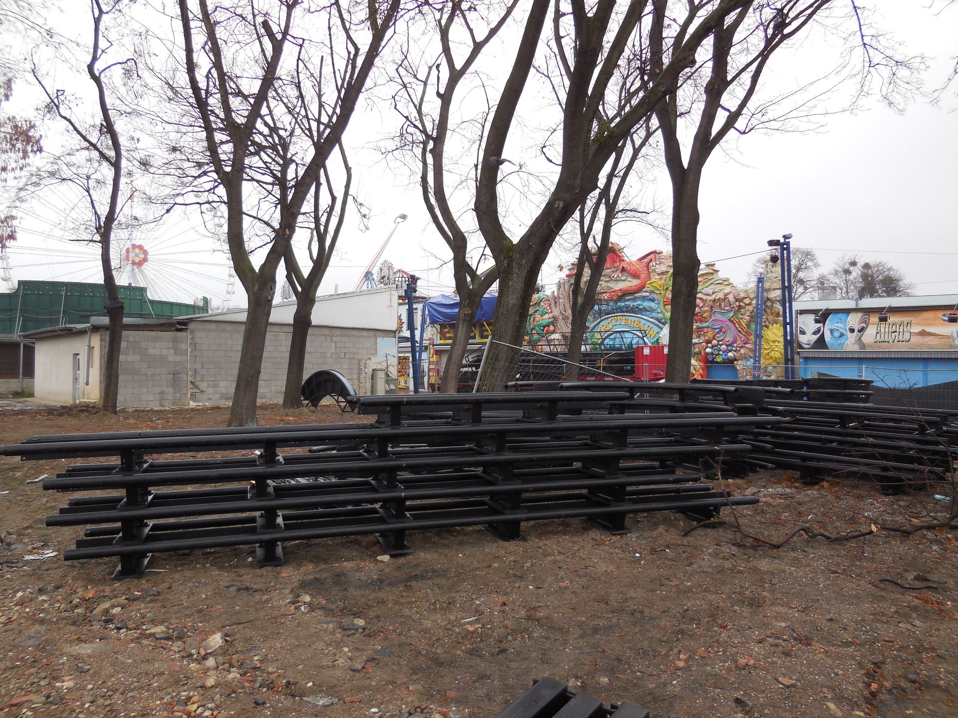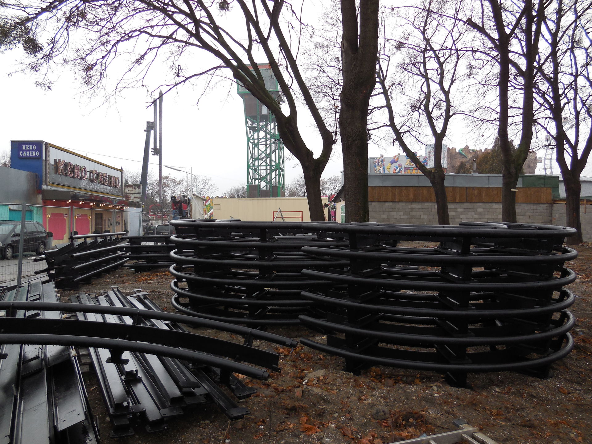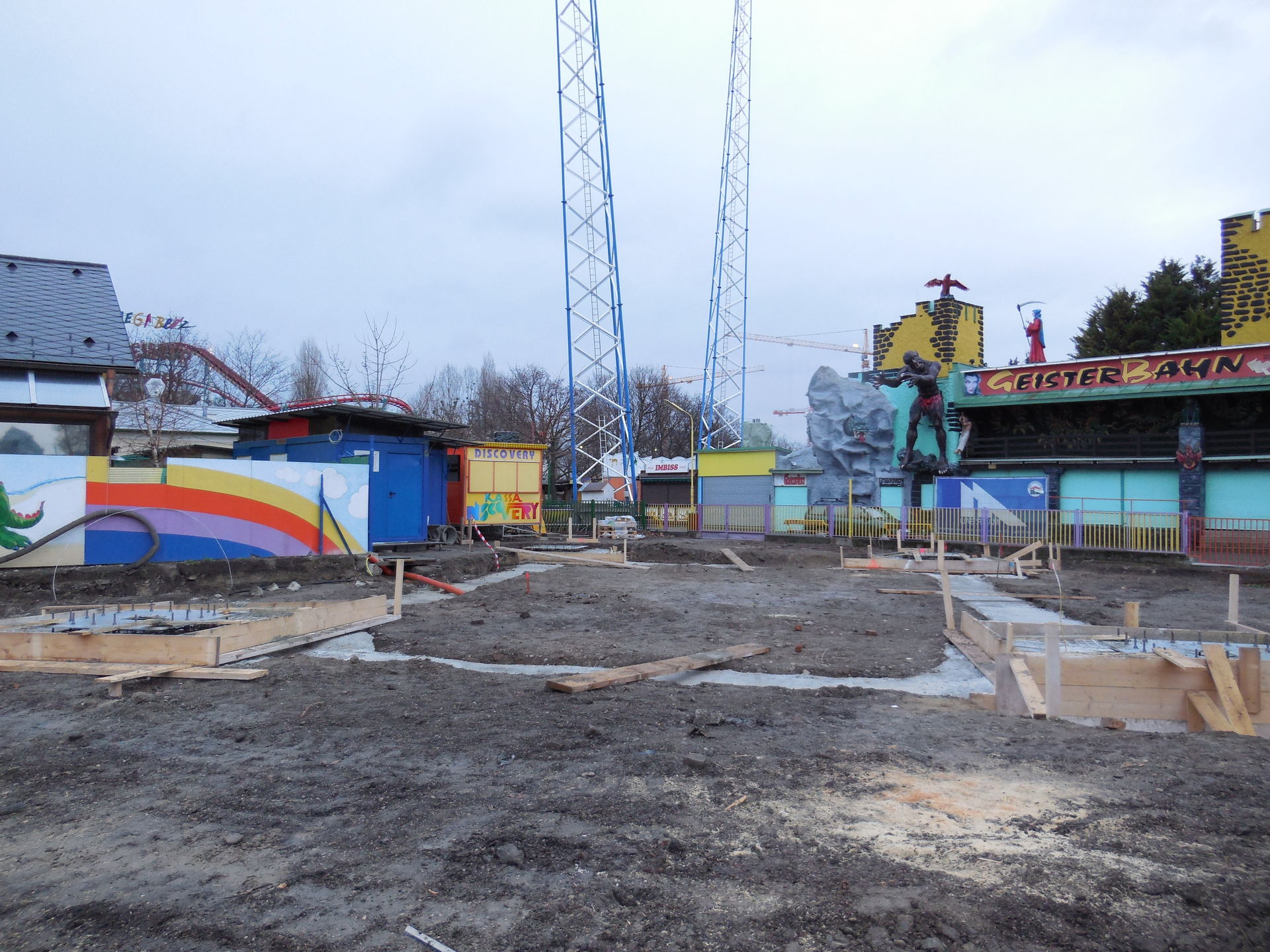 Der Klettergarten ist schon weg und da soll die verspätete Geisterbahn aufgebaut werden. In einer TV Dokumentation, ist von Achterbahnschienen geredet worden. Mal sehen was es genau wird.
