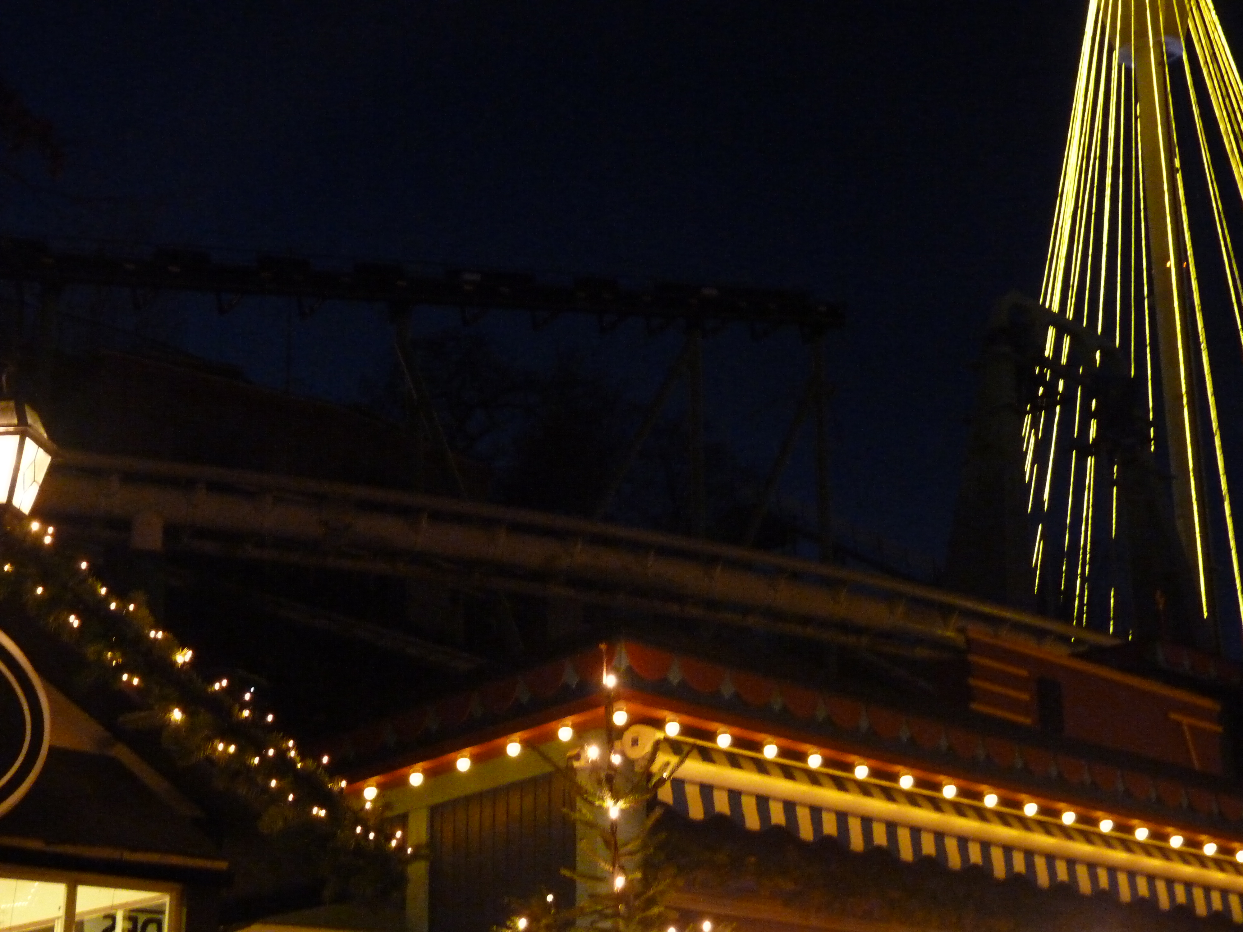Die großen Achterbahnen des Parks sind komplett aus der Dekoration ausgeschlossen. Im Dunkeln fallen die Bahnen eigentlich gar nicht auf. An Atmosphear wurden Lichterketten, ähnlich wie am Aussichtsturm im EP, montiert.