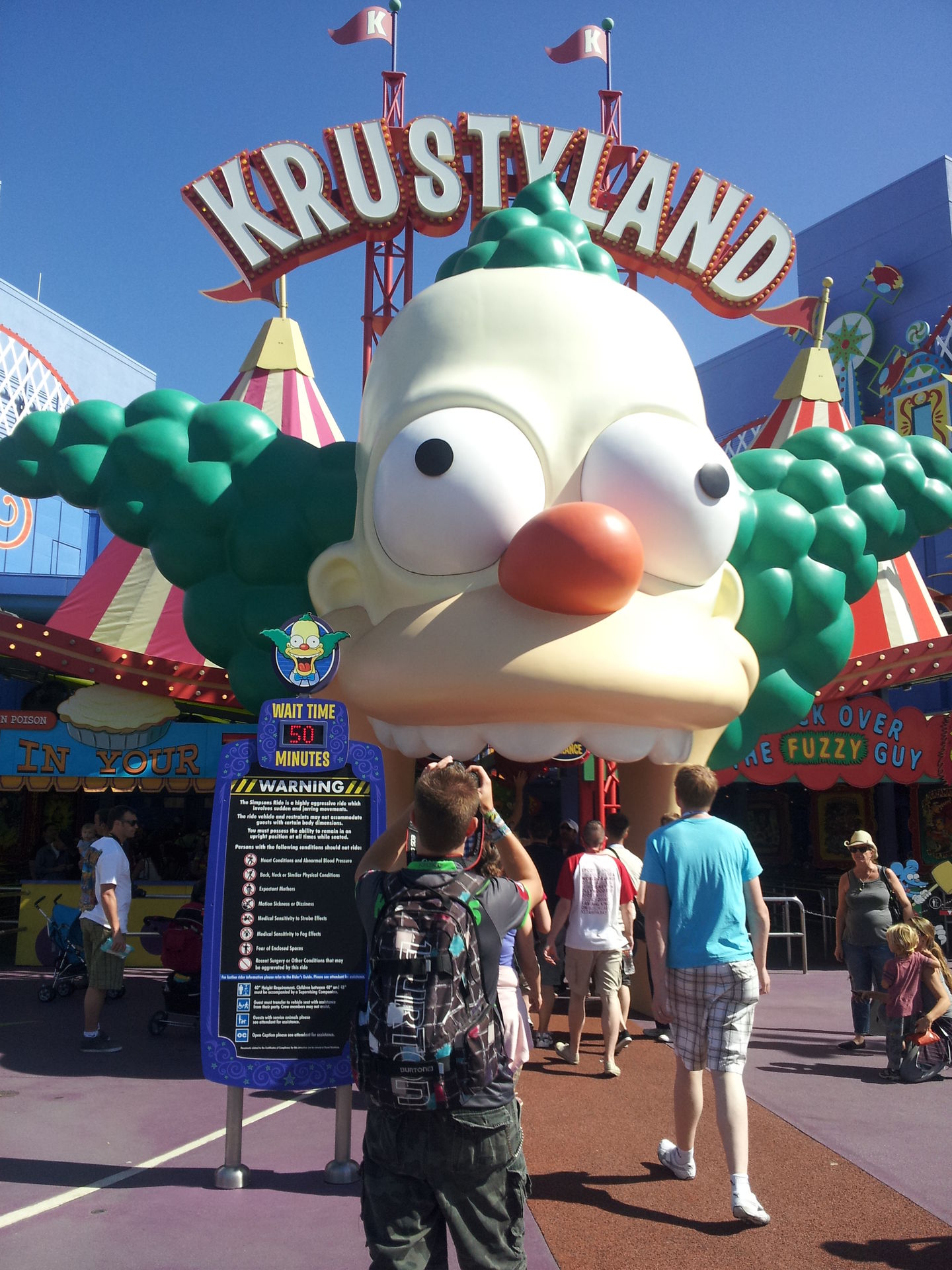 Unser nächstes Ziel war das Krustyland, wo wir mit Abstand die längste Wartezeit des Tages erwischten.