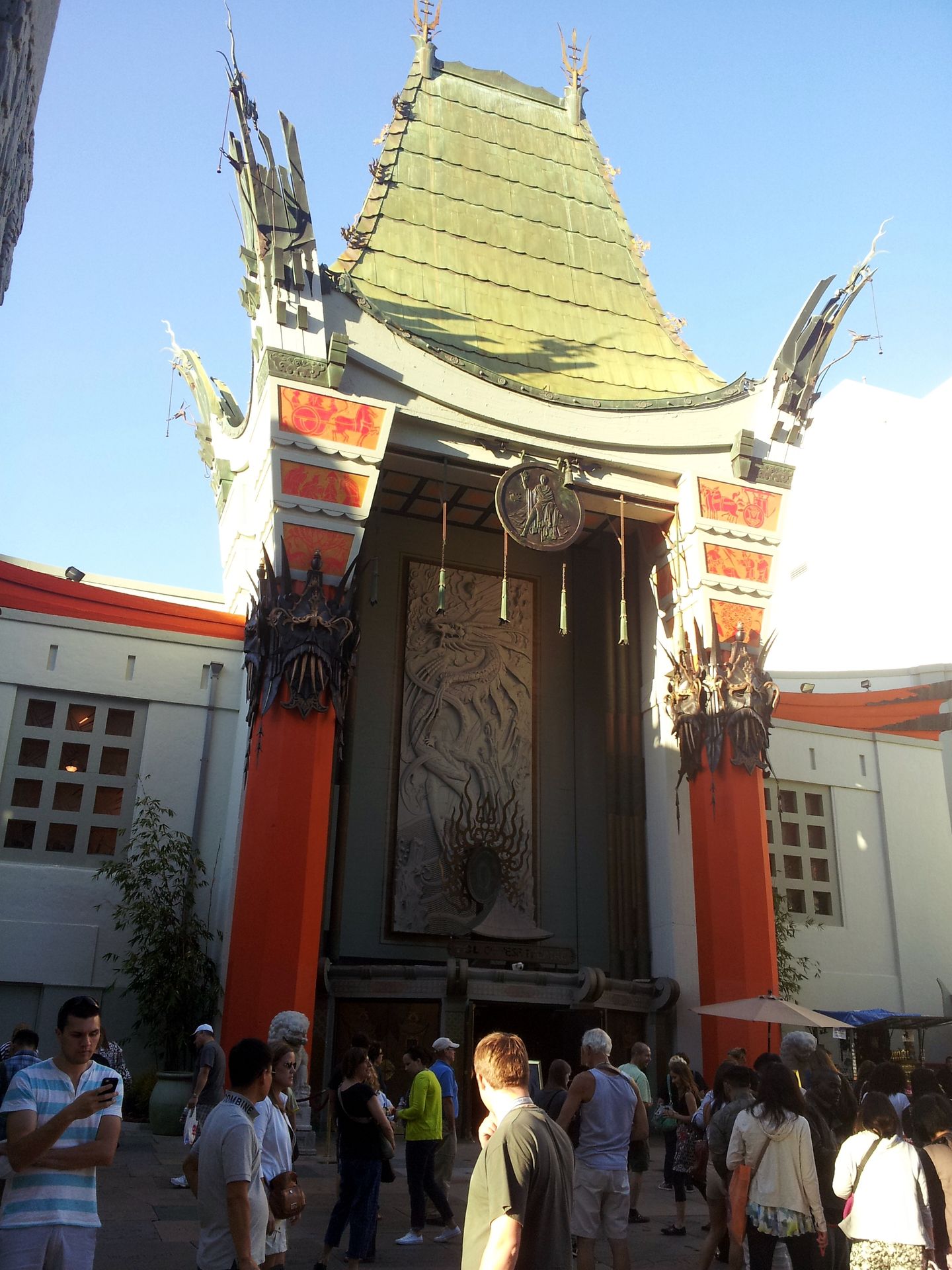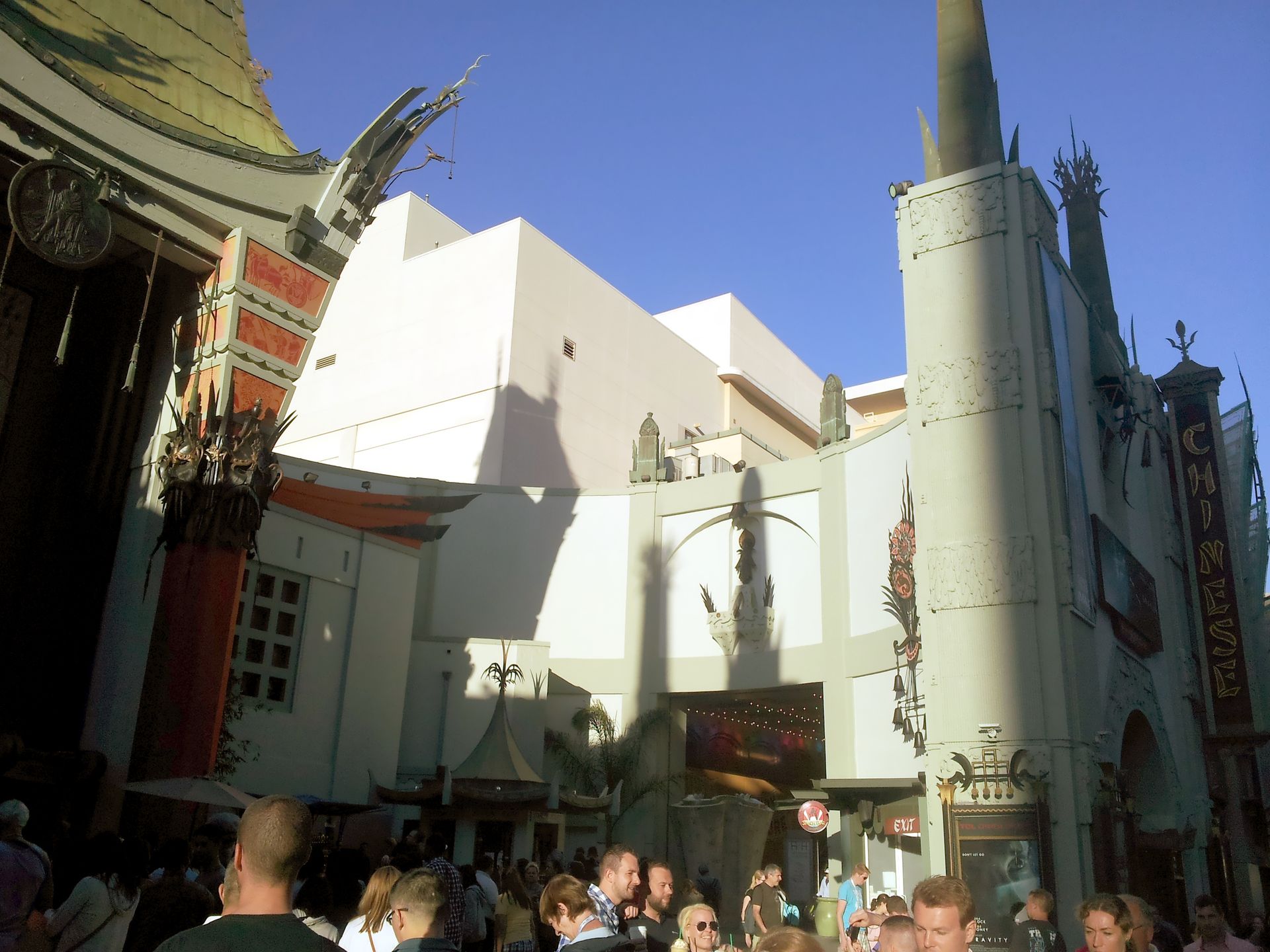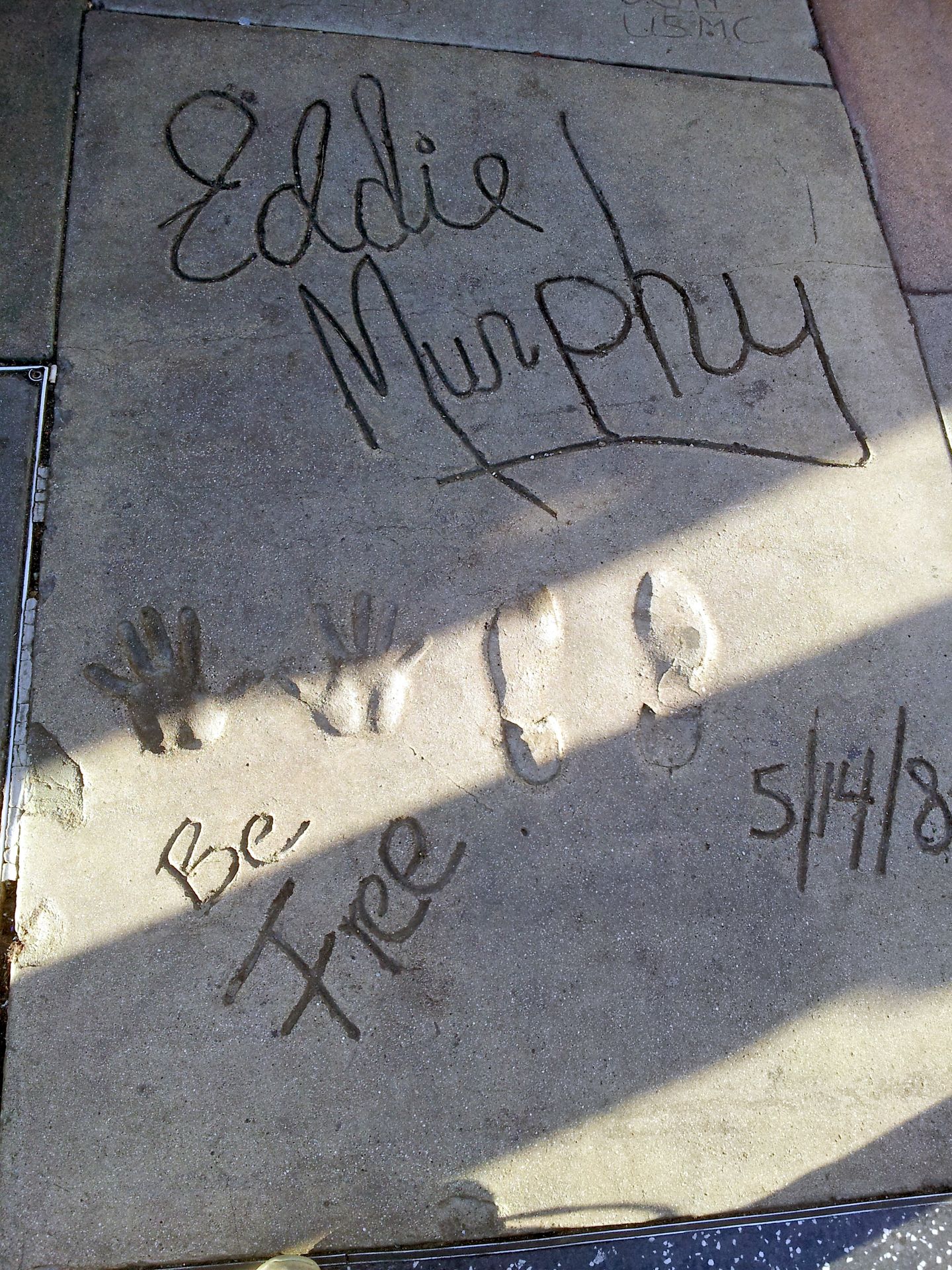 Die Sterne selbst fand ich jetzt nicht so interessant. Da die Namen mal sorum und mal sorum sind, ist es ziemlich schwierig, so im Vorbeigehen zu lesen, "wer" da so liegt. Zumal man ja auch noch aufpassen muss, dass man nicht jemand anderes über den Haufen rennt. Unser Bus hielt aber nicht weit vom Chinese Theatre. Dieses selbst ist schon imposant, die Betonplatten davor fand ich aber um einiges Interessanter, denn dort kann man wirklich in die Fußstapfen der Hollywoodstars treten. Und wem das nicht reicht, der kann auch noch vergleichen, ob auch seine Hand in den entsprechenden Handabdruck passt.
