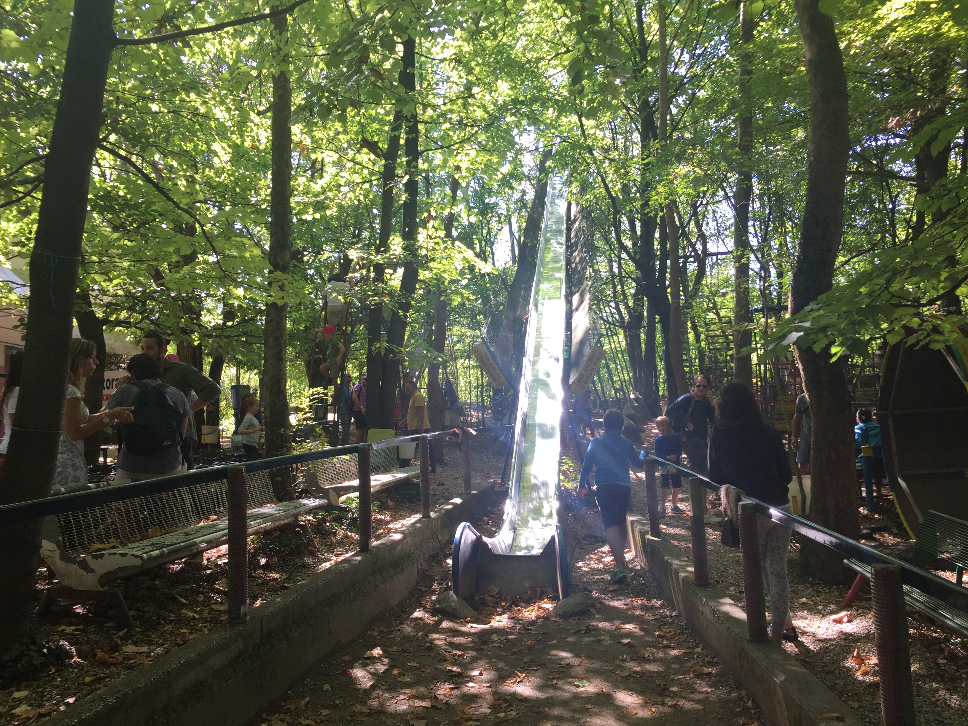 50km nördlich von Venedig gibt es ein Restaurant, dessen Besitzer wohl gerne bastelt. Unter anderem hat der eine doppelspurige und eine einspurige Achterbahn in seinen Wald gebaut. Absolut geil! Ich will nach Italien, jetzt!