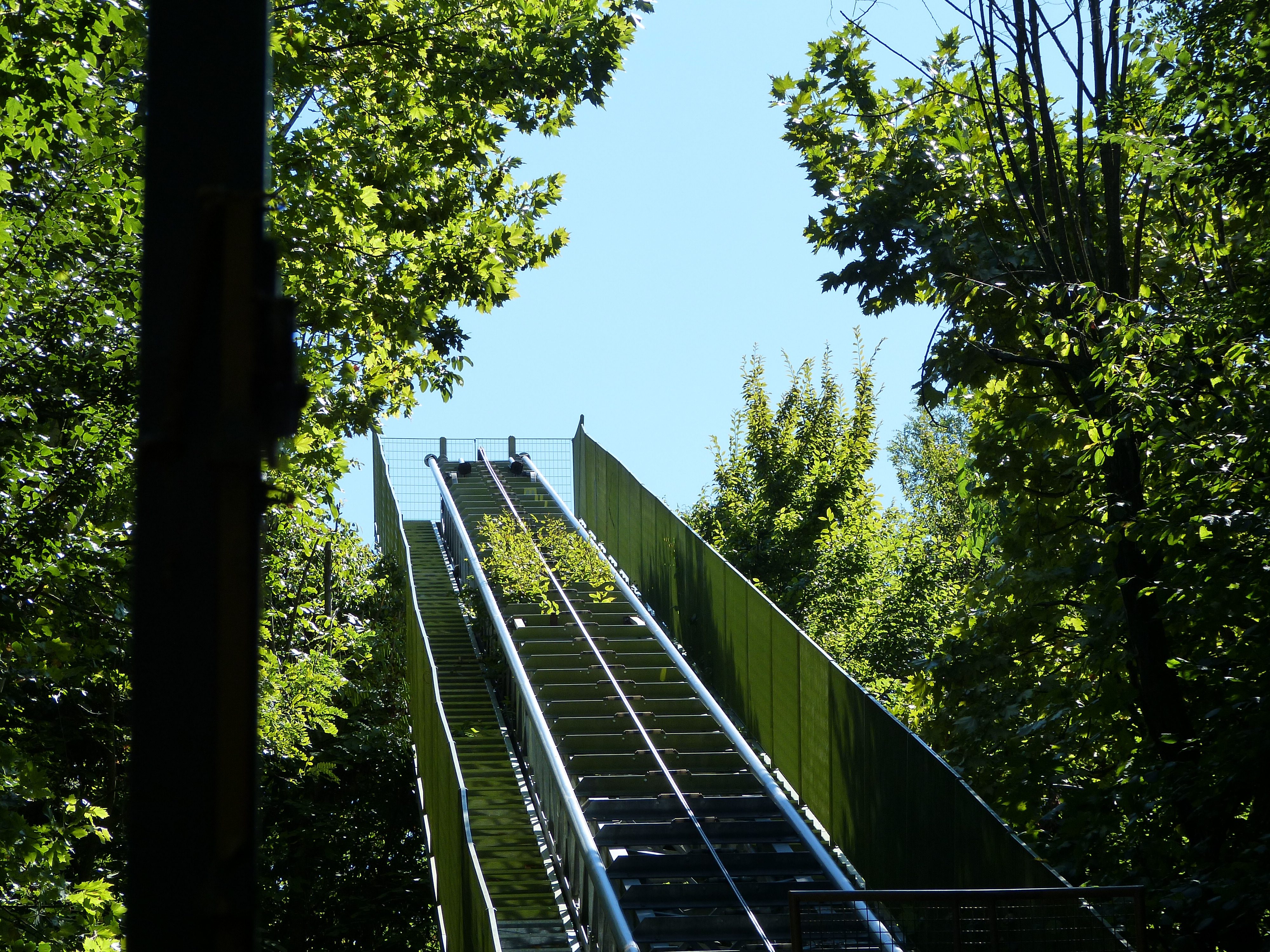 Überblick und doppelspurige Shuttel-Achterbahn, deren Wagen man wohl selber hochschiebt: