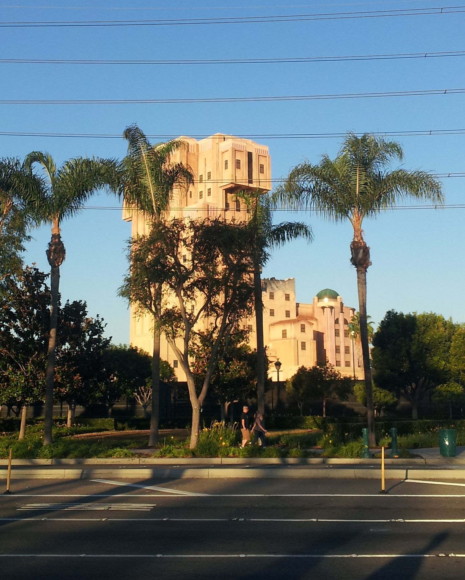 Von unserer Unterkunft hatten wir einen tollen Blick auf die (unverkleidete) Rückseite von Cars und auch den Tower of Terror passierten wir auf dem Weg zum Eingang (des anderen Parks) von der "falschen" Seite.