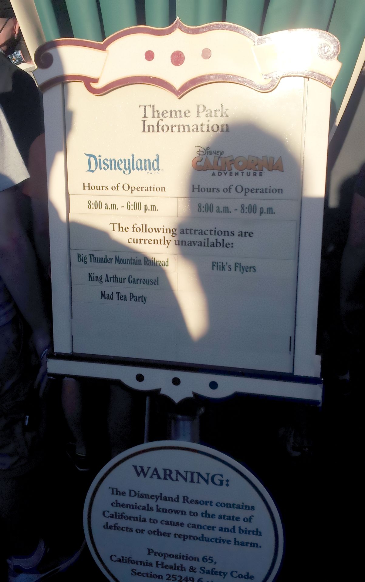 Vorher natürlich die obligatorische Taschenkontrolle und schon der Hinweis auf die geschlossenen Attraktionen. Zum Glück nix wirklich wichtiges dabei.
