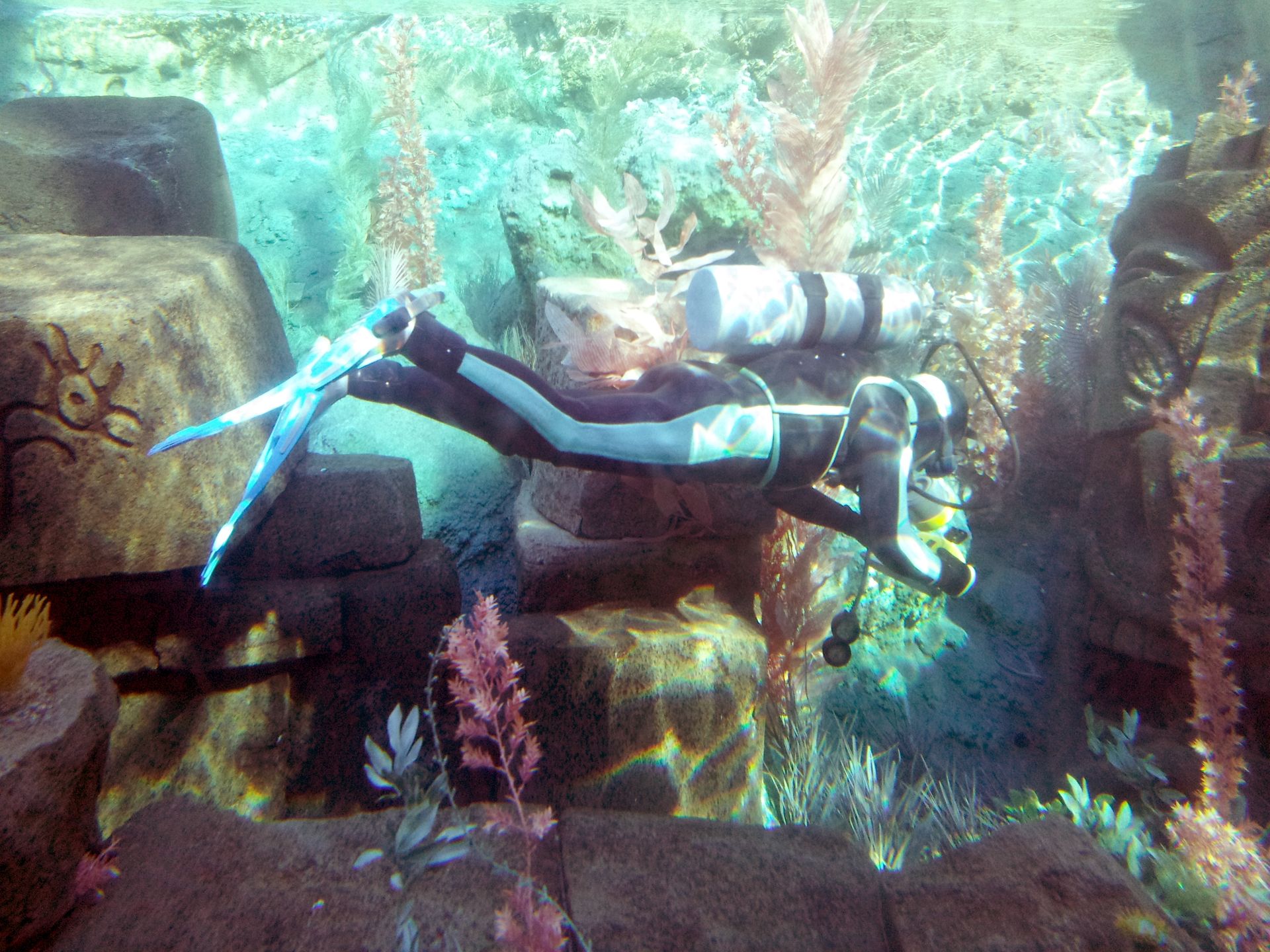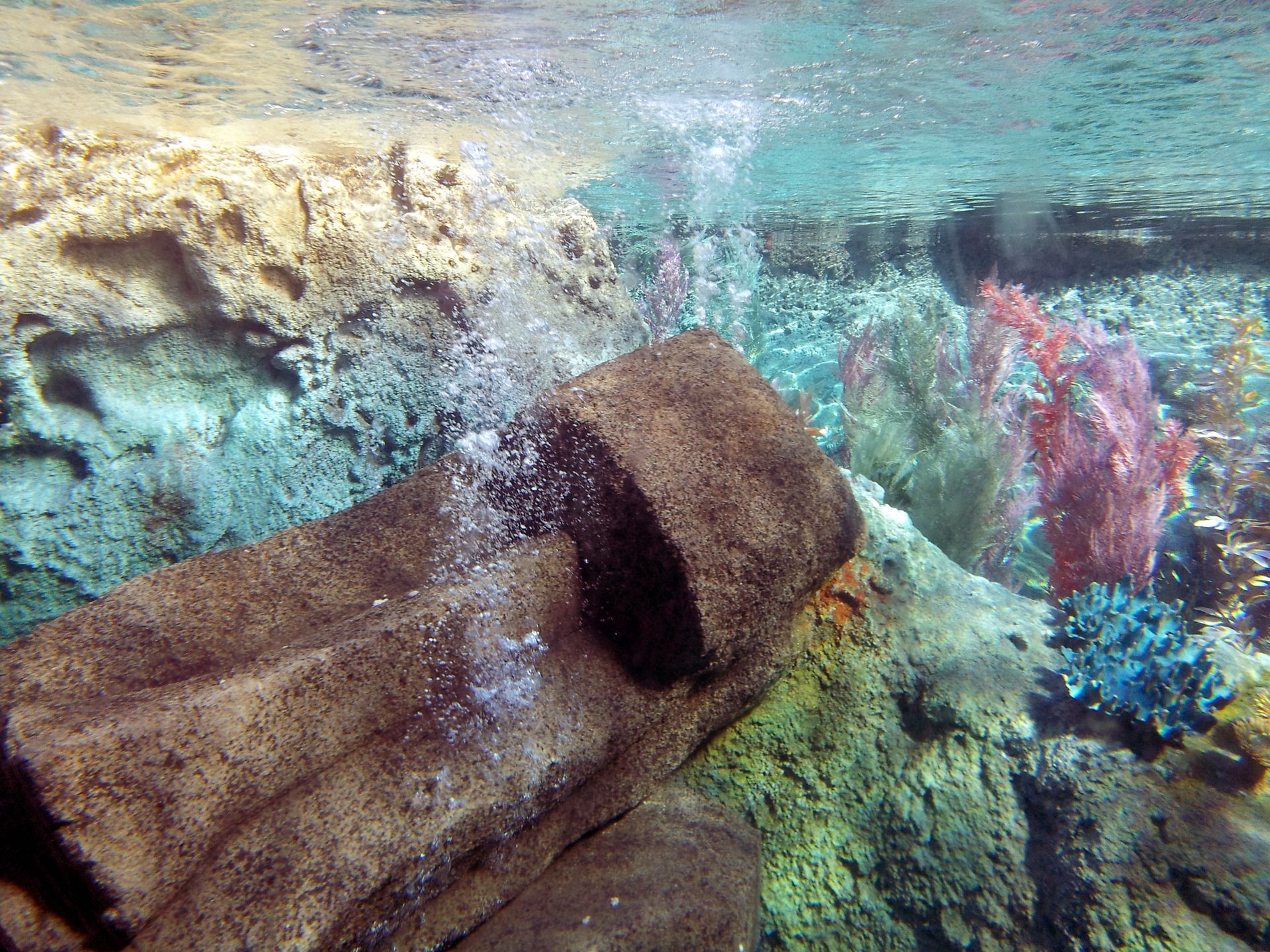 Tatsächlich handelt es sich natürlich nicht um richtige U-Boote. Im Grunde sind es "nur" normale Boote, bei denen man einfach unterhalb der Wasseroberfläche sitzt. Der Steuermann bleibt mit seiner Kanzel während der gesamten Fahrt über Wasser. Damit trotzdem der Eindruck erweckt wird, das Boot würde abtauchen, steigen nach verlassen der Station zahlreiche Luftblasen neben dem Boot auf. Dann geht es zunächst "unter freiem Himmel" vorbei an Pflanzen, Fischen und Steinen.