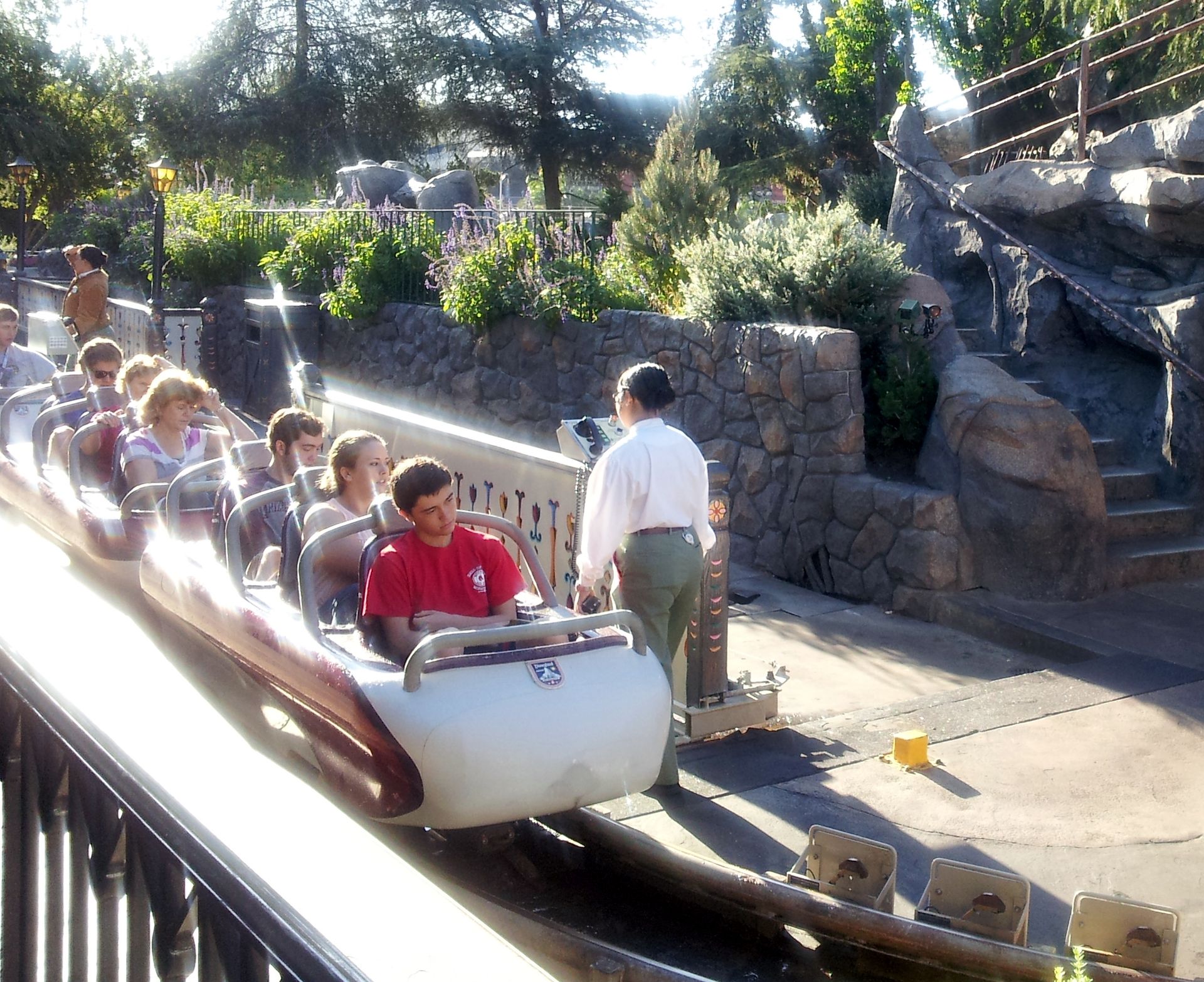 Nachdem also alle ihre Expedition in die Tiefen des Ozeans beendet hatten, ging es weiter zur ersten Achterbahn des Tages, die wiederum gemeinsam bezwungen werden sollte. Die Rede ist von der weltweit ersten Achterbahn mit Stahlrohr-Schienen, den Matterhorn Bobsleds.