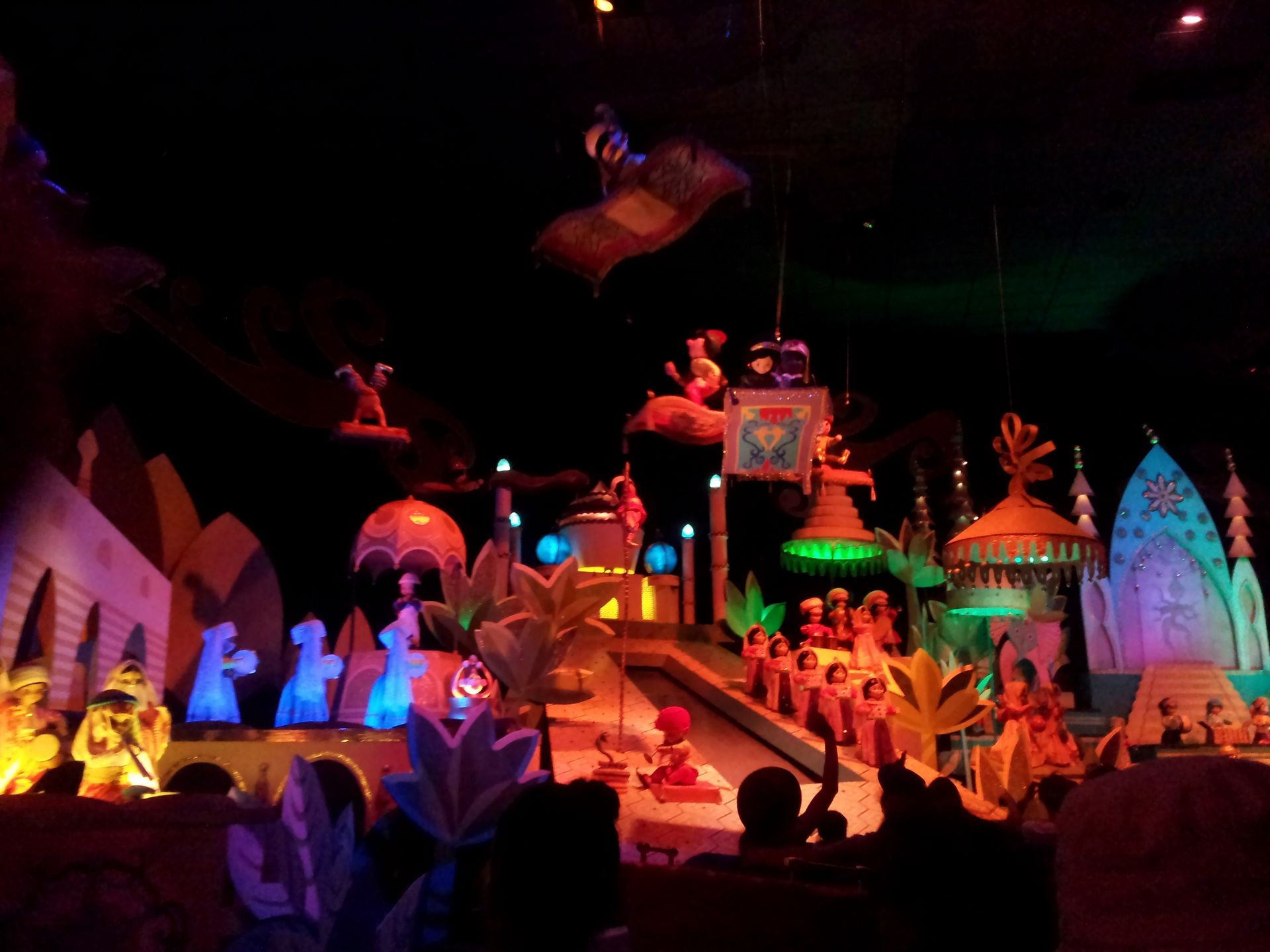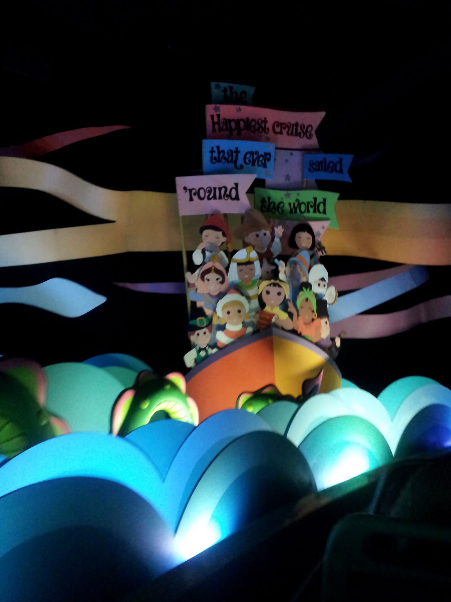 Während man durch verschiedene Länder der Welt fährt, läuft der Song "It's a small world" in Dauerschleife. Und zwar in den Sprachen der Länder.