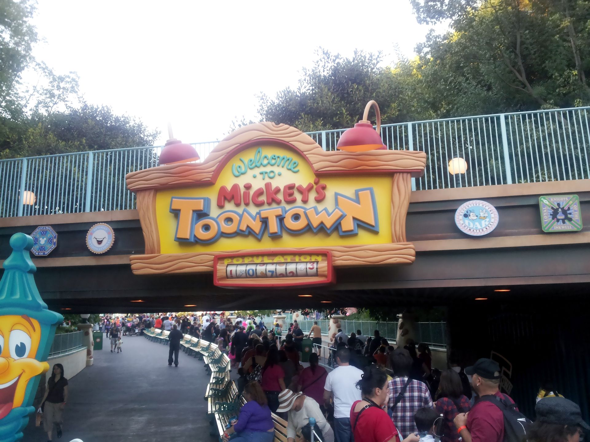 In gut etwa einer halben Stunde sollte der Park bereits schließen. Allerdings nur für die "normalen" Gäste. Ich gehörte zu denen, die sich ein Zusatzticket für "Mickey's not so scary Halloween Party" gegönnt hatten. Bei mir nicht wegen Halloween, sondern einfach um genügend Zeit für den Park zu haben. Marc und ich trennten uns daher vom Rest der Dirk'schen Truppe ab, die auf die Verlängerung verzichteten, und suchten einen der Stände, an denen wir unser Ticket in ein Wristband tauschen mussten. Nachdem das erledigt war, flitzte ich aber noch schnell zu Mickey's Toontown, wo ich noch eine Kinderachterbahn zu fahren hatte. Nicht dass die zu Halloween schließt.
