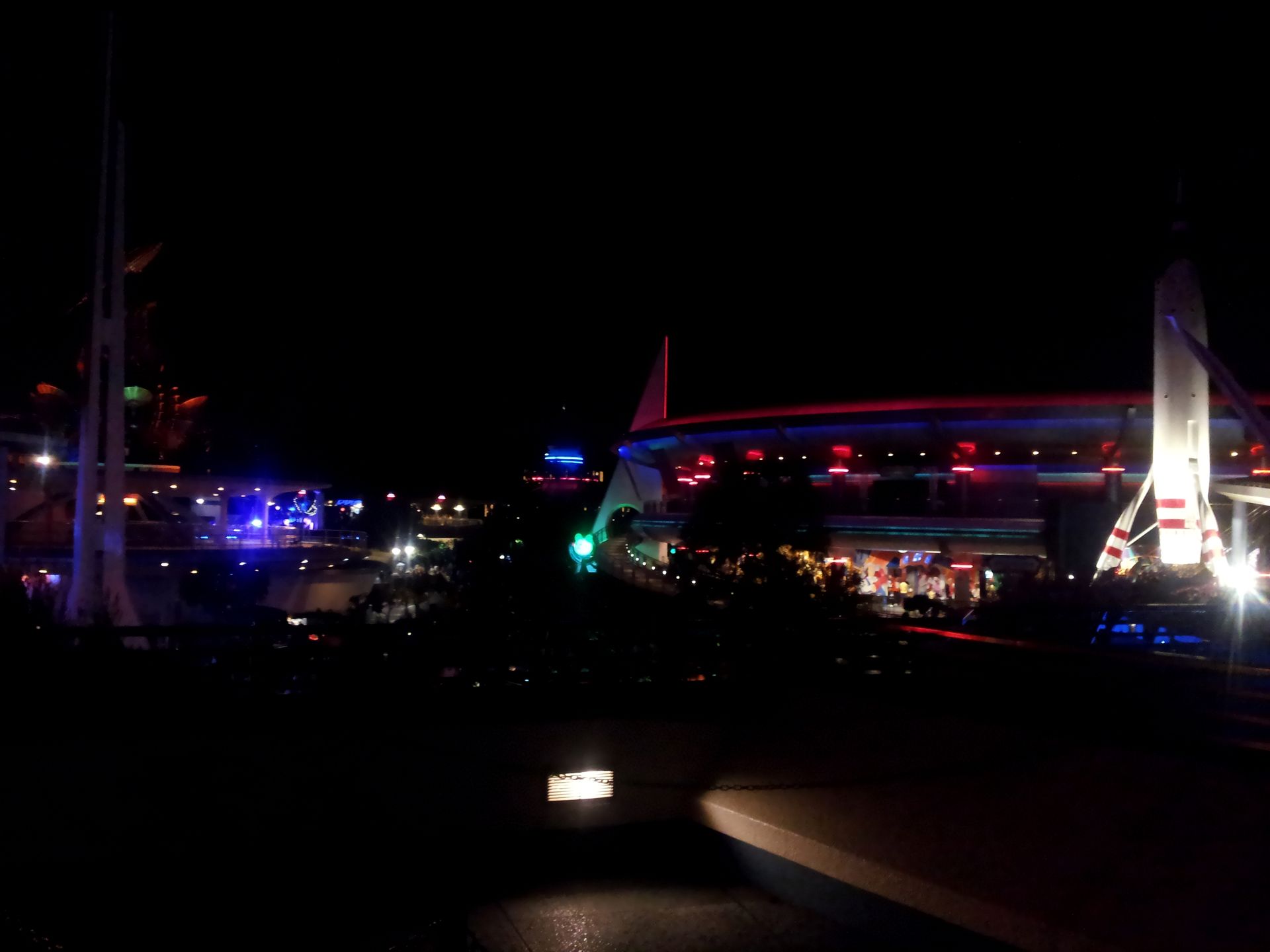 Tomorrowland bei Nacht. Auch die Star Tours sind wir nochmals gefahren.