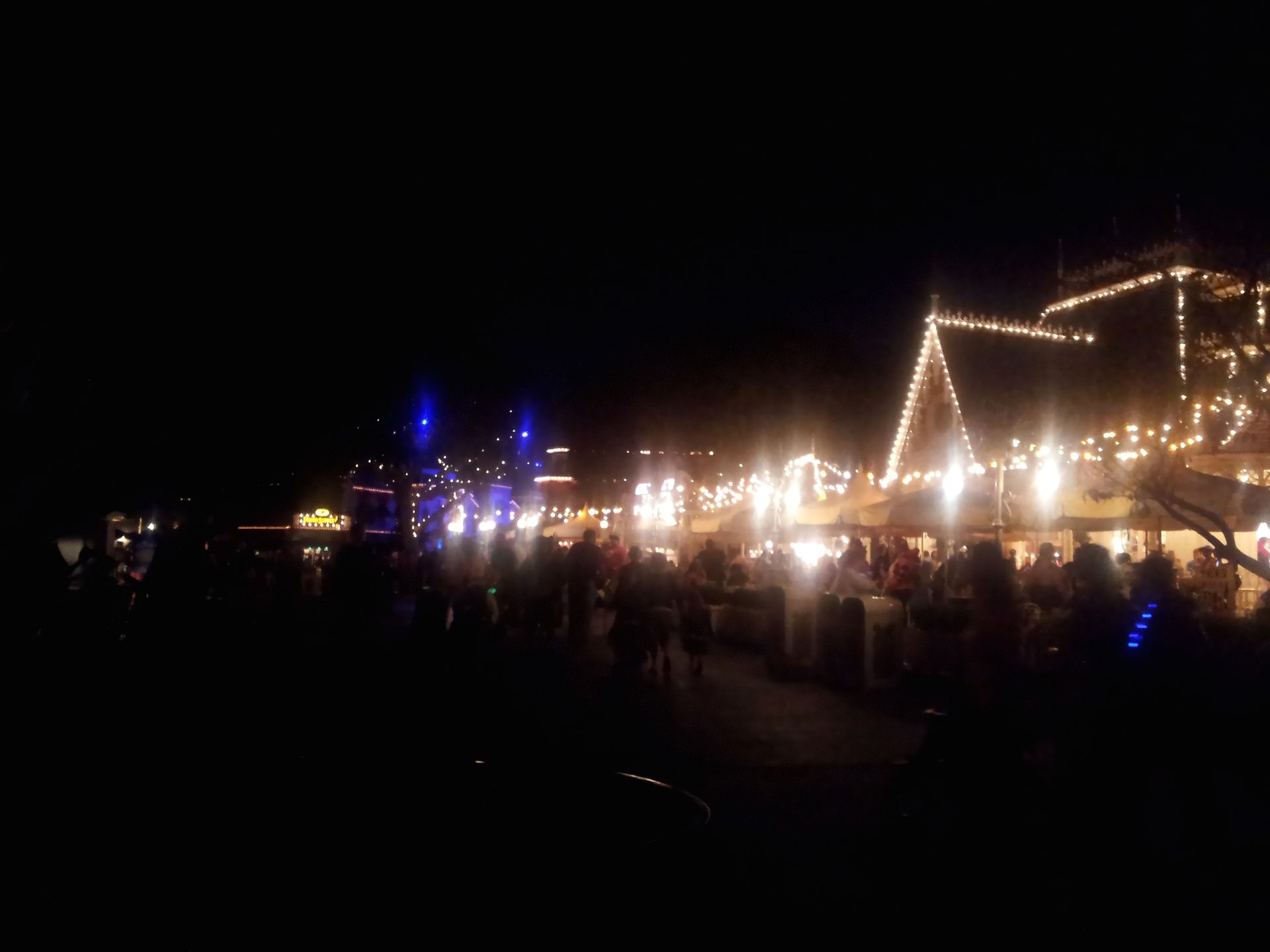 Und danach sollte auch schon bald das Feuerwerk starten. Wir suchten uns eine gute Stelle an den Rivers und hatten auch eine gute Sicht auf das Spektakel. Geballert wurde auf der Insel in den Rivers und am Schloss. Aus der Ferne konnten wir auch ordenliche Feuereffekte am Schloss erkennen.