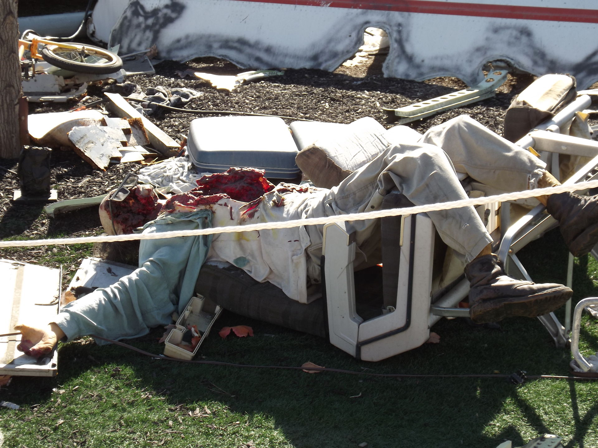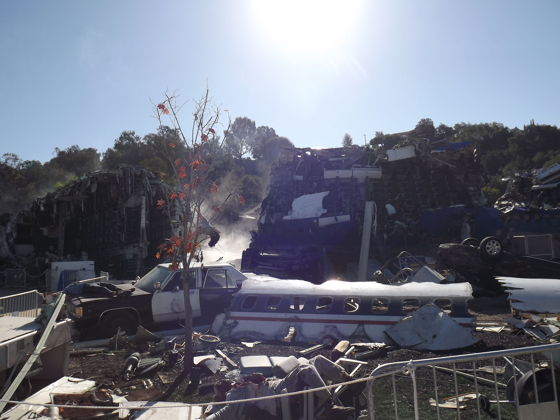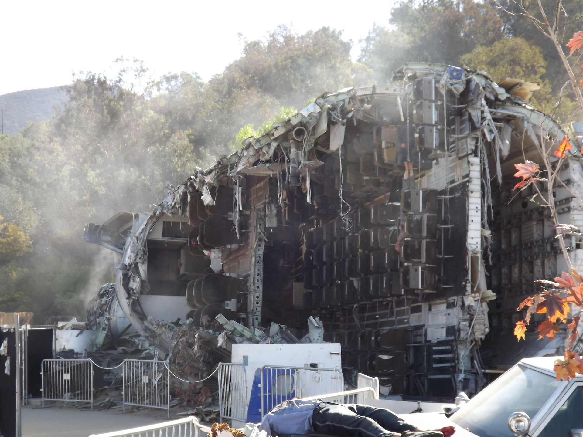 Das gecrashte Flugzeug aus Krieg der Welten liegt hier ebenfalls in der Gegend rum. Die zerfledderten Leichen gehören aber glaub ich nicht zum Normalbild, denn bei den Horror Nights wird die Szene als eines der beiden Walking Dead Mazes genutzt.