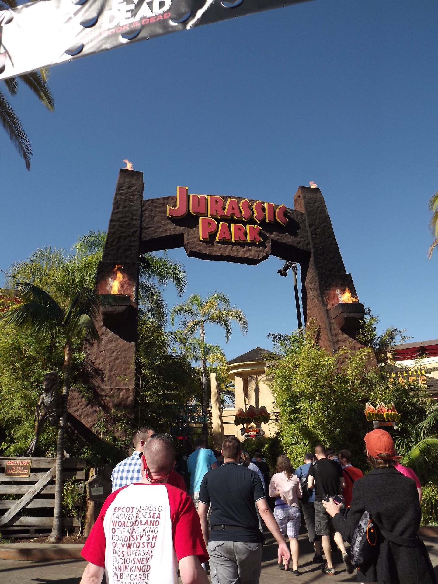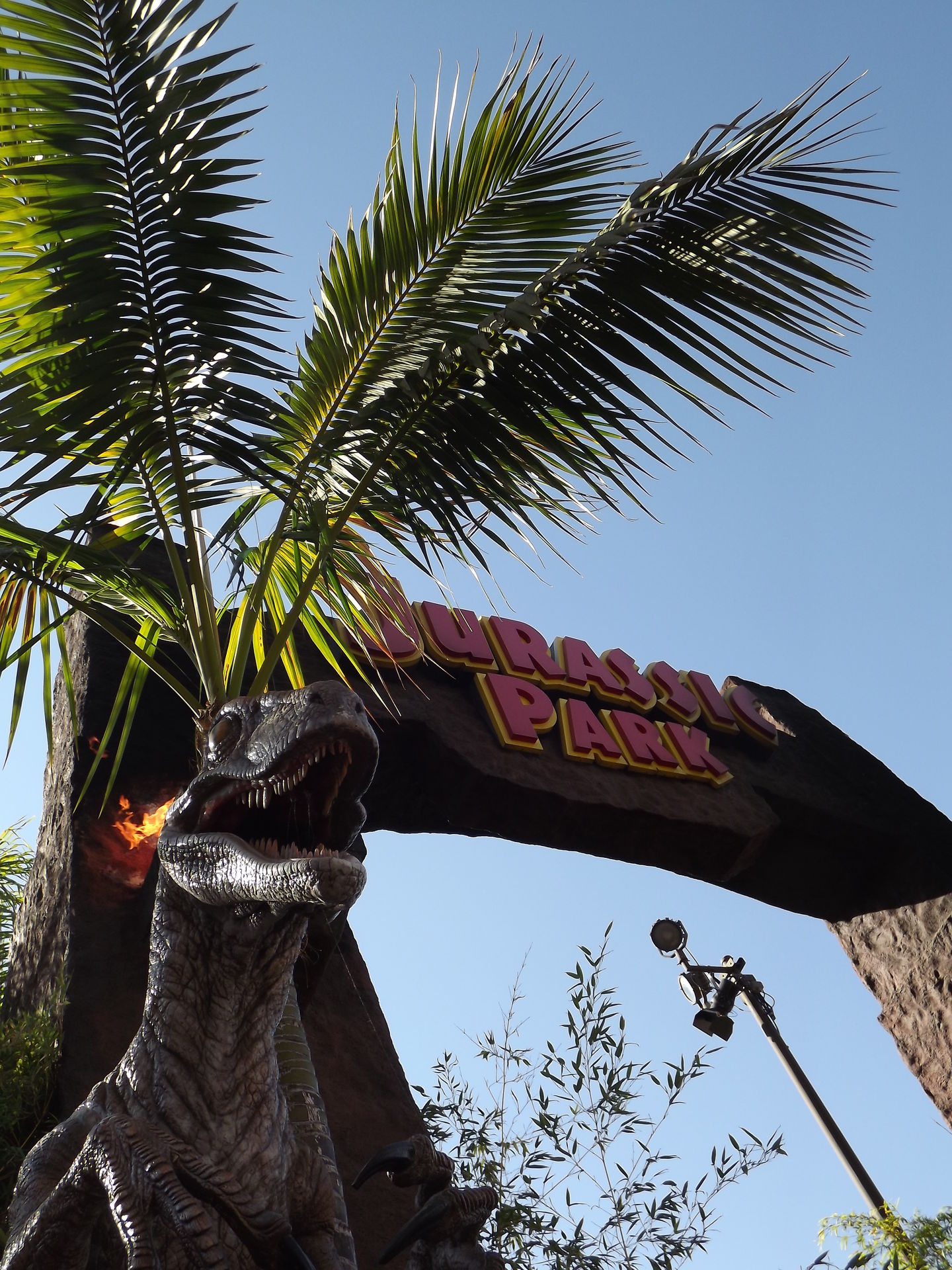 Im Lower Lot befinden sich drei der vier weiteren Attraktionen: Jurassic Park, Transformers und Revenge of the Mummy. Um Fahren zu dürfen muss man seine Taschen wegschließen, allerdings sind die ersten 90 Minuten gratis. Das reichte zum Glück für alle drei Attraktionen völlig aus, denn der Park war an diesem Monat echt schön leer. Den Anfang machte Jurassic Park.