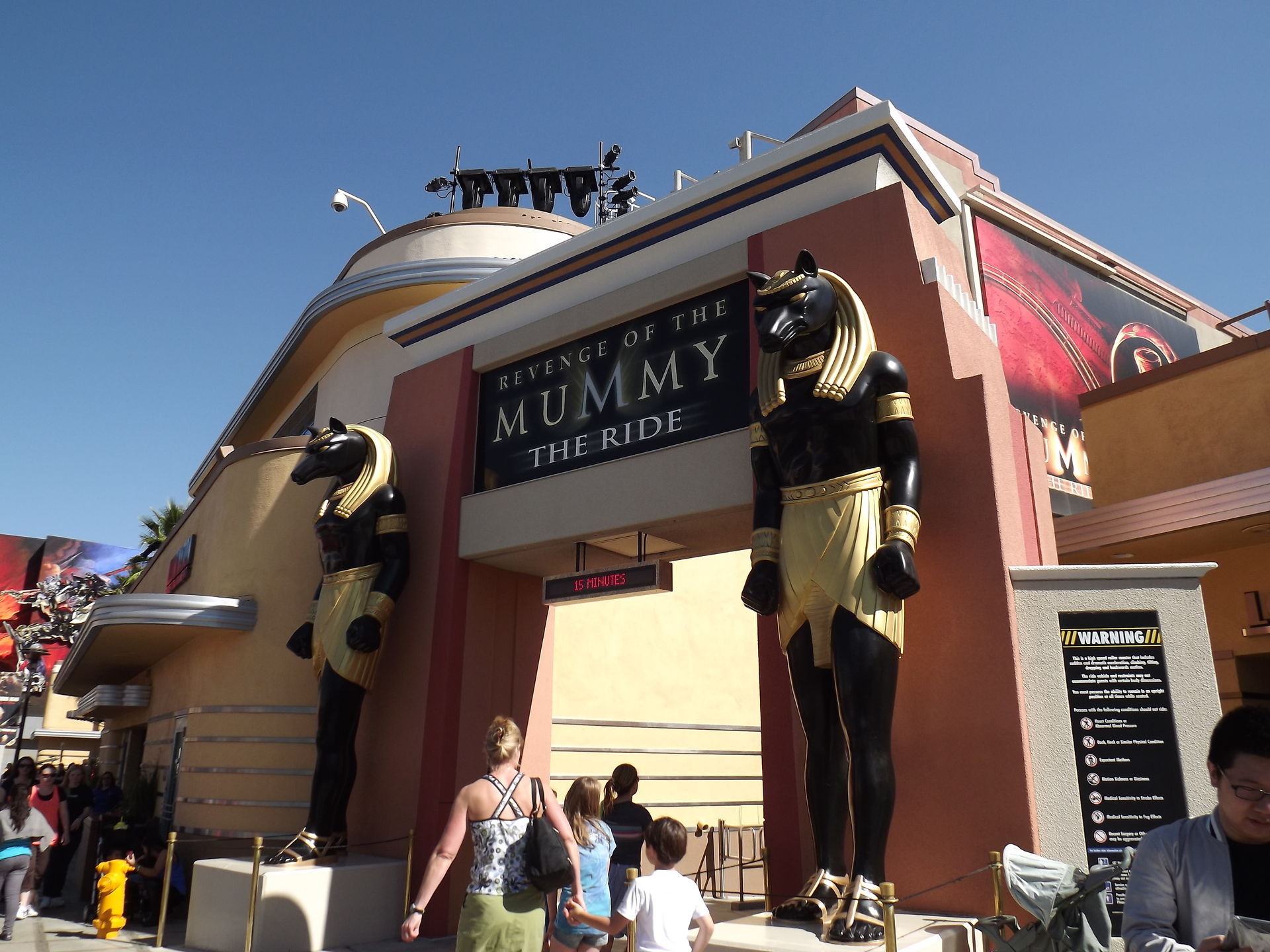 Weiter ging es sofort mit Revenge of the Mummy. Der Wartebereich ist super gelungen und hat eine tolle Atmosphäre. Auch der Darkride Part am Anfang der Bahn ist einfach total geil. Die etwas billig wirkenen leuchtenen Figuren während der Fahrt stören dann aber leider schon ziemlich. Allerdings nicht so sehr wie das seltsame abgehackte Ende, das es wohl in Orlando so komisch nicht gibt. Ein paar Sachen waren also etwas enttäuschend, aber ingesamt immer noch eine tolle Bahn, besonders von der Gestaltung her.