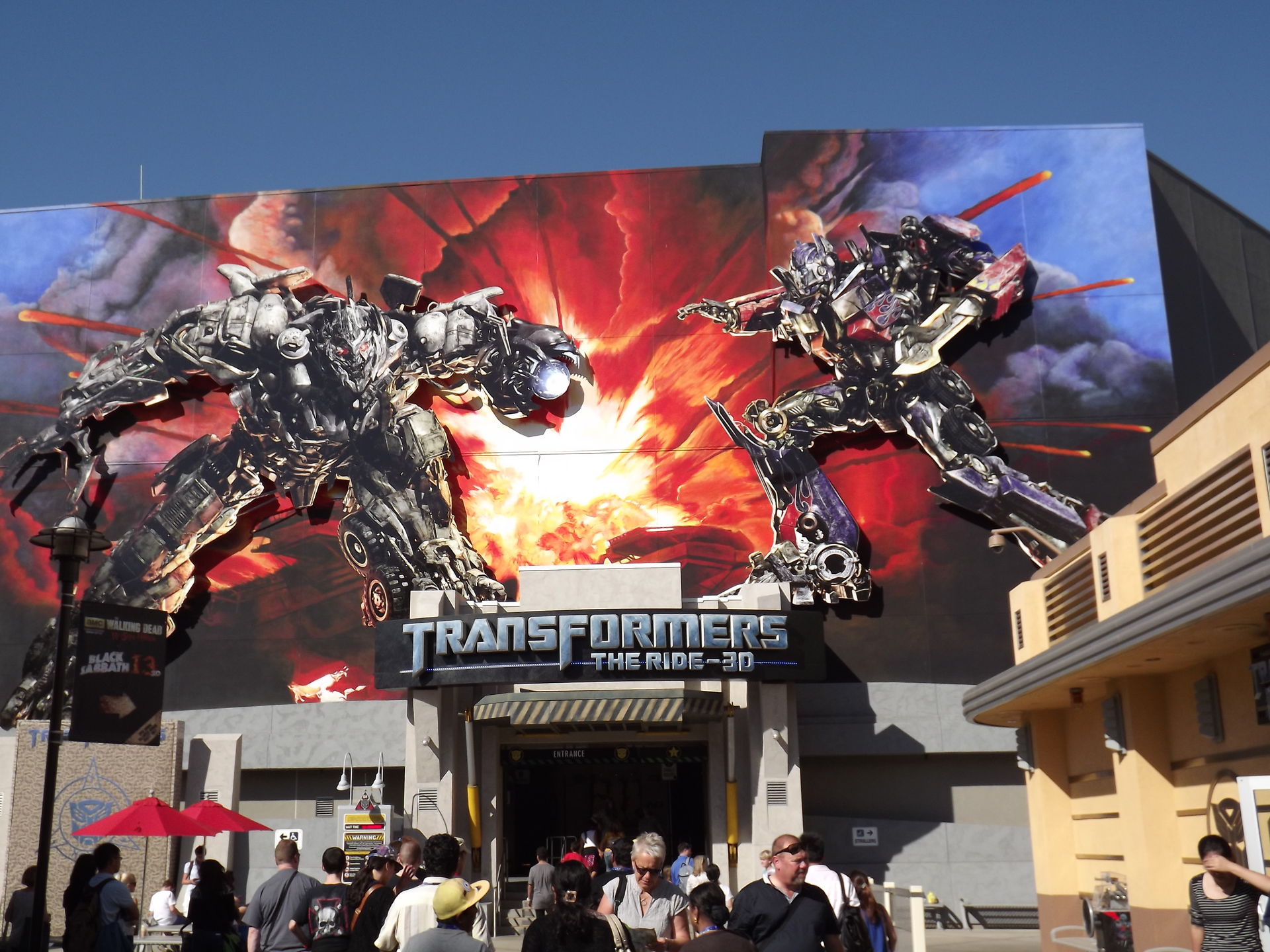 Dann gibt es hier unten natürlich noch Transformers The Ride 3D. Da weiß ich nicht so richtig was ich dazu sagen soll. Die Technik und das System sind wirklich atemberaubend, man bekommt überhaupt nicht mit wo die Leinwand aufhört und anfängt, einfach genial. Das Thema gefällt mir allerdings überhaupt nicht, hätte also auch besser sein können. Jetzt bin ich natürlich umso gespannter auf Spiderman, denn das sagt mir schon etwas mehr zu als Transformers. Trotzdem gut das es so leer war, denn nur einmal fahren kann man das hier wirklich nicht.