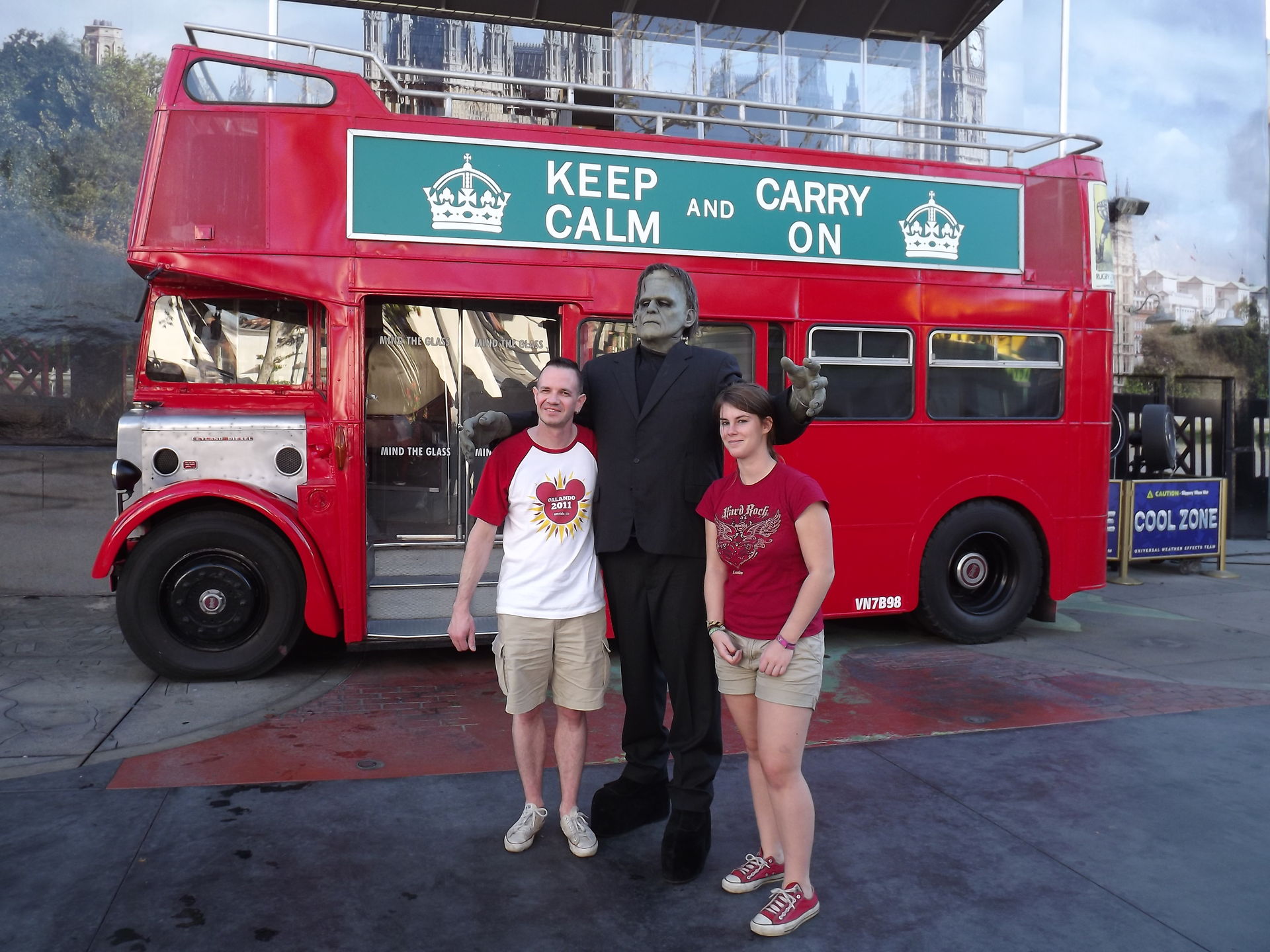 Nach der Nacht in Lost Hills fuhr der Bus sehr früh morgens weiter in Richtung Los Angeles, da wir noch einiges an Strecke vor uns hatten. Irgendwann tauchte die beeindruckende Skyline Six Flags Magic Mountain neben uns auf, die musste allerdings noch ein paar Tage auf uns warten. Aber für den ersten Vorgeschmack war das auf jedenfall ganz schön. Stattdessen ging es weiter zu den Universal Studios Hollywood, ein Park auf den ich mich ziemlich gefreut habe.