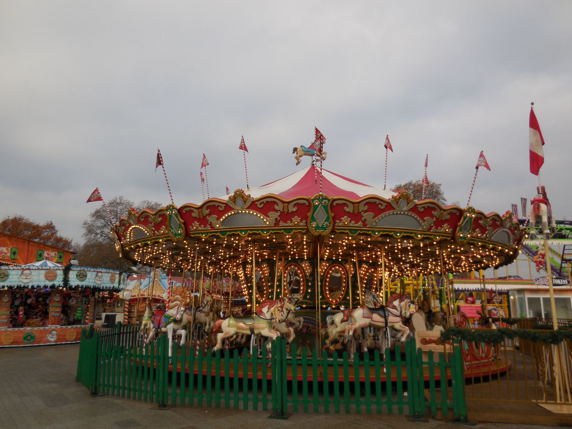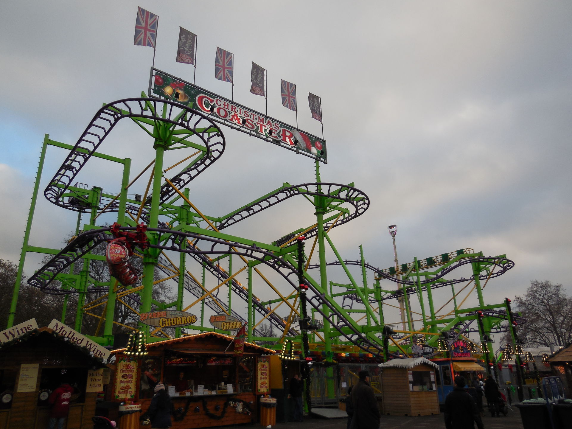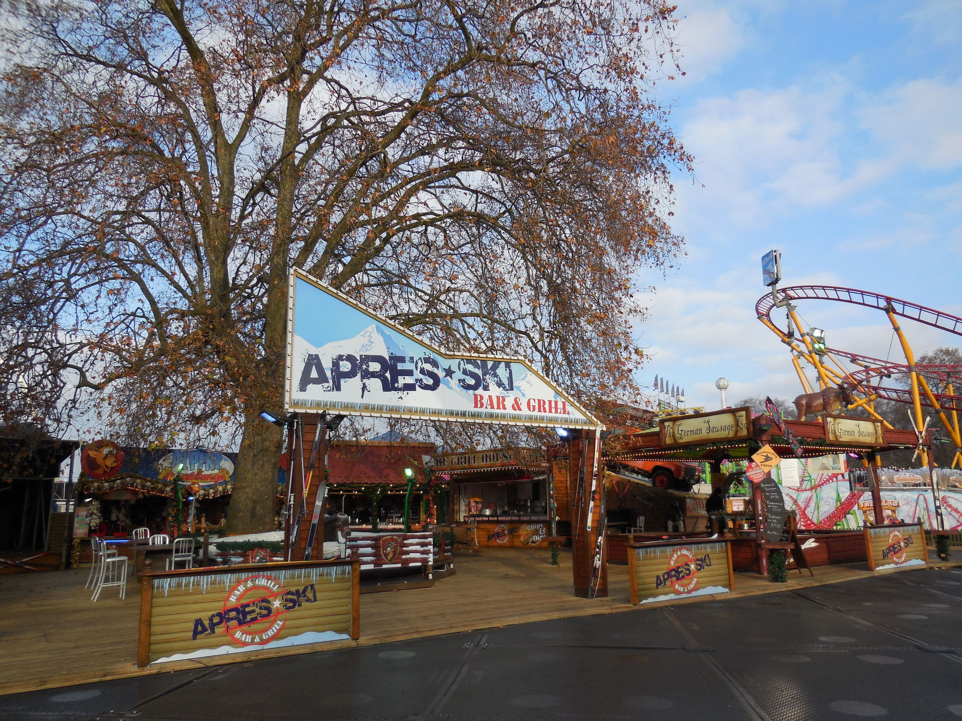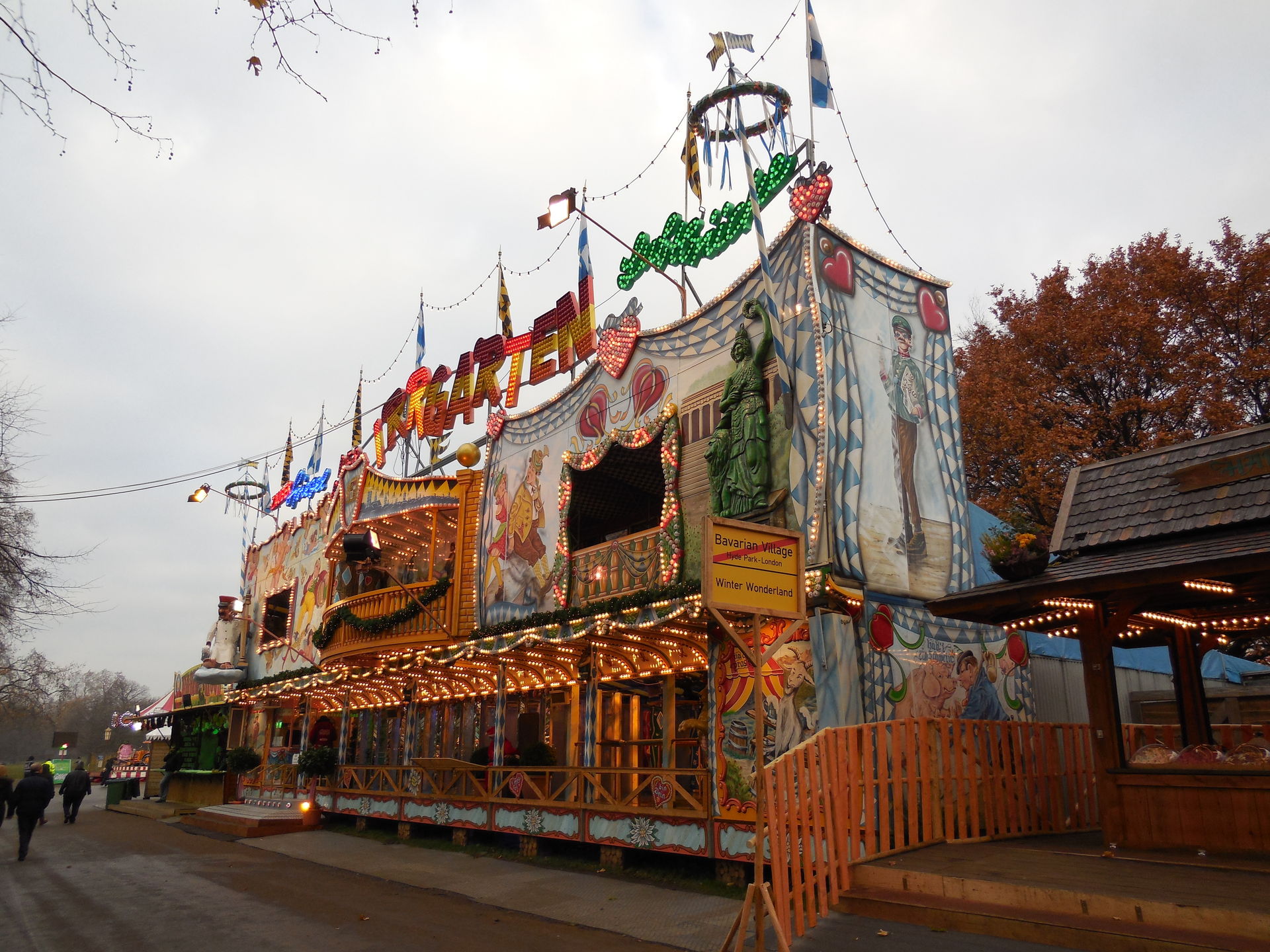Ich habe ich mich an vielen Stellen des Areals nicht auf einen Englischen Kirmes gefühlt, das werdet ihr auch an den Bildern sehen. Es waren sehr viele Zelte, Imbissständen auf Deutsch geschrieben, "Glühwein, Bratwurst" sah man fast an jeder zweiten Bude. Das war ein wenig seltsam