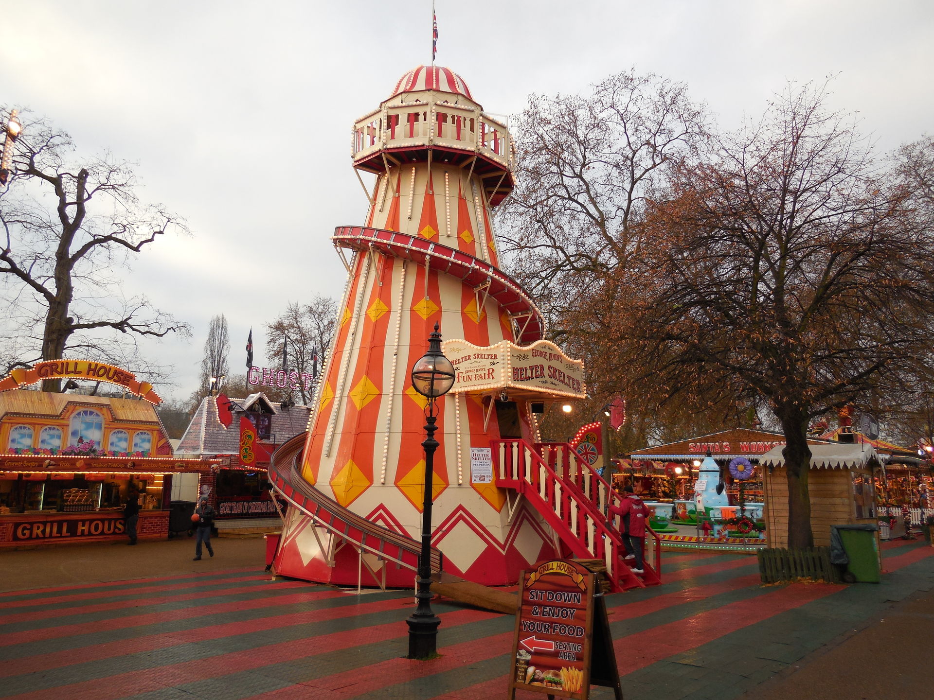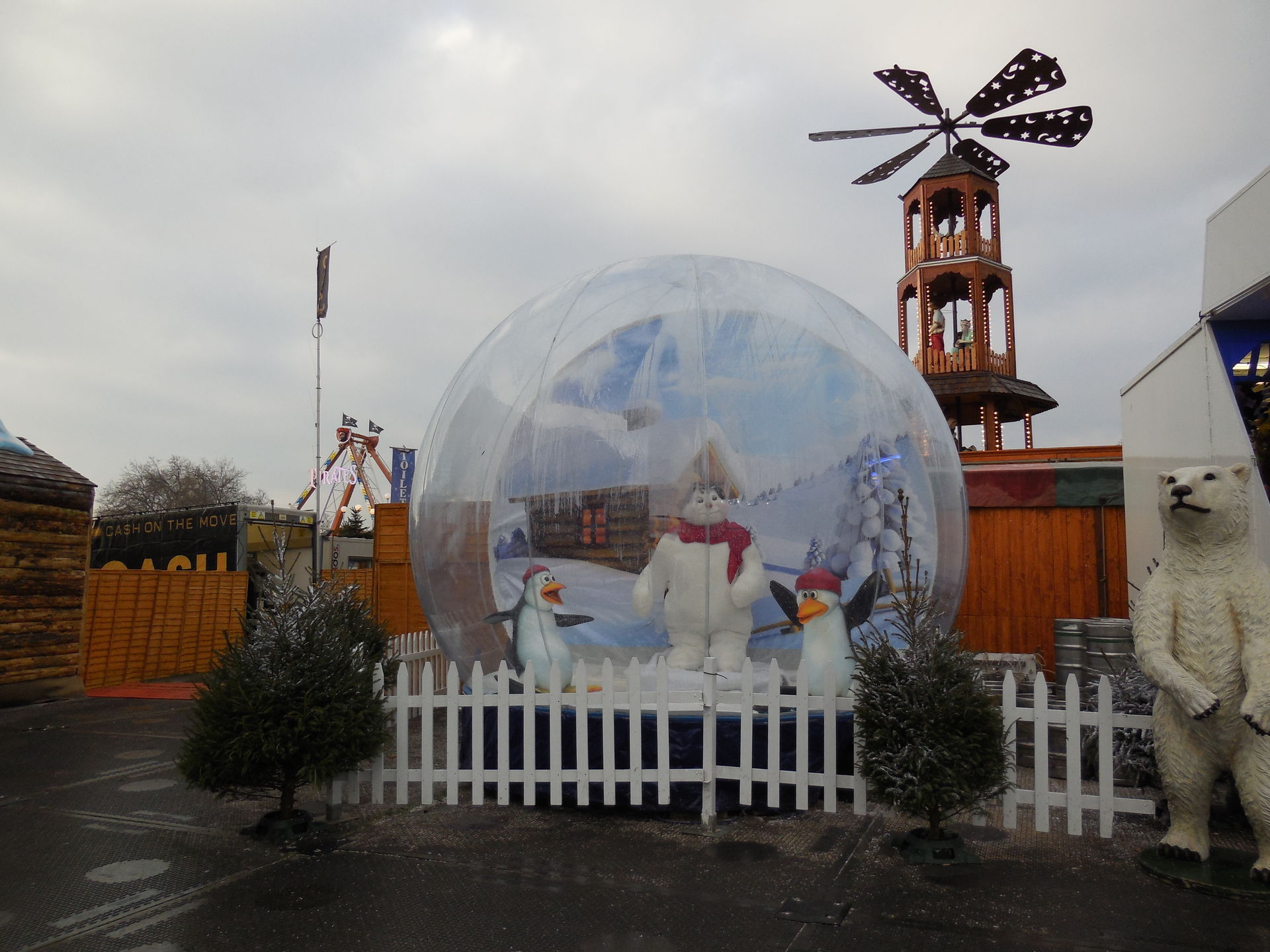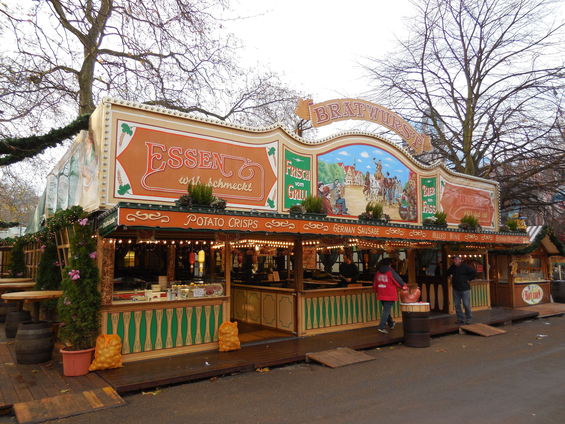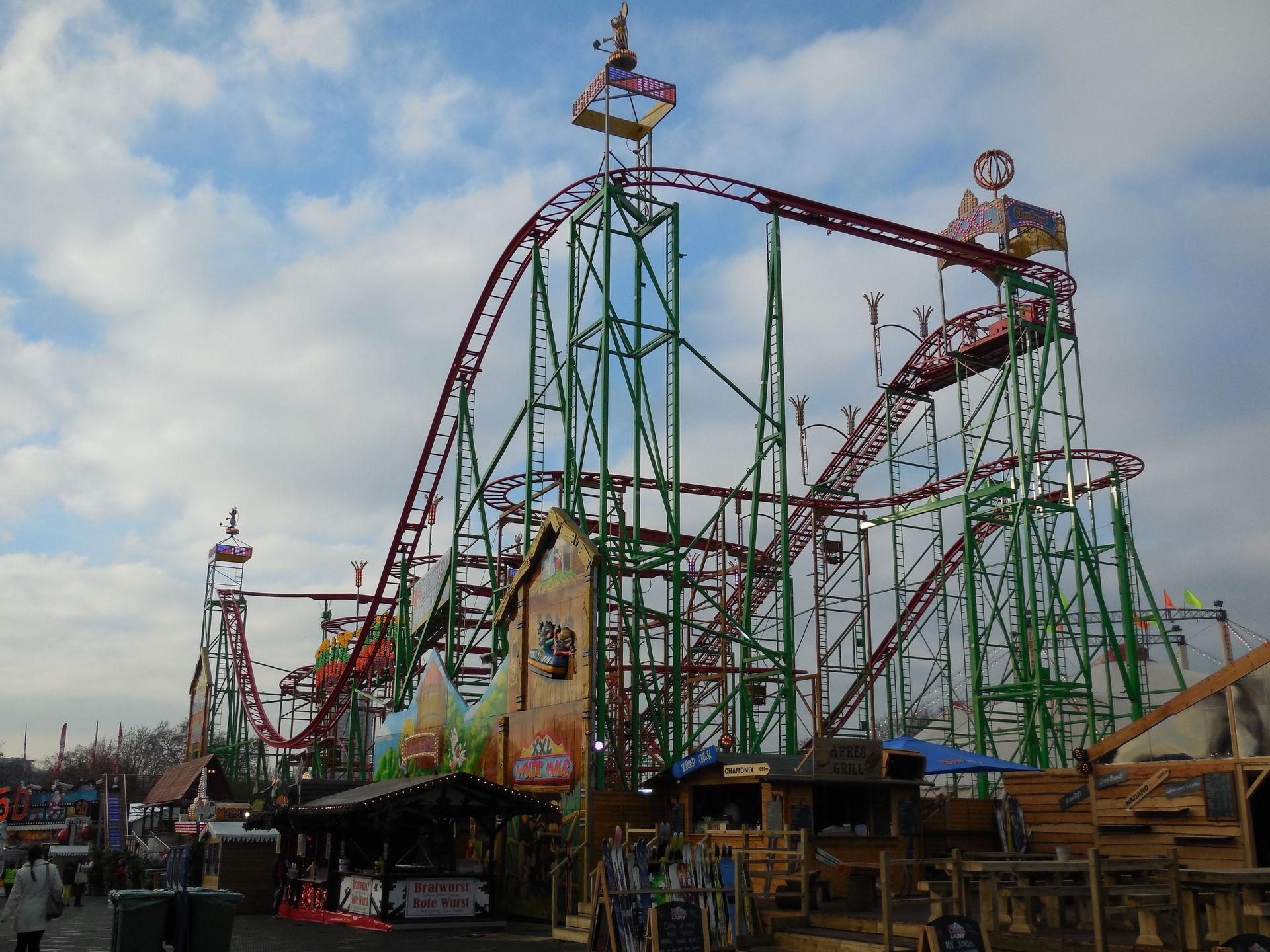 Ich habe ich mich an vielen Stellen des Areals nicht auf einen Englischen Kirmes gefühlt, das werdet ihr auch an den Bildern sehen. Es waren sehr viele Zelte, Imbissständen auf Deutsch geschrieben, "Glühwein, Bratwurst" sah man fast an jeder zweiten Bude. Das war ein wenig seltsam
