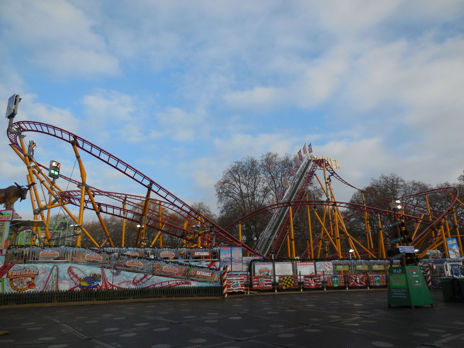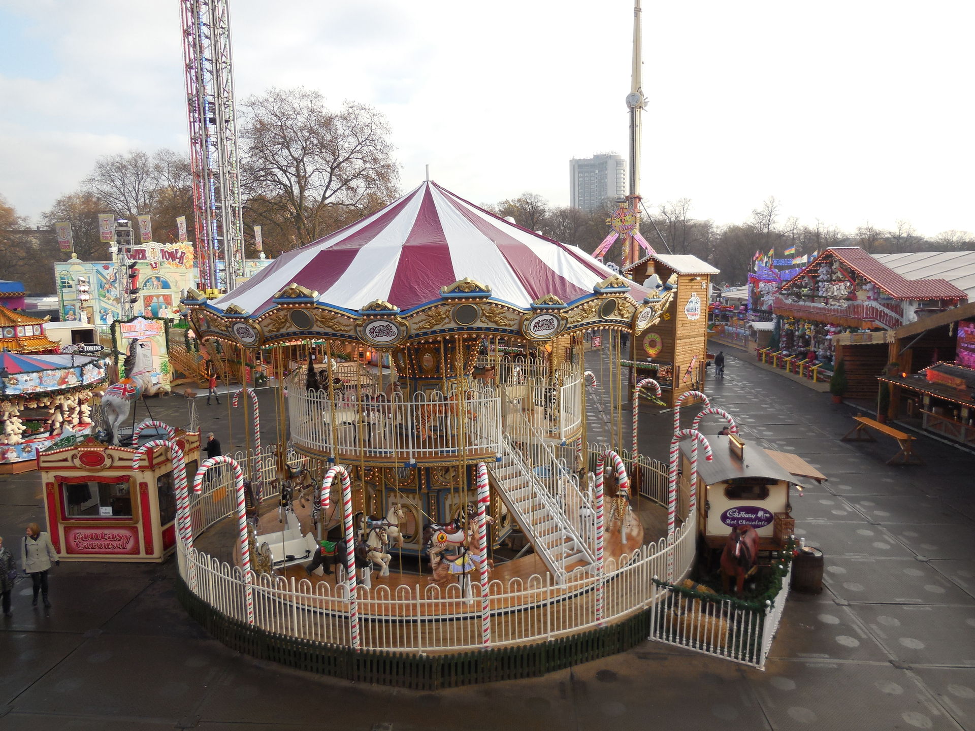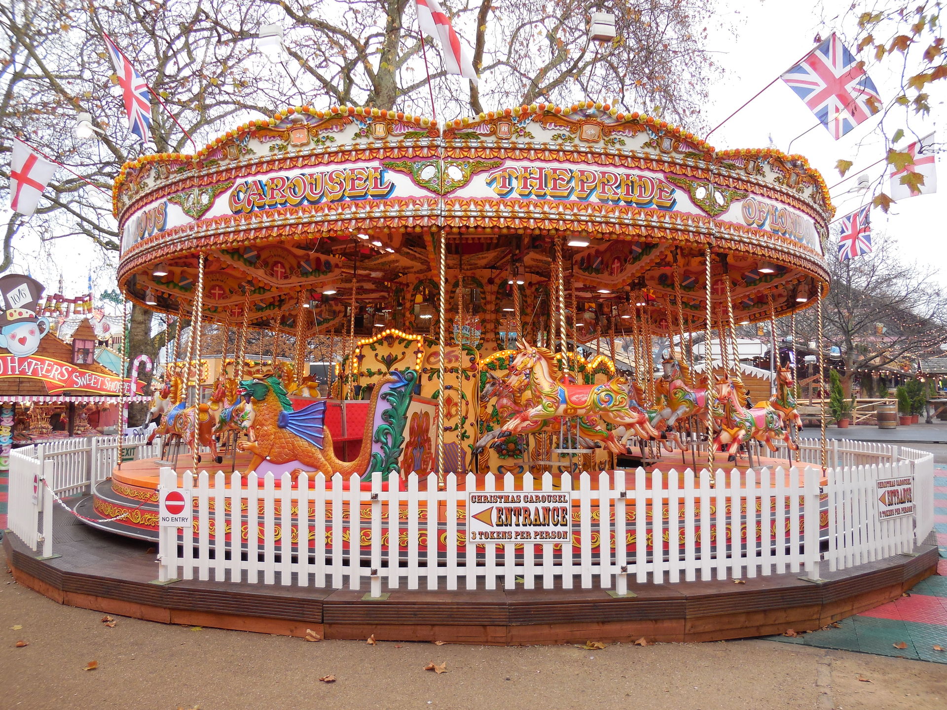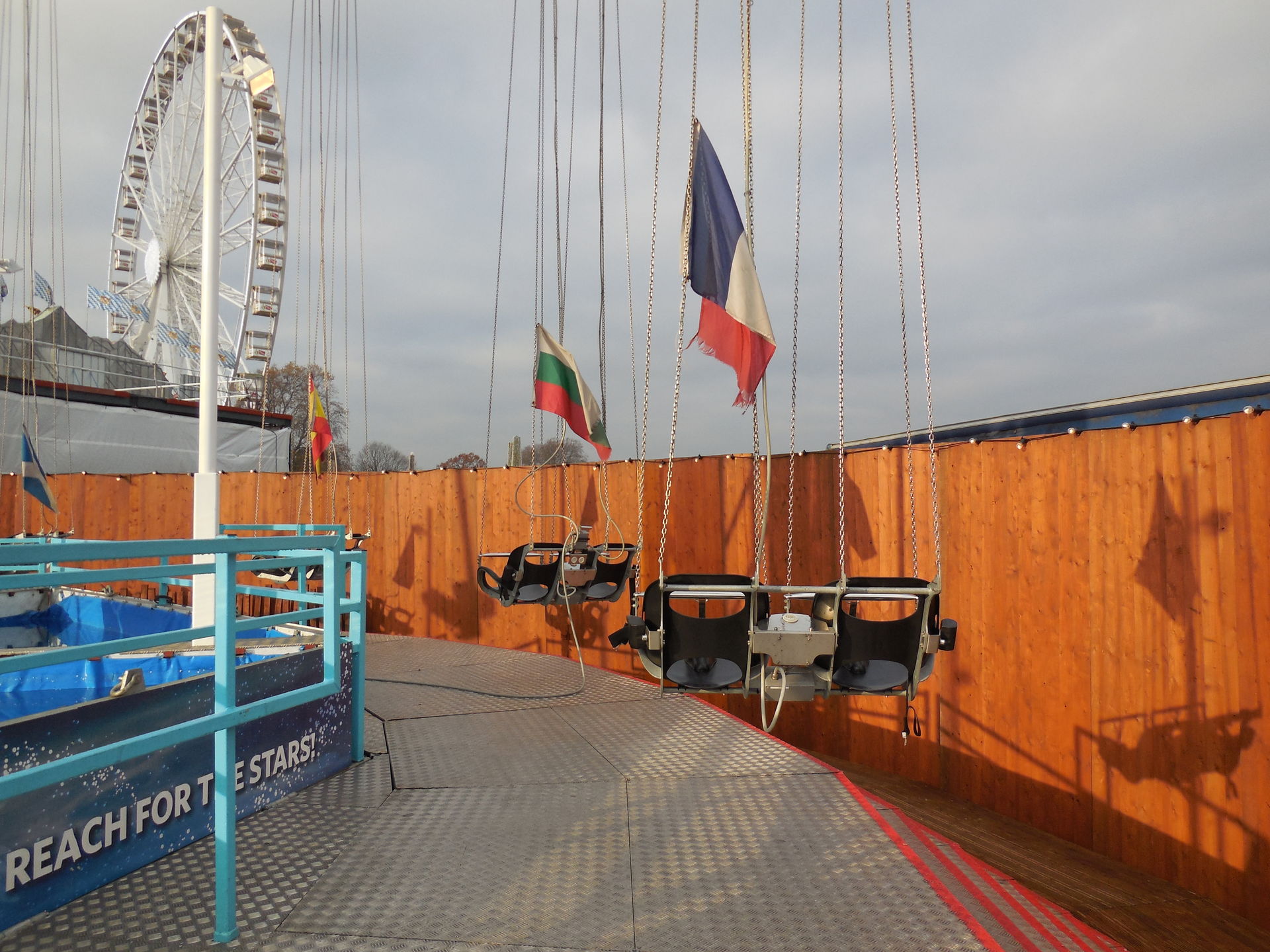 Ich habe ich mich an vielen Stellen des Areals nicht auf einen Englischen Kirmes gefühlt, das werdet ihr auch an den Bildern sehen. Es waren sehr viele Zelte, Imbissständen auf Deutsch geschrieben, "Glühwein, Bratwurst" sah man fast an jeder zweiten Bude. Das war ein wenig seltsam