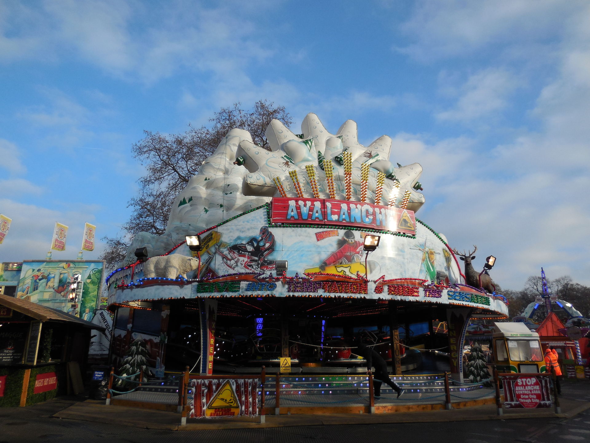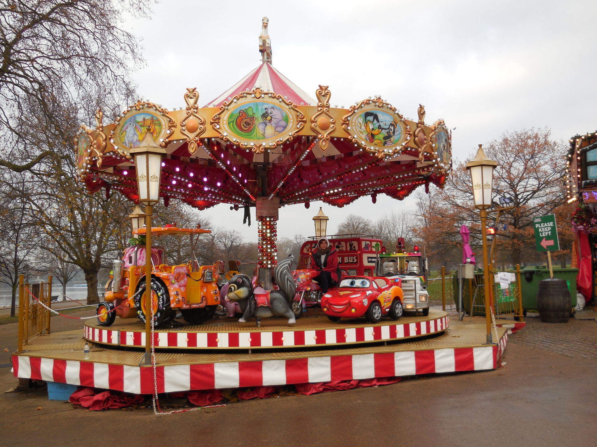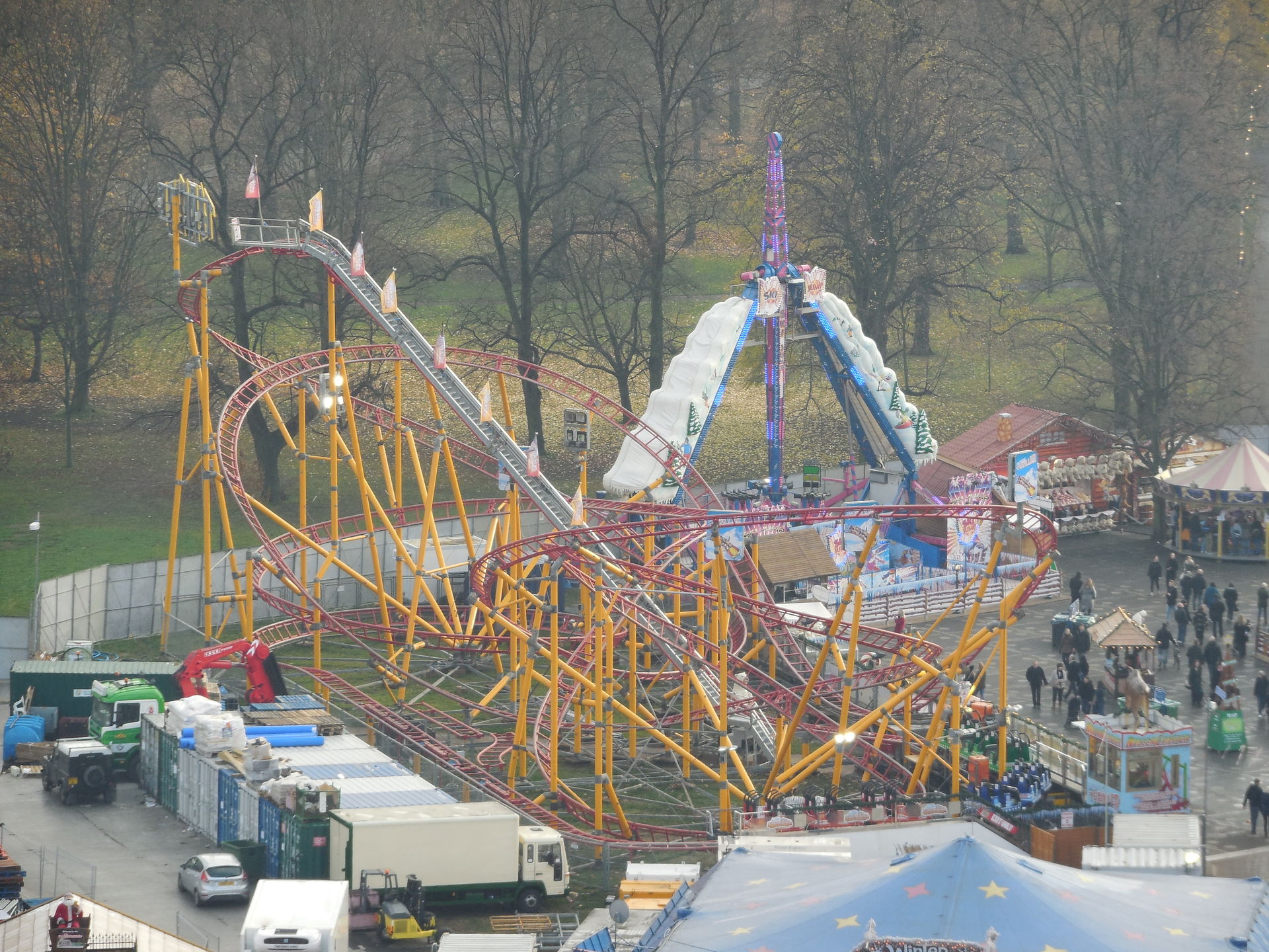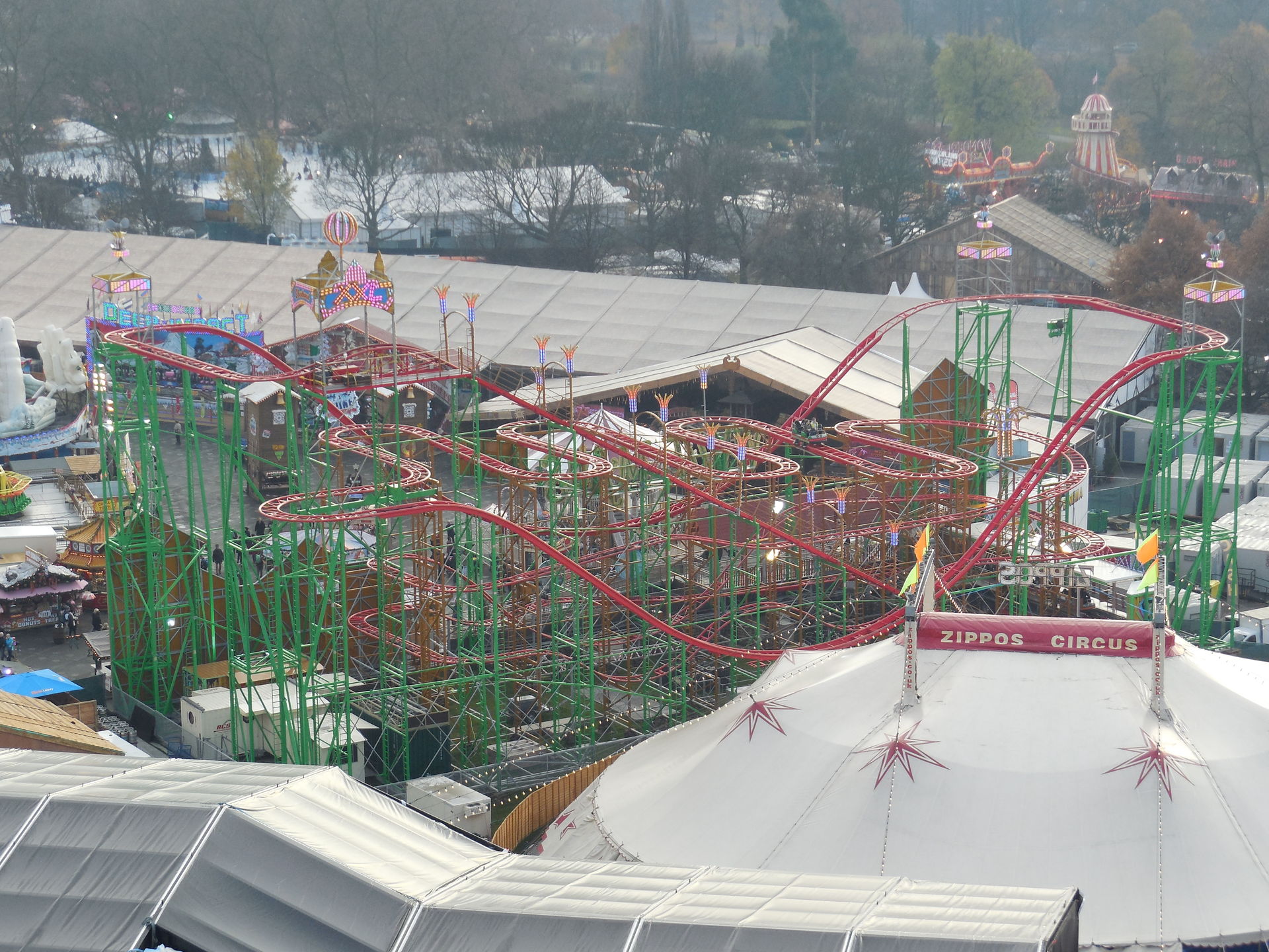 Ich habe ich mich an vielen Stellen des Areals nicht auf einen Englischen Kirmes gefühlt, das werdet ihr auch an den Bildern sehen. Es waren sehr viele Zelte, Imbissständen auf Deutsch geschrieben, "Glühwein, Bratwurst" sah man fast an jeder zweiten Bude. Das war ein wenig seltsam