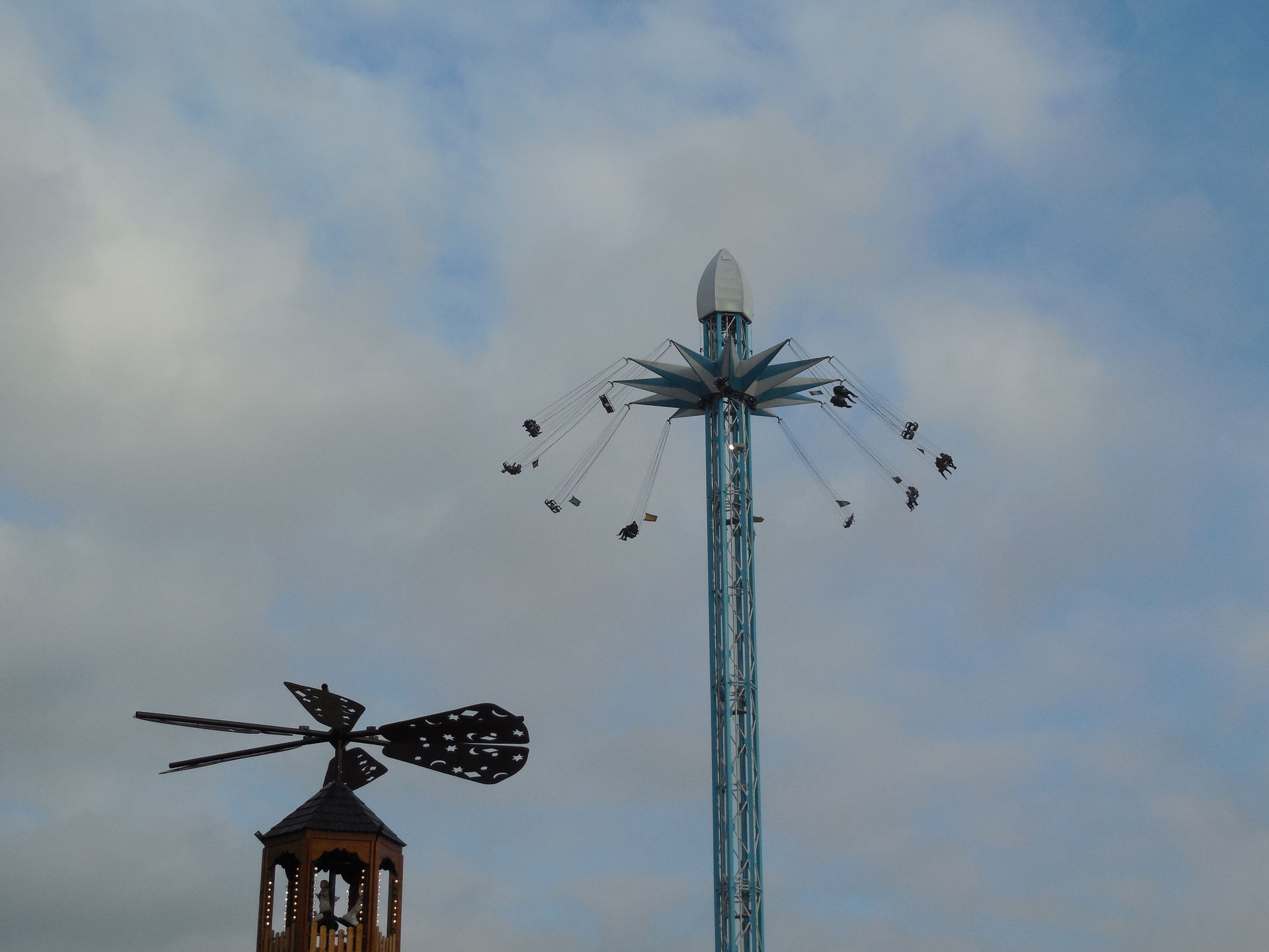 Hier ein alter Bekannter aus Wien, der Starflyer Prototyp aus dem Wiener Prater. Witzigerweise hat der Starfyler die alte Kassa vom Praterturm.
