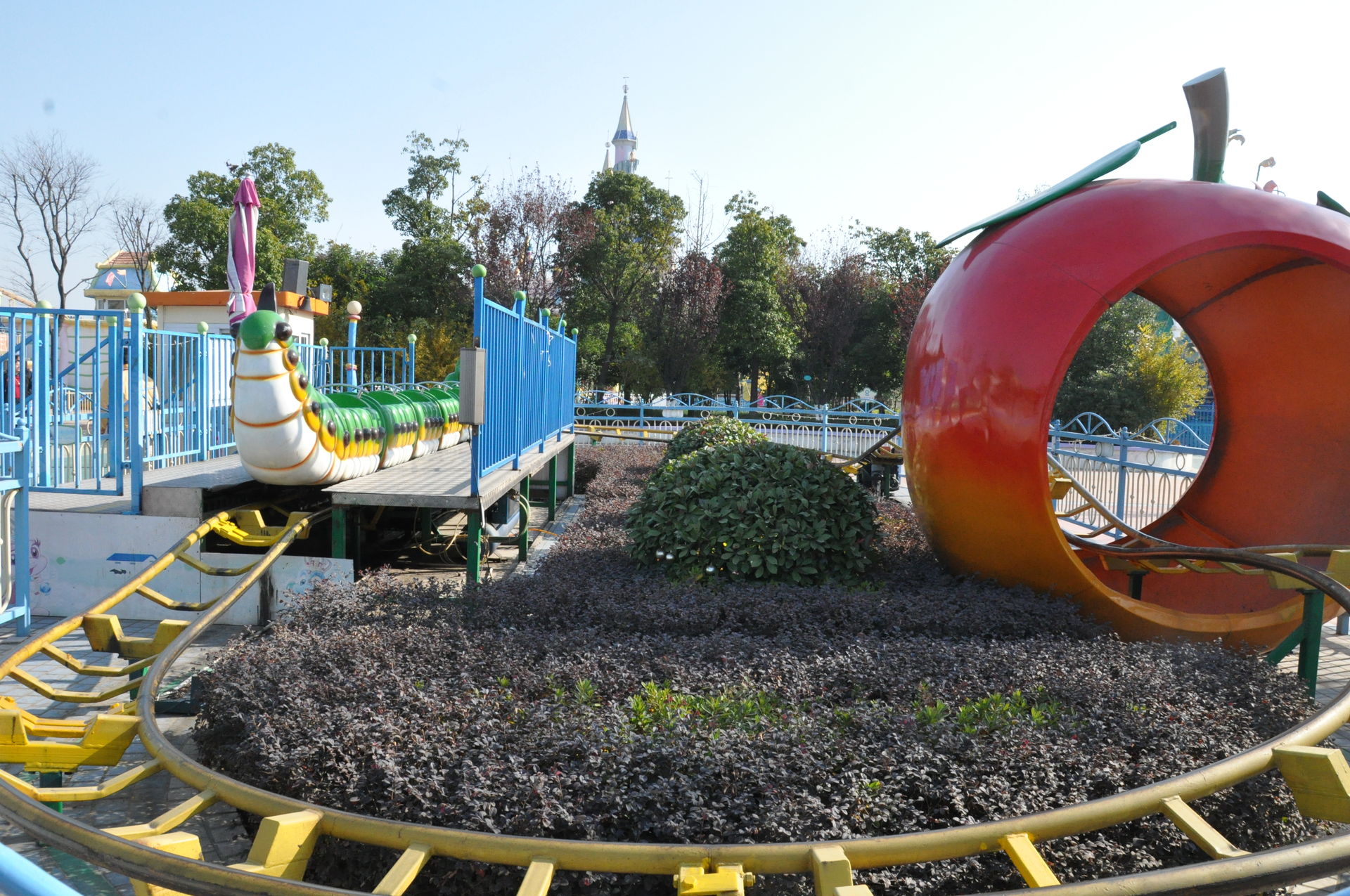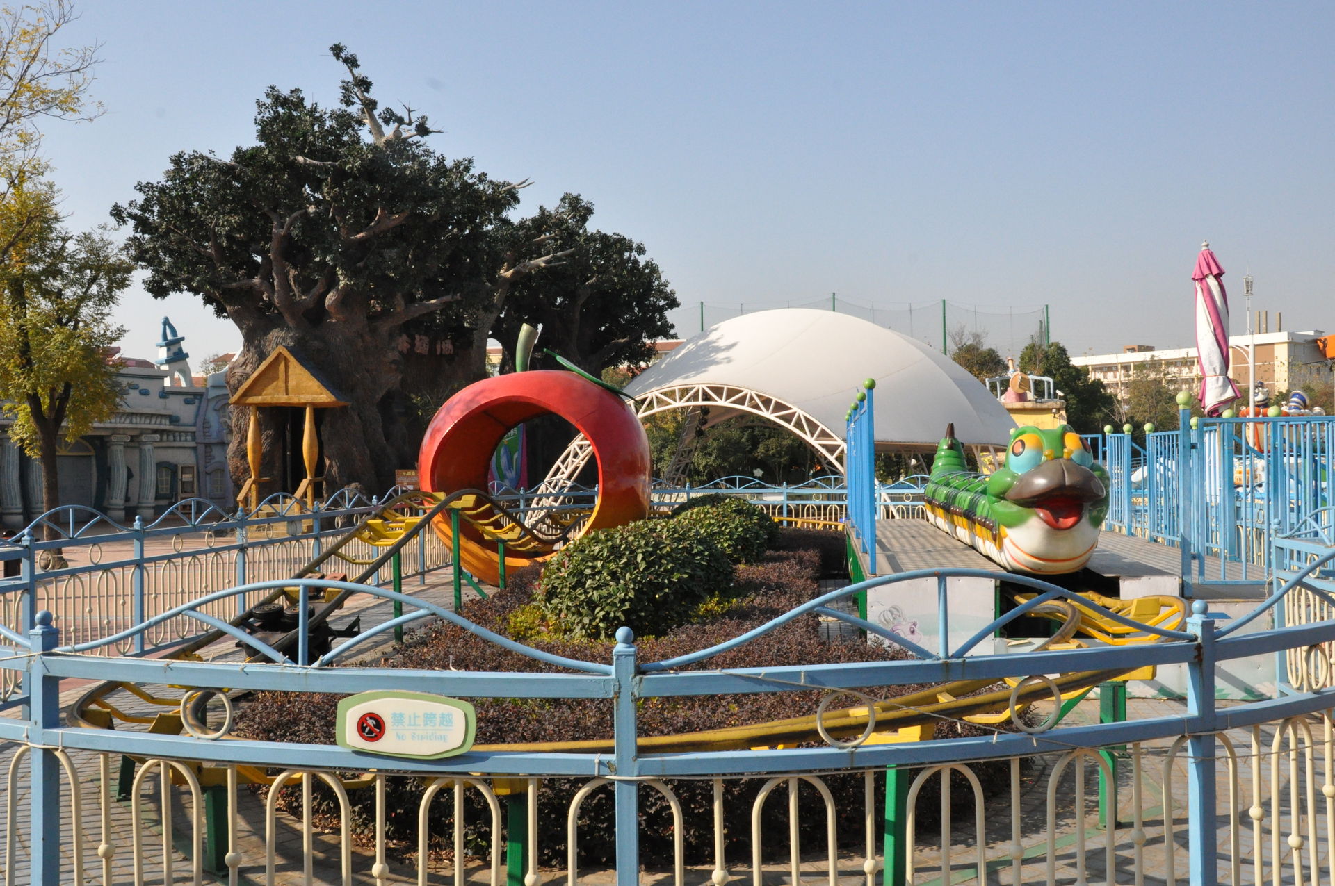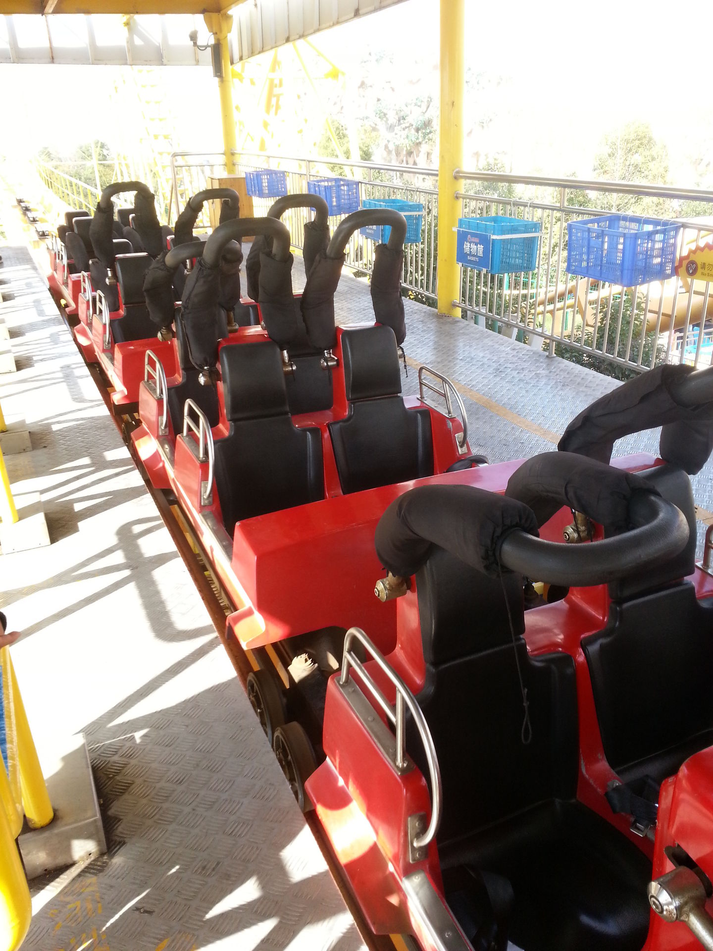 Der erste Coaster. Ein Kiddie Coster mit dem Namen Worm Arround. Habe mich rein gesetzt und als der chinesische Mitarbeiter ankam und was sagte, habe ich bewusst nur auf Deutsch gesagt, dass ich nix verstehe und bin stumpf sitzten geblieben.