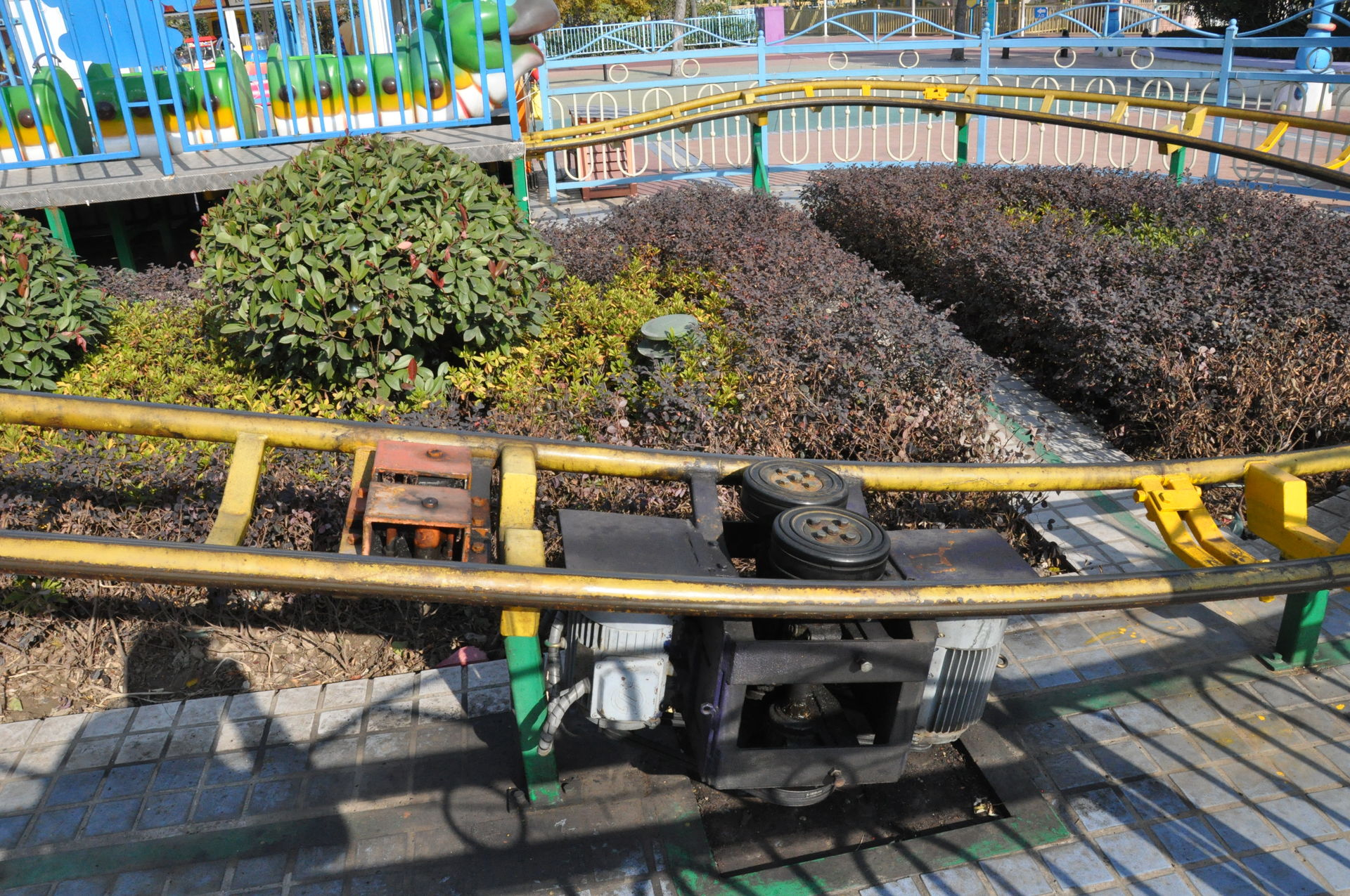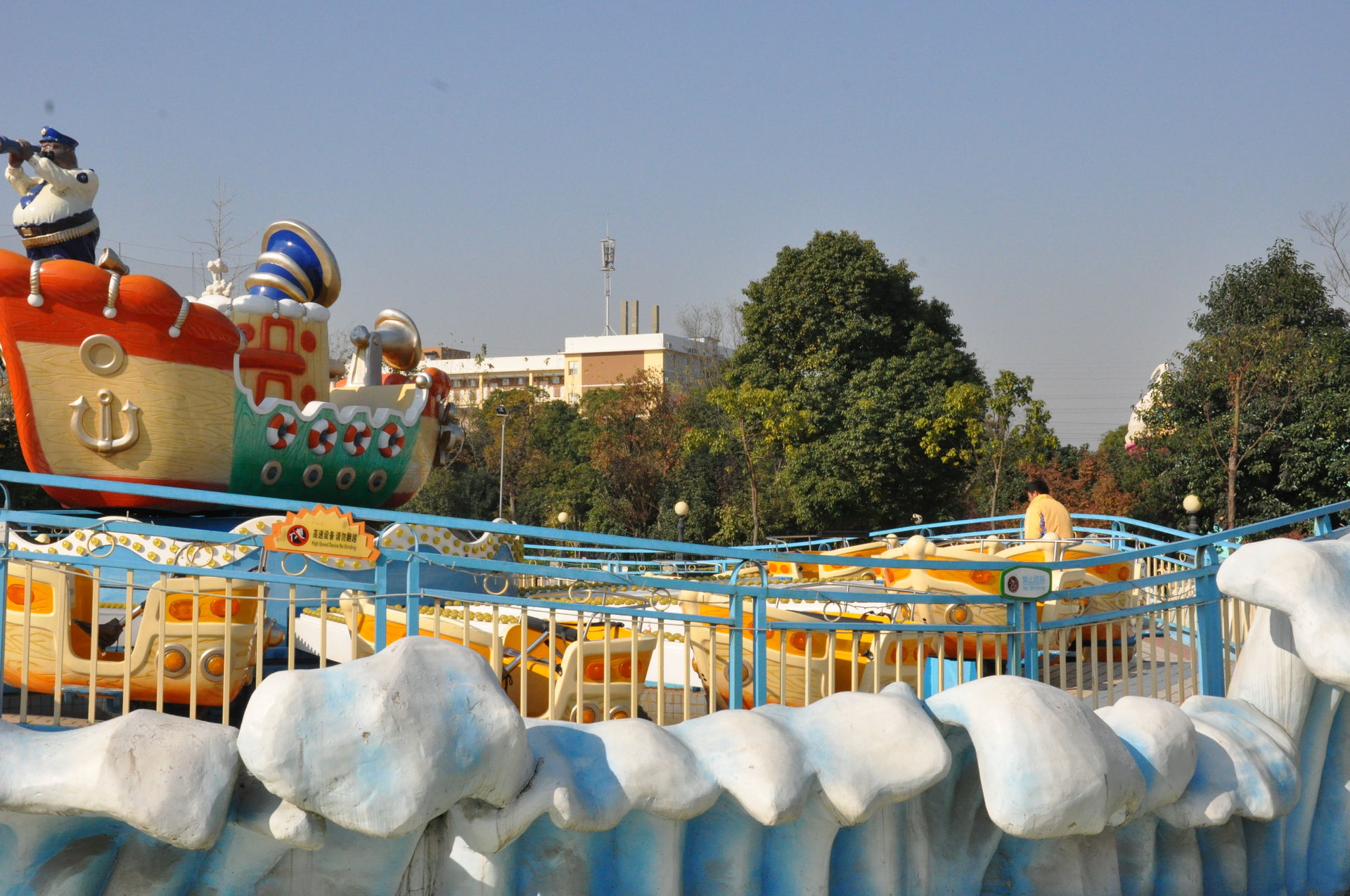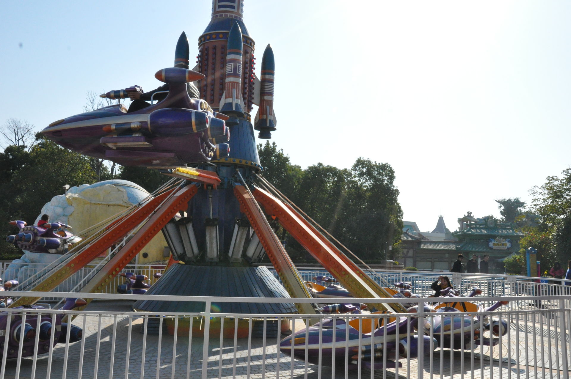 Der erste Coaster. Ein Kiddie Coster mit dem Namen Worm Arround. Habe mich rein gesetzt und als der chinesische Mitarbeiter ankam und was sagte, habe ich bewusst nur auf Deutsch gesagt, dass ich nix verstehe und bin stumpf sitzten geblieben.