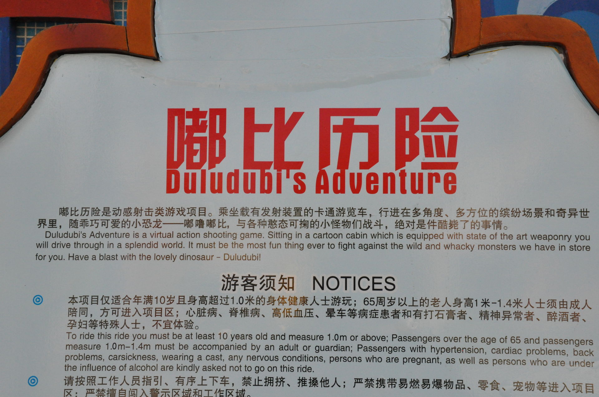 Vor jeder Attraktion hing eine Tafel mit einer Erklärung oder kleinen Geschichte dazu.