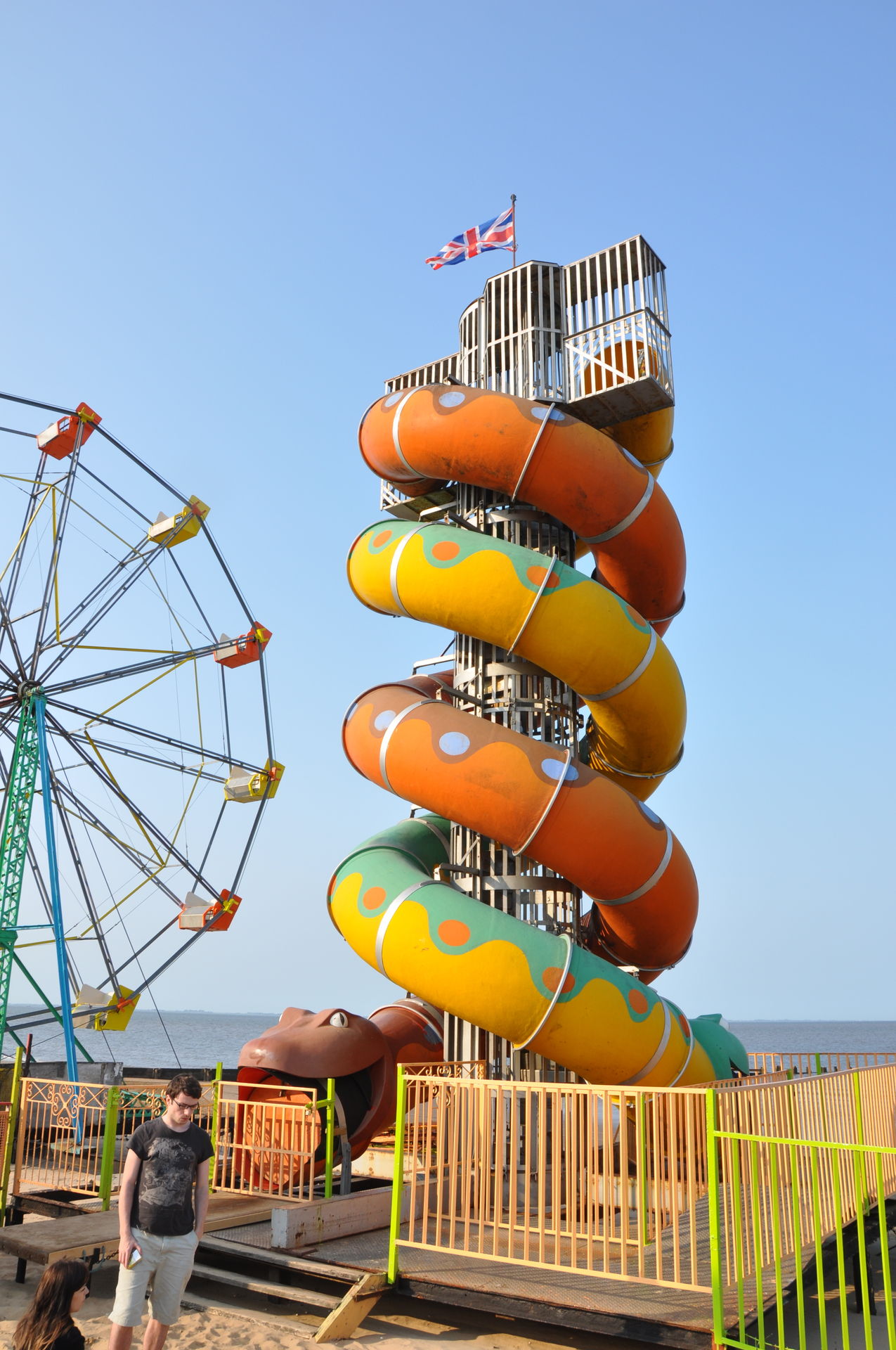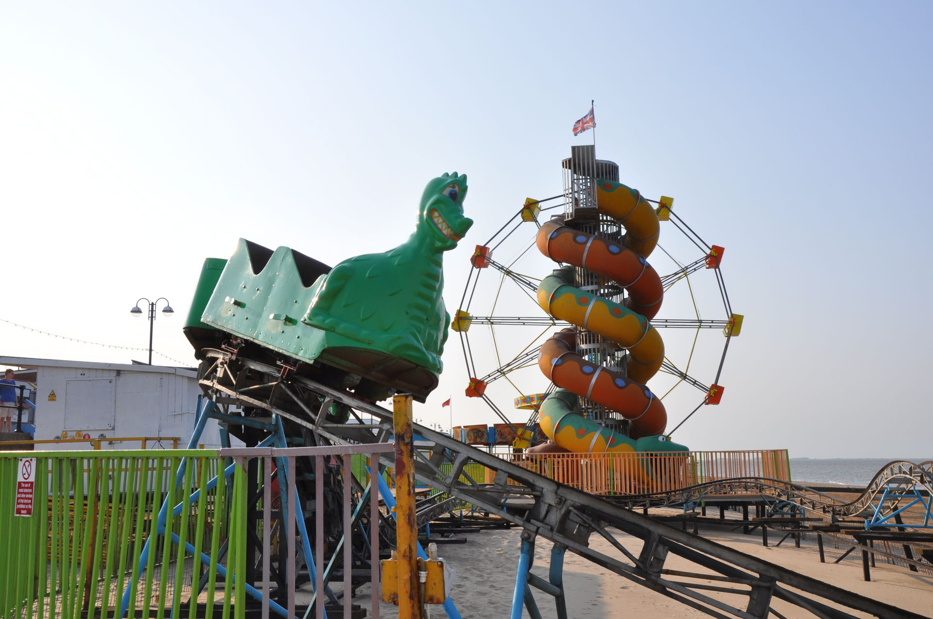 Ebenfalls in Cleethorpes, nur etwas weiter nördlich steht direkt auf dem Strand der Sea Dragon. Aufgrund dieses Standortes kann er bei Flut auch schon mal unter Wasser stehen. Er bezieht seinen Reiz nicht aus einer besonders ausgeklügelten Fahrt sondern aus dem Standort und dem Flair. Es macht einfach Spaß hier zu fahren. Mehr als mancher große Coaster in irgendwelchen Parks.
