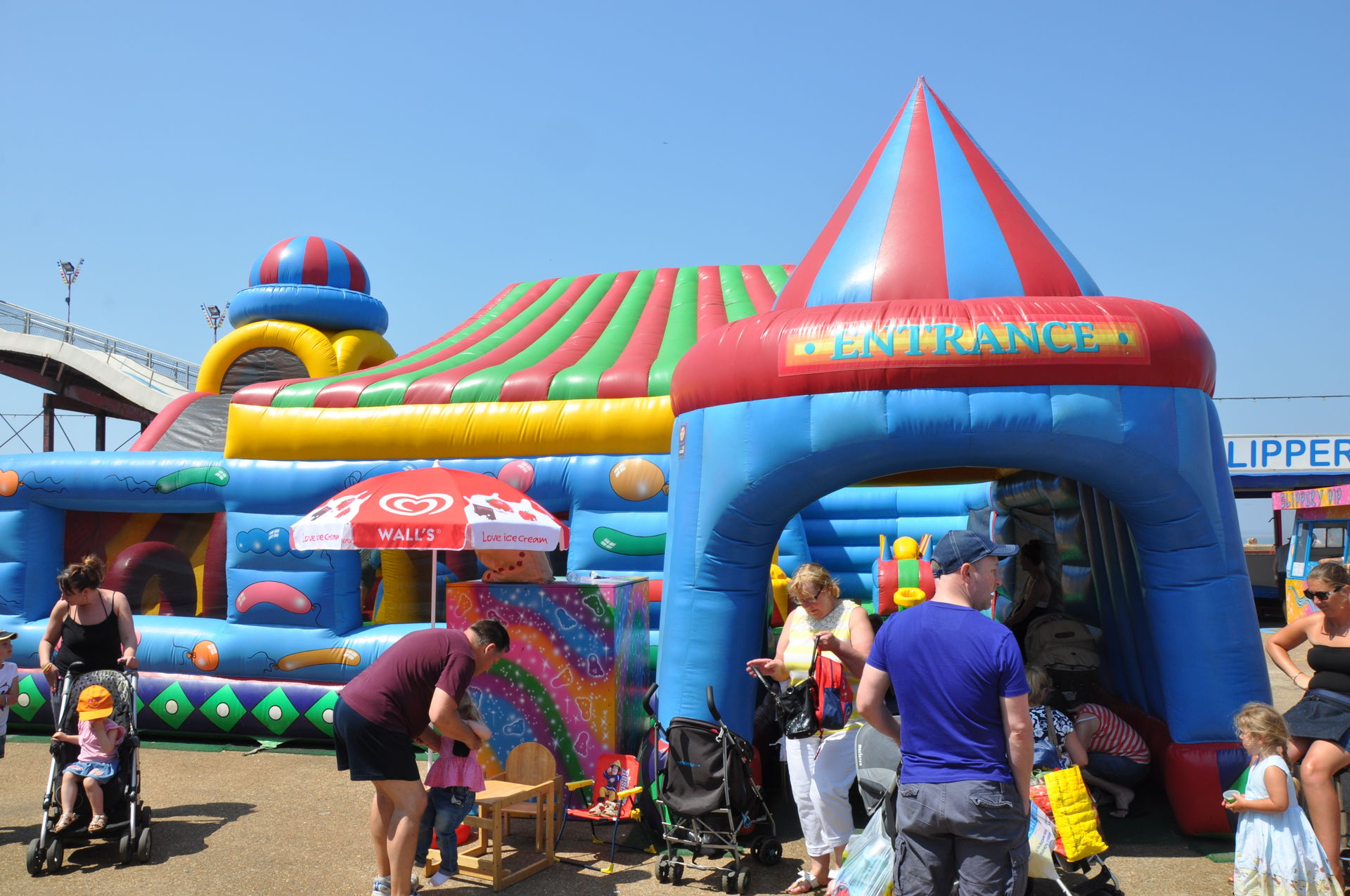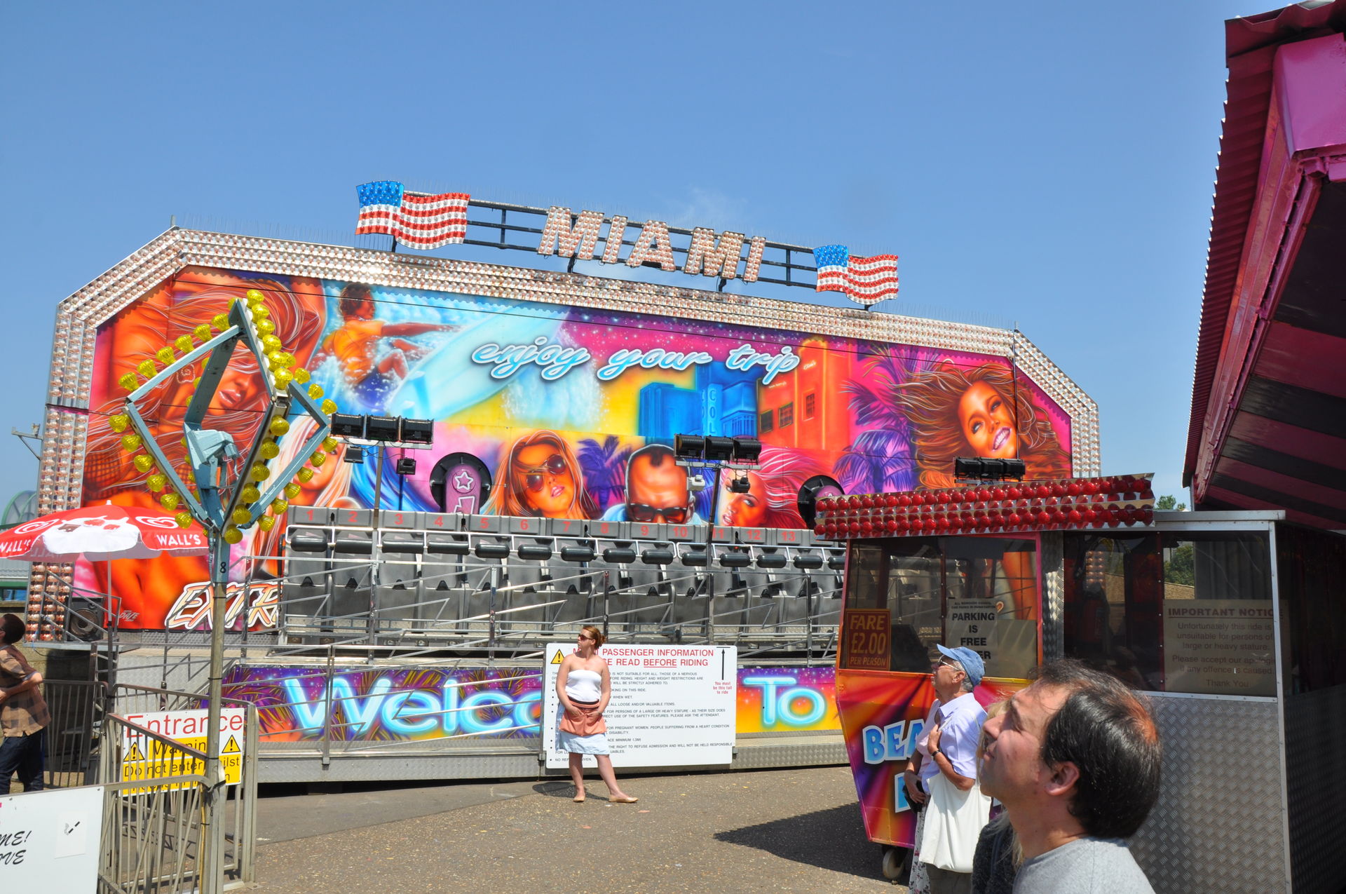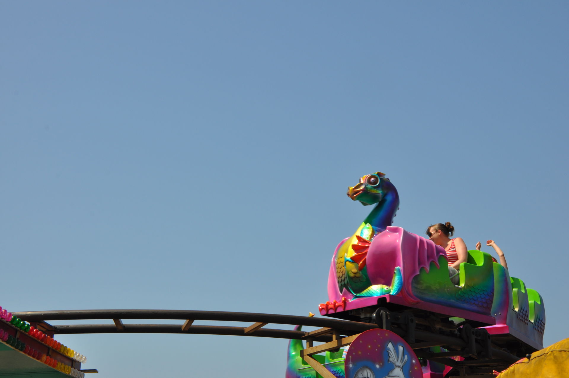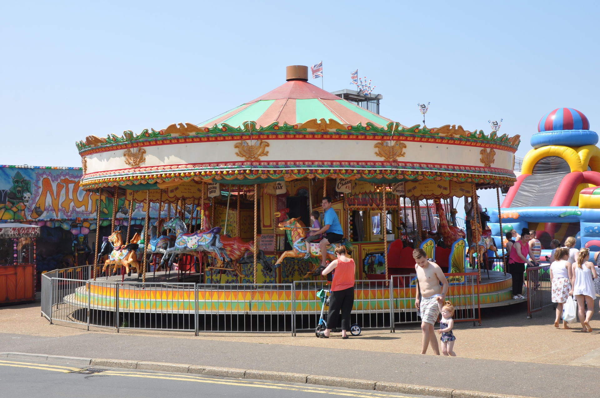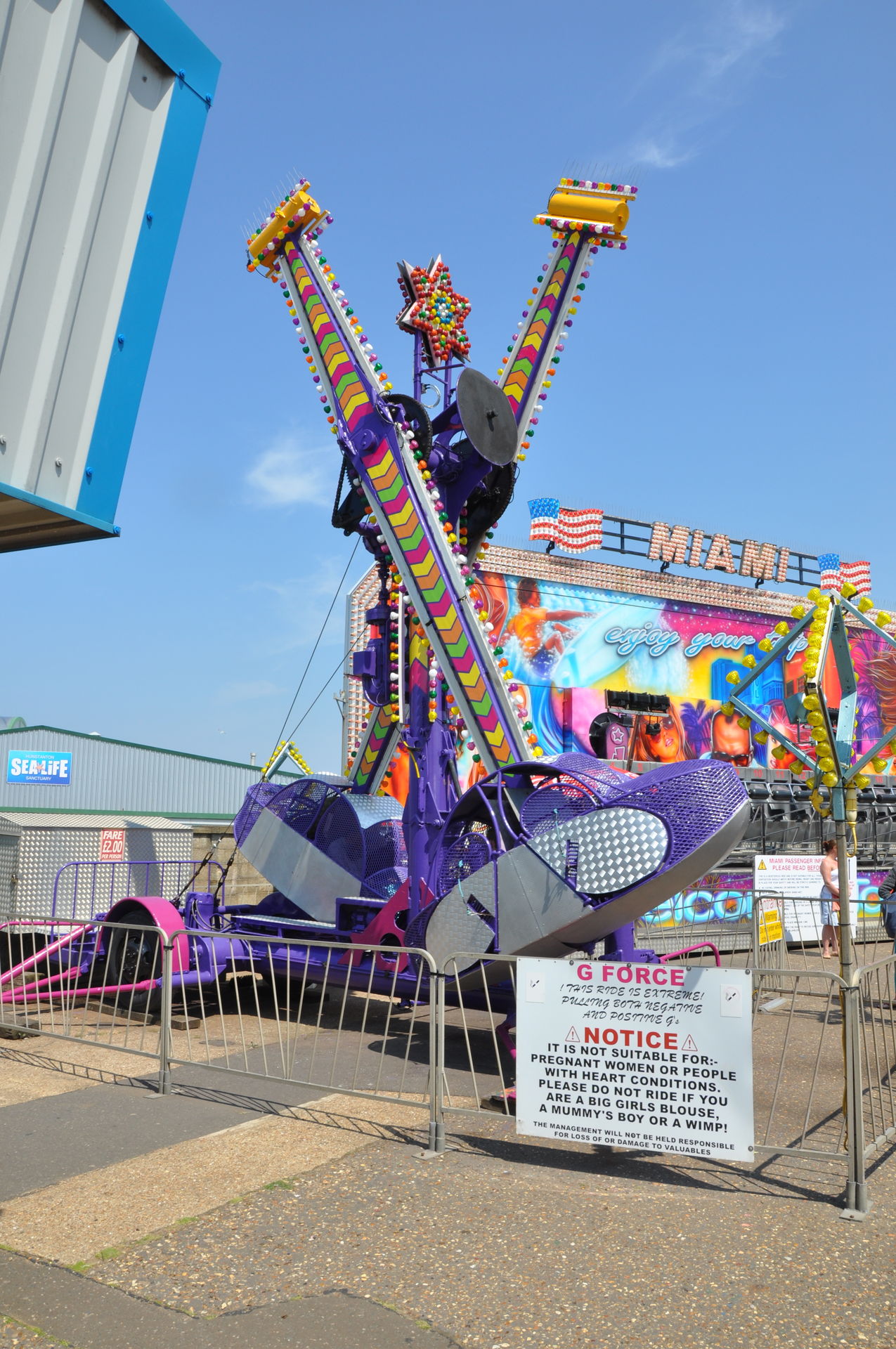 Der Himmel versprach an diesem Sonntag wieder einen sonnigen Tag. Heute ging es als erstes in den Rainbow Park in Hunstanton. Einem kleinen Küstenort in Norfolk. Diese Idee hatten aber nicht nur wir. So haben wir in diversen Staus ca. 50 Minuten verloren. Zum Glück gab es aber direkt am Park noch freie Parkplätze. Nur die Warteschlangen an den Parkautomaten waren genau so lang wie die auf der Straße. Der Park ist sehr übersichtlich und der Coaster sah nach einem typischen Kiddycoaster mit den typischen Fahreigenschaften aus. Aber weit gefehlt, das Teil lief butterweich. Natürlich sind die vier verrückten Deutschen auf dem Kiddy mit dem Besitzer ins Gespräch gekommen. Der erzählte mit Stolz, dass er den Coaster immer gut pflege und auf die Fahreigenschaften besonders achte. Der Mann leistet dort wirklich sehr gute Arbeit. Hier ein paar Bilder von seinem Schmuckstück.