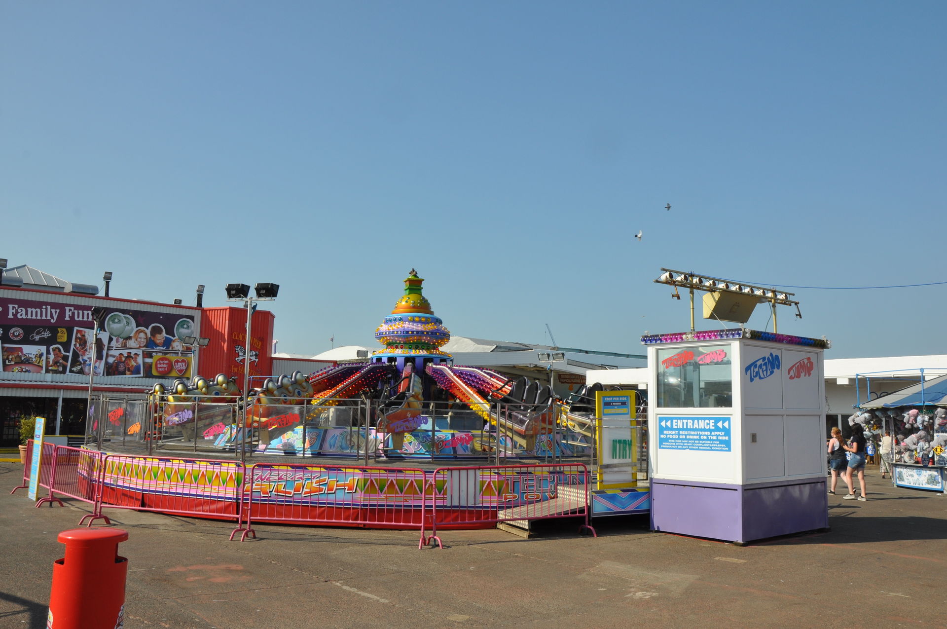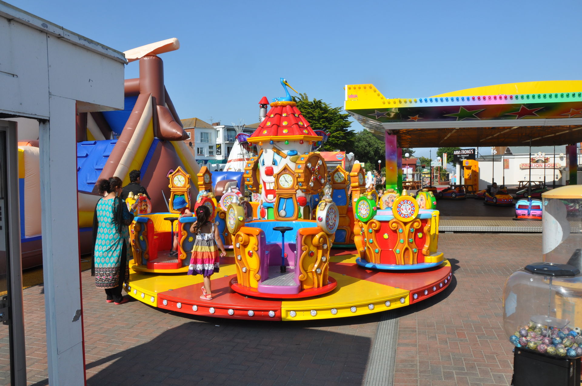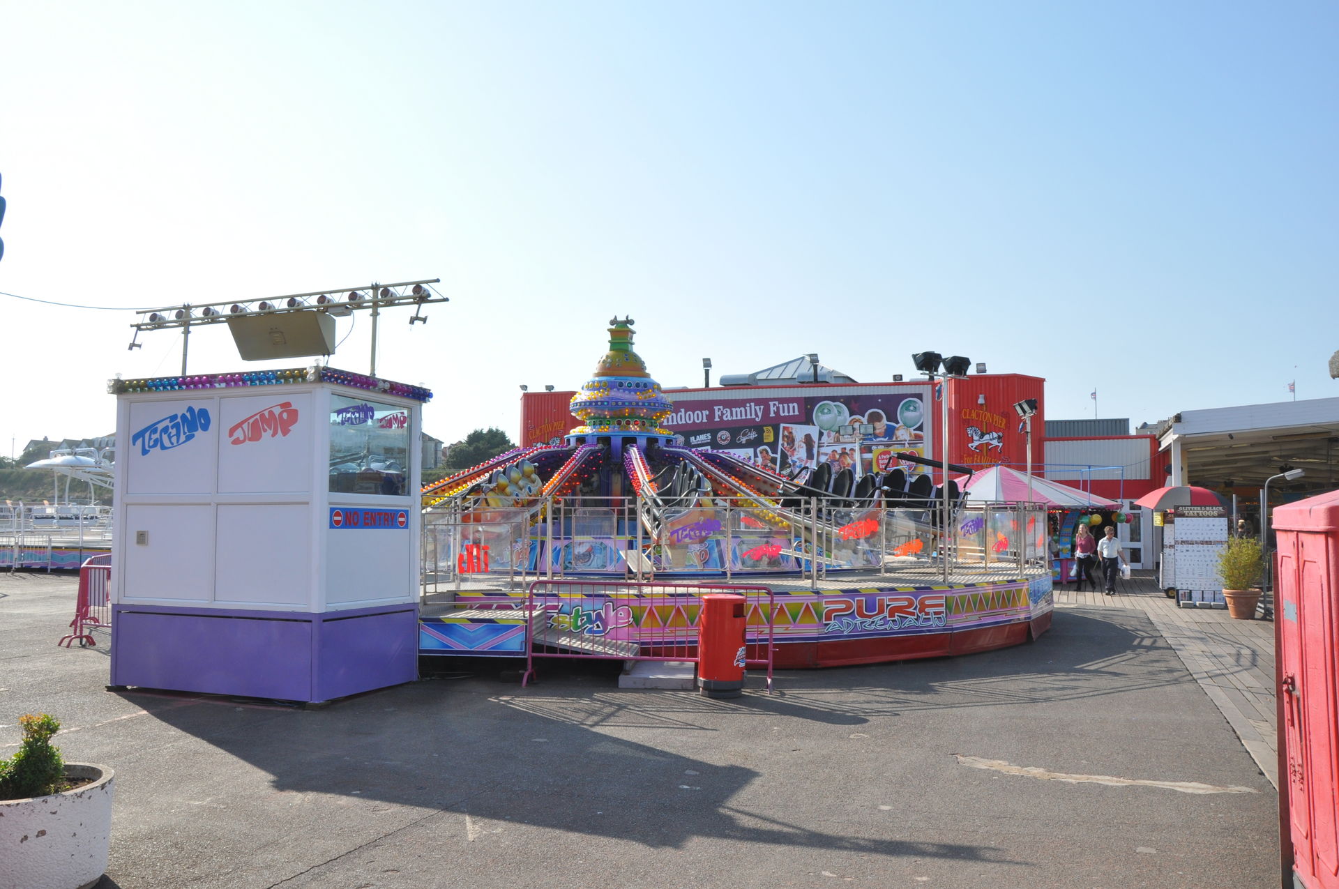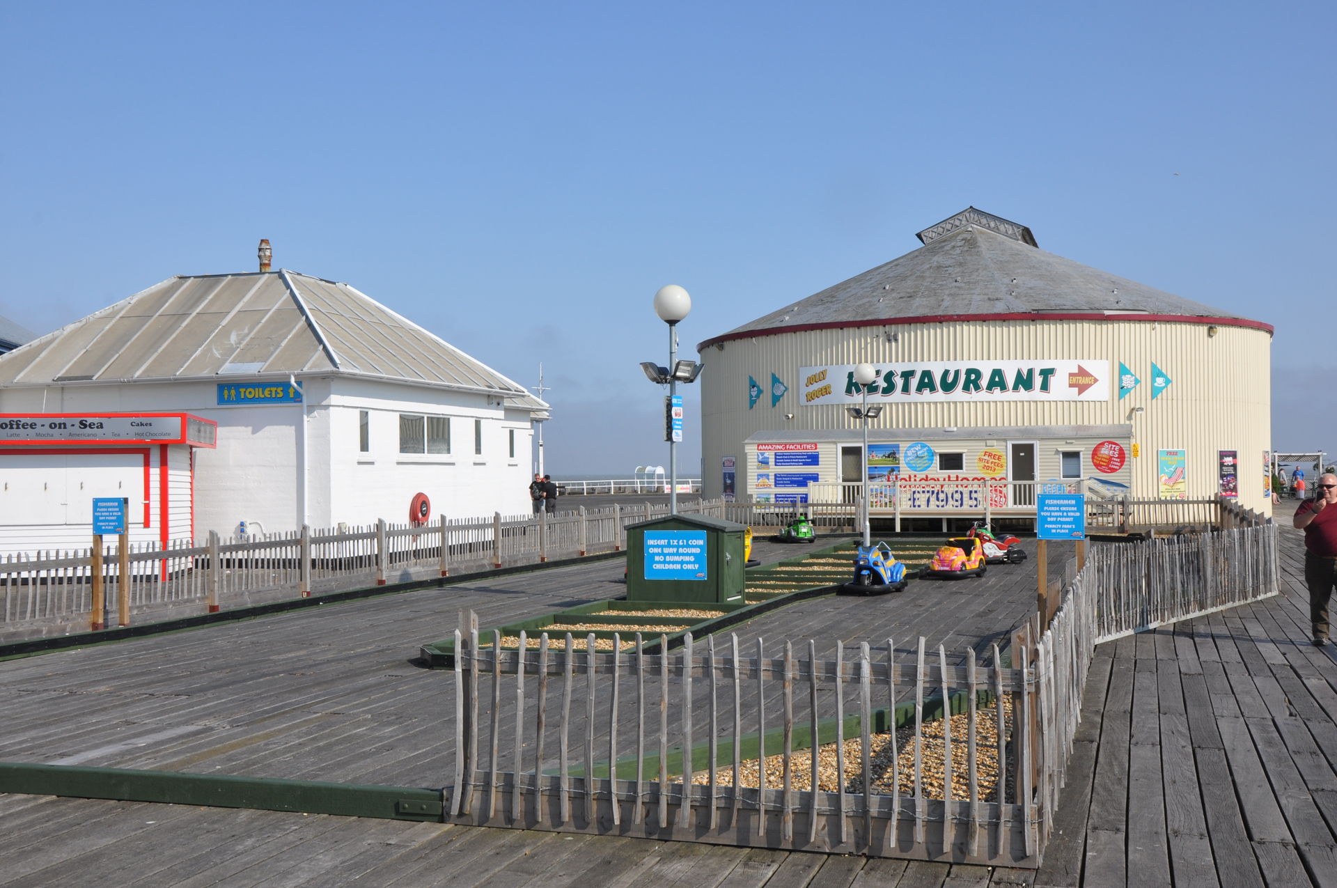 Zum Abschluss unseres Urlaubs ging es nun nach Clacton on Sea. Dieses liegt etwas unterhalb vom Fährhafen in Harwich. Hier waren wir bereits bei unserem letzten Besuch auf der Insel vor zwei Jahren, leider damals zu spät am Abend. In beiden Parks waren die Fahrgeschäfte schon geschlossen. Diesmal war die Reihenfolge also erst die Parks, dann Essen. Wobei „Parks“ natürlich übertrieben ist. Der neuere, der Pavilion Fun Park, eröffnet 2011, steht oben an der Promenade. Die Fahrgeschäfte hier richten sich nur an kleinere Fahrgäste. Das gab natürlich wieder verwunderte Blicke, als wir die Token für die Gold Mine gelöst haben. Aber man ließ uns fahren.