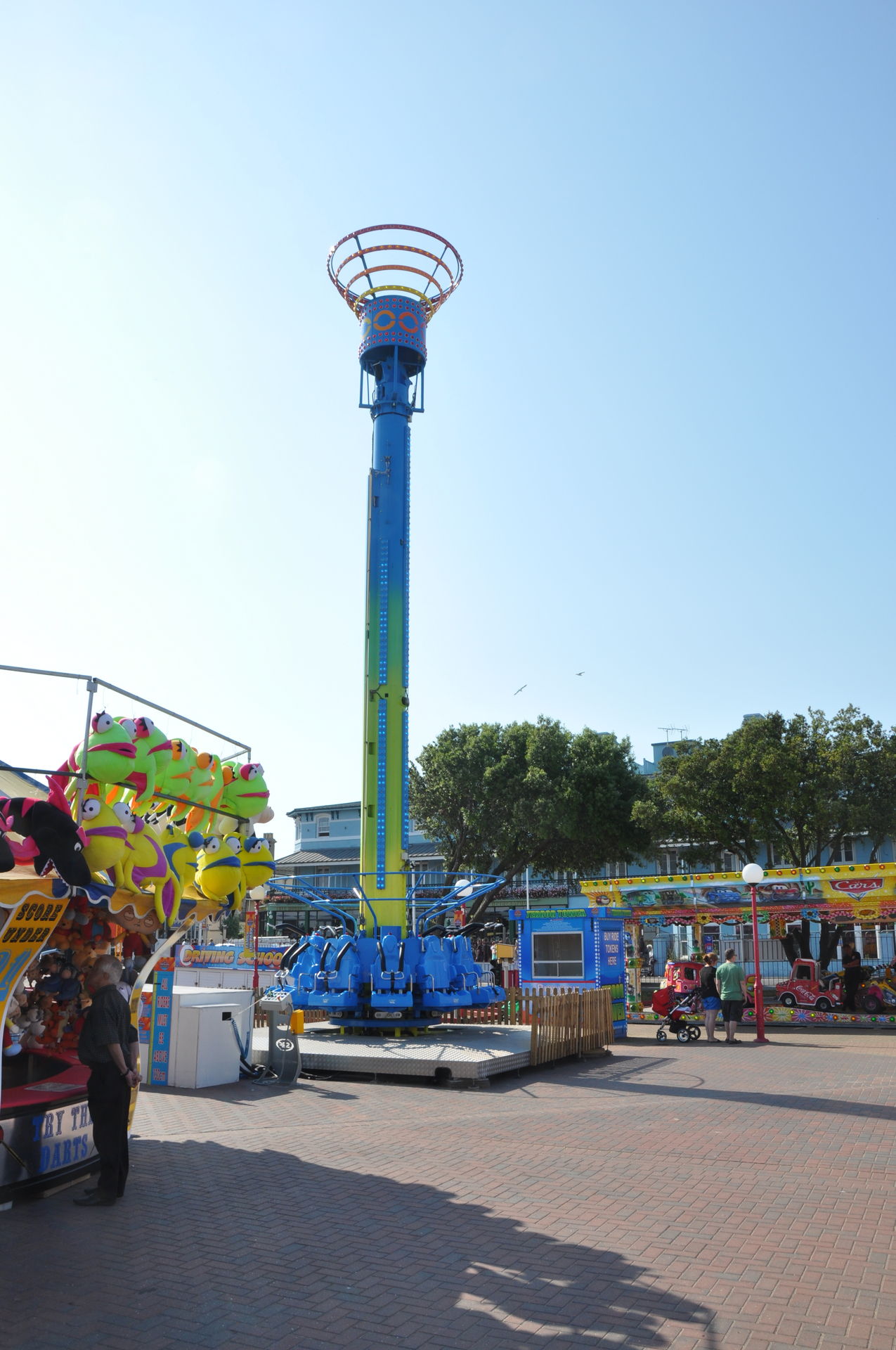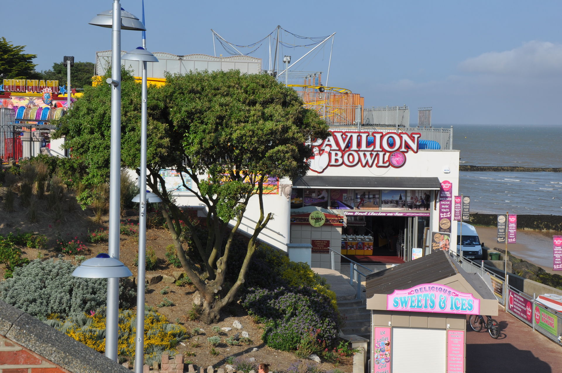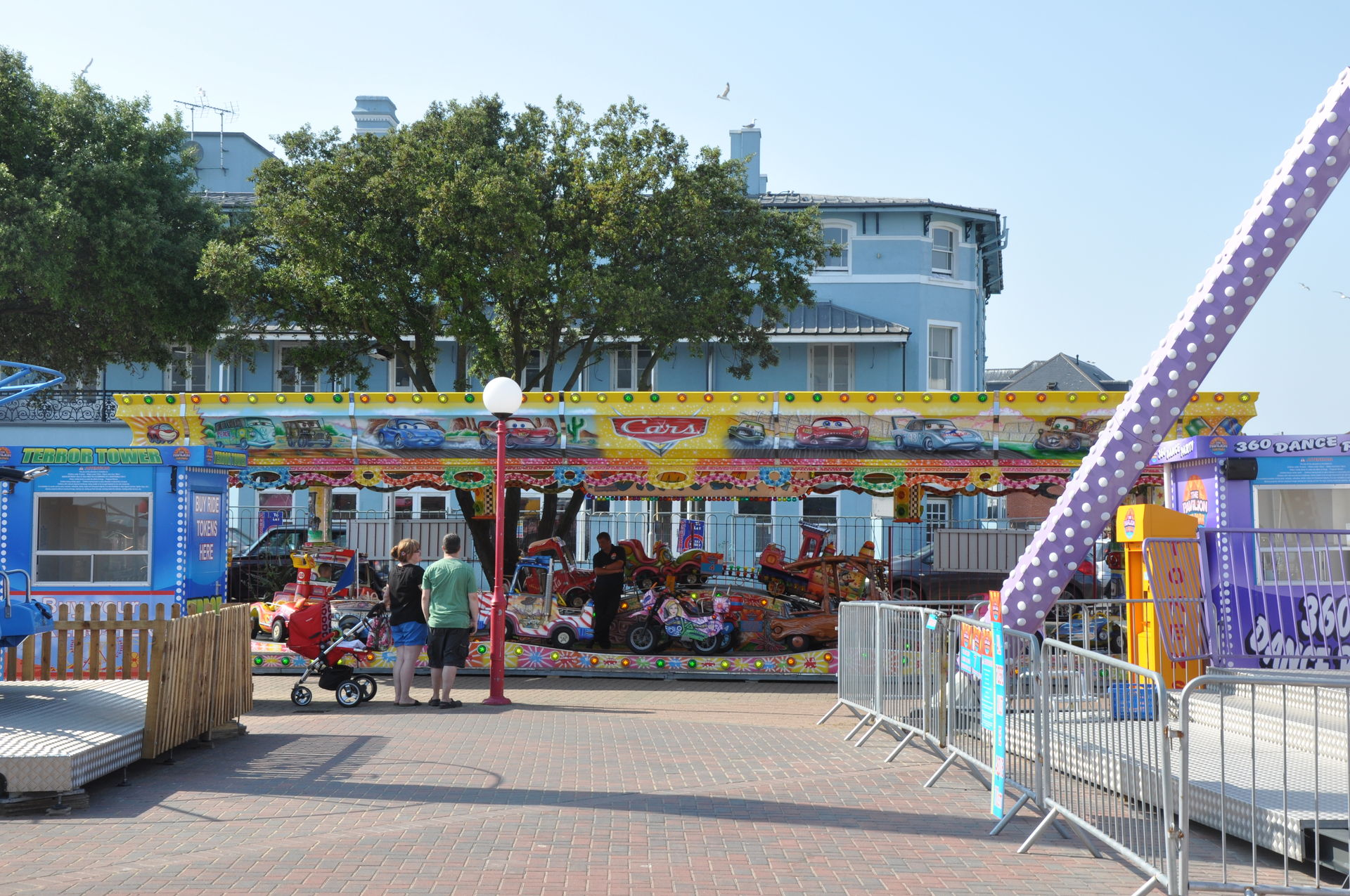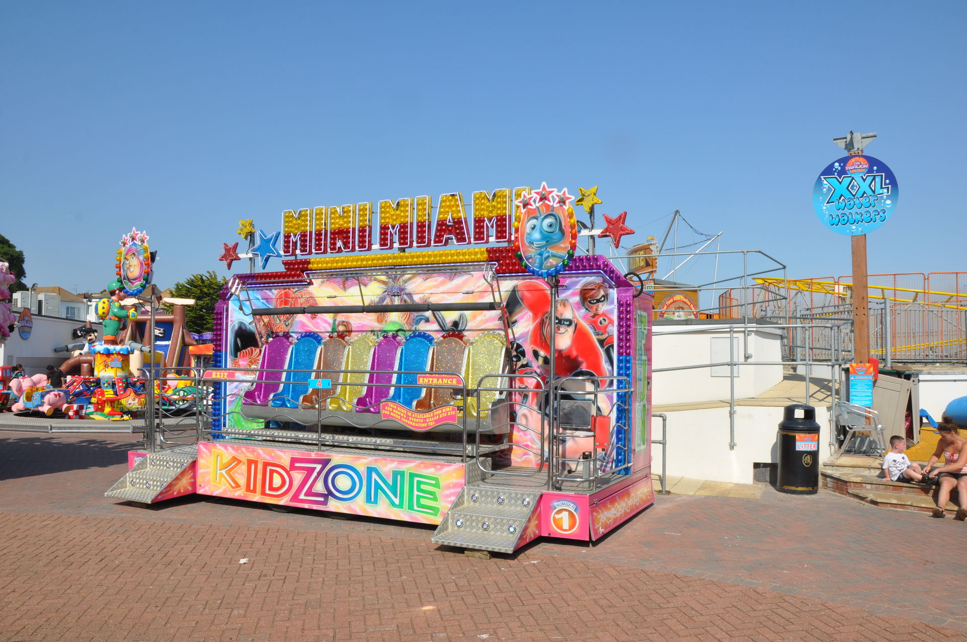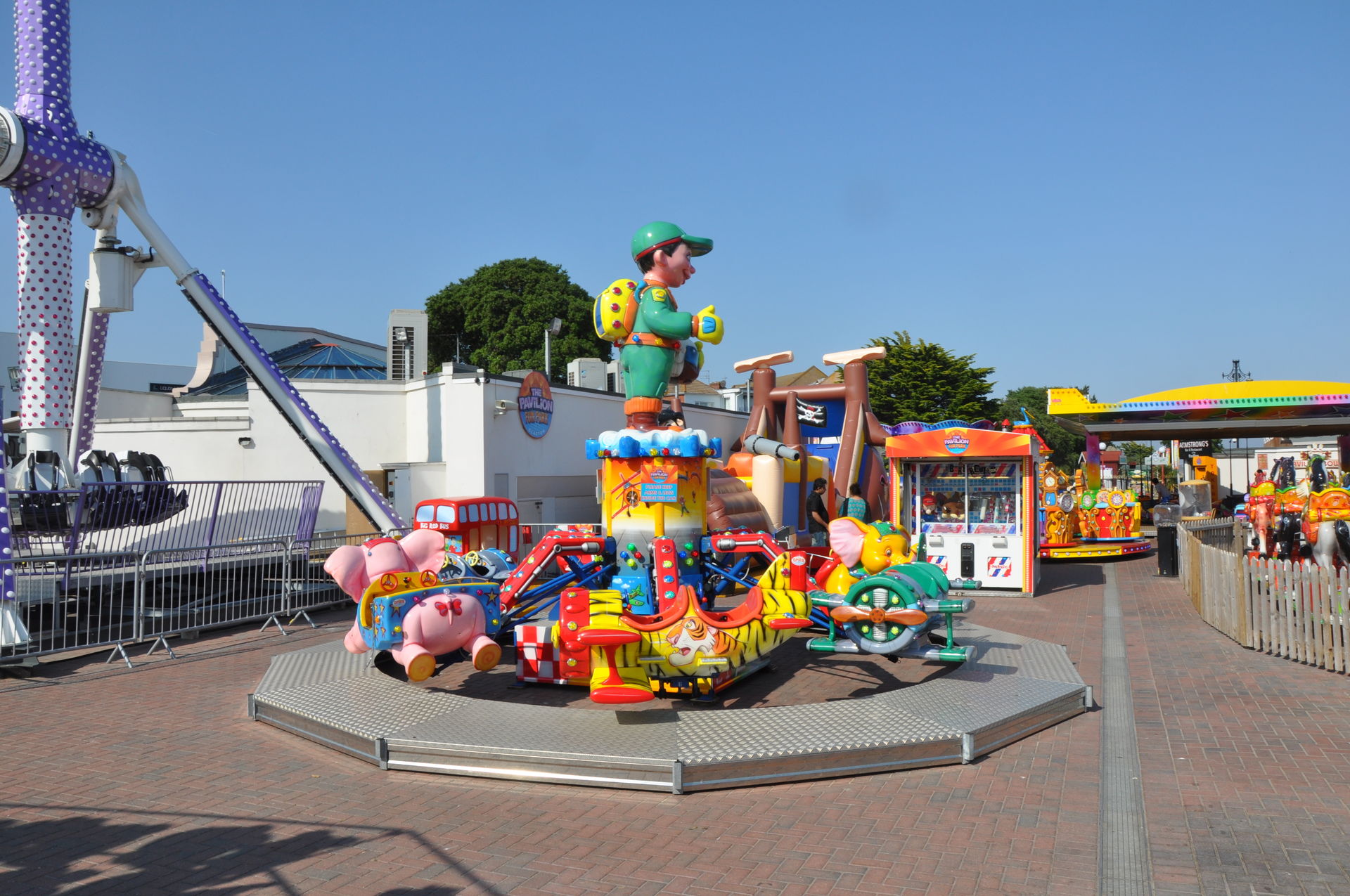 Zum Abschluss unseres Urlaubs ging es nun nach Clacton on Sea. Dieses liegt etwas unterhalb vom Fährhafen in Harwich. Hier waren wir bereits bei unserem letzten Besuch auf der Insel vor zwei Jahren, leider damals zu spät am Abend. In beiden Parks waren die Fahrgeschäfte schon geschlossen. Diesmal war die Reihenfolge also erst die Parks, dann Essen. Wobei „Parks“ natürlich übertrieben ist. Der neuere, der Pavilion Fun Park, eröffnet 2011, steht oben an der Promenade. Die Fahrgeschäfte hier richten sich nur an kleinere Fahrgäste. Das gab natürlich wieder verwunderte Blicke, als wir die Token für die Gold Mine gelöst haben. Aber man ließ uns fahren.