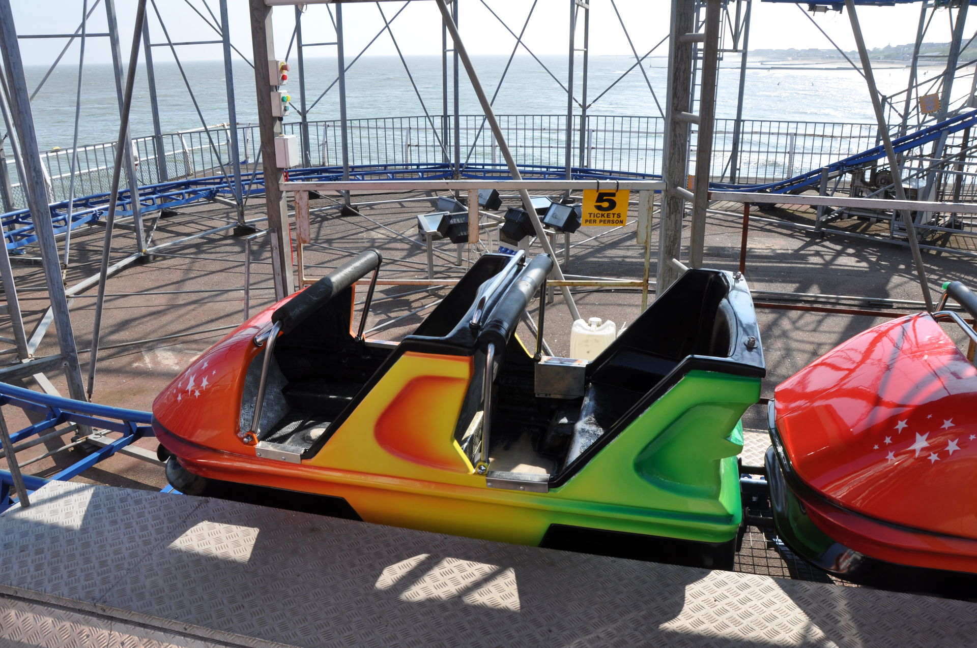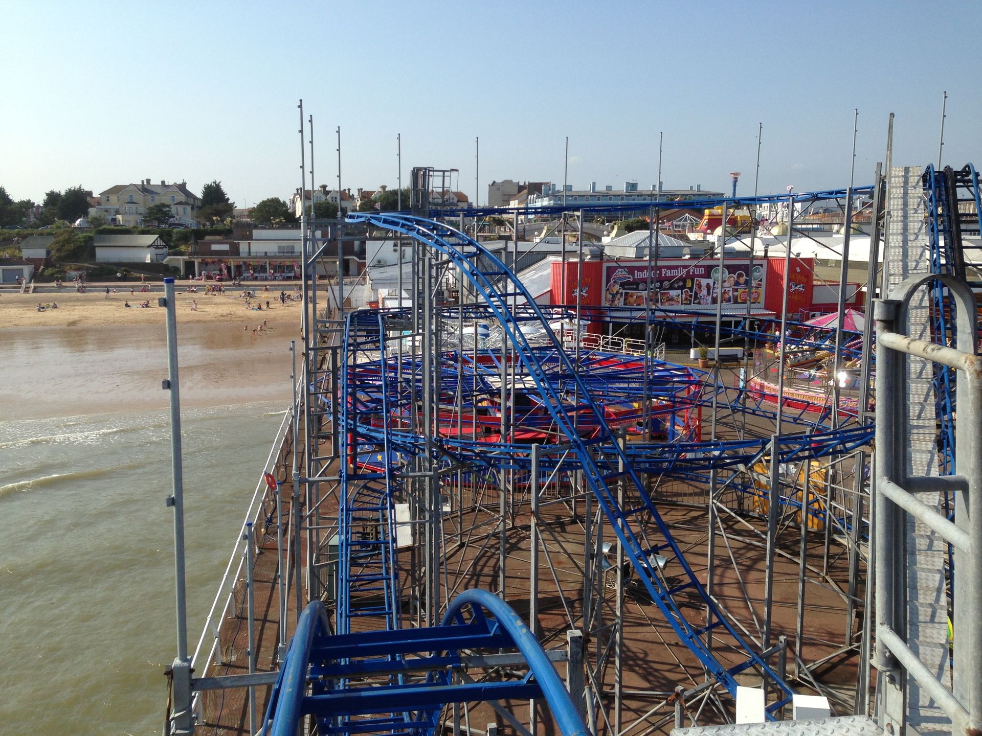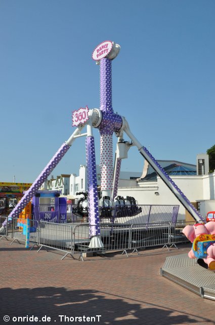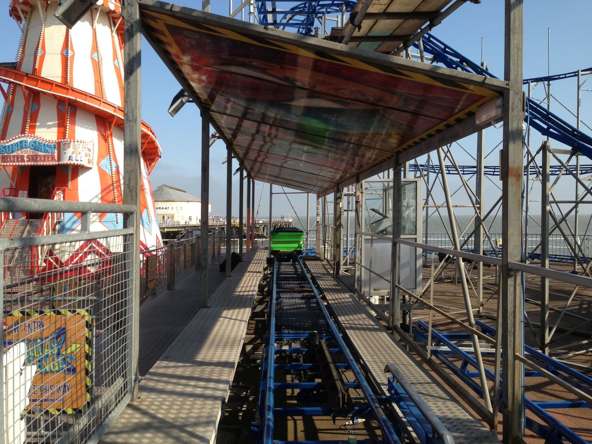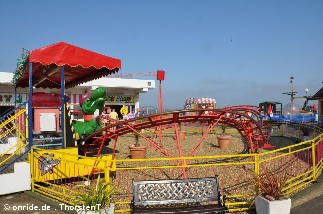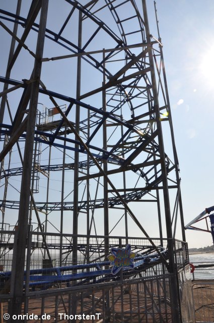 Zum Schluss fuhren wir noch Stellas Revenge. Diese Bahn kam 2011 aus dem Barry Island Pleasure Park in Wales auf den Pier. Bei unserem letzten Besuch war sie noch nicht vollständig aufgebaut. Es handelt sich um eine Bahn im klassischen 8-ter Layout. Hier kann man nicht viel falsch machen. Insbesondere auf einem Pier, direkt am Wasser, liebe ich diesen Typ. Die Fahrt hat etwas Nostalgisches.