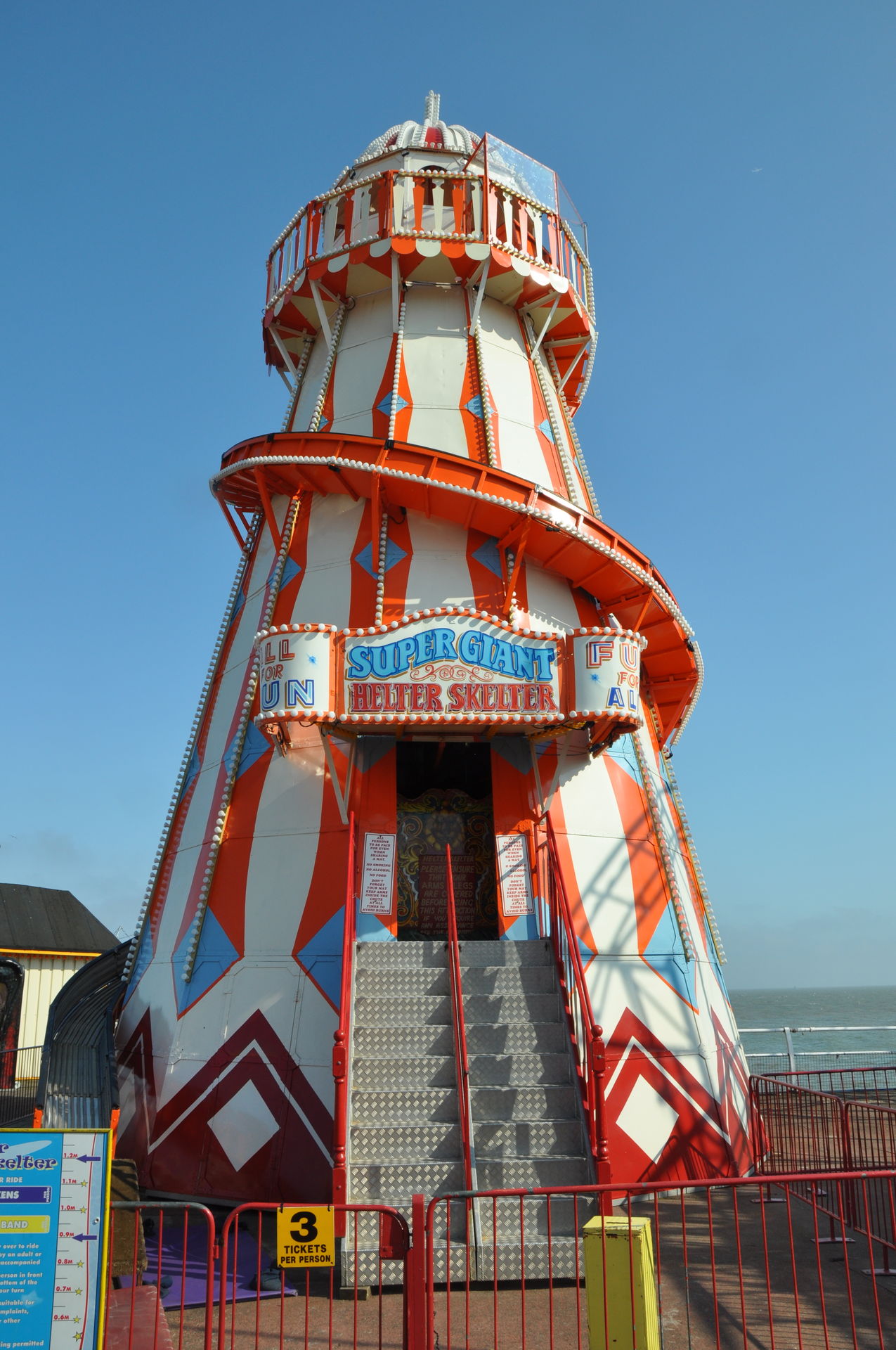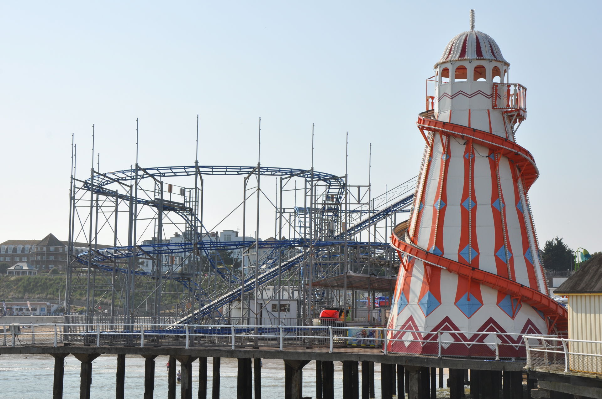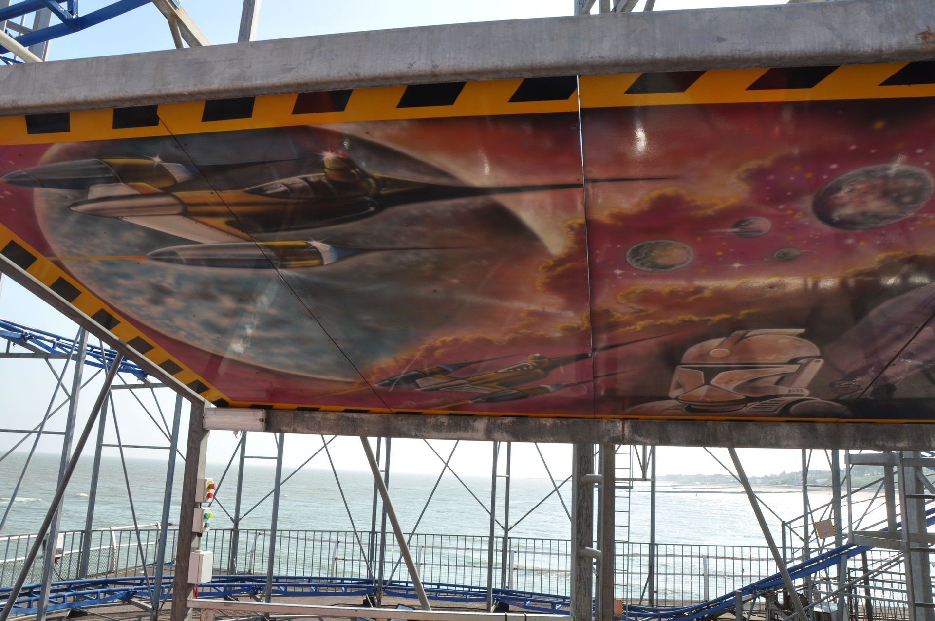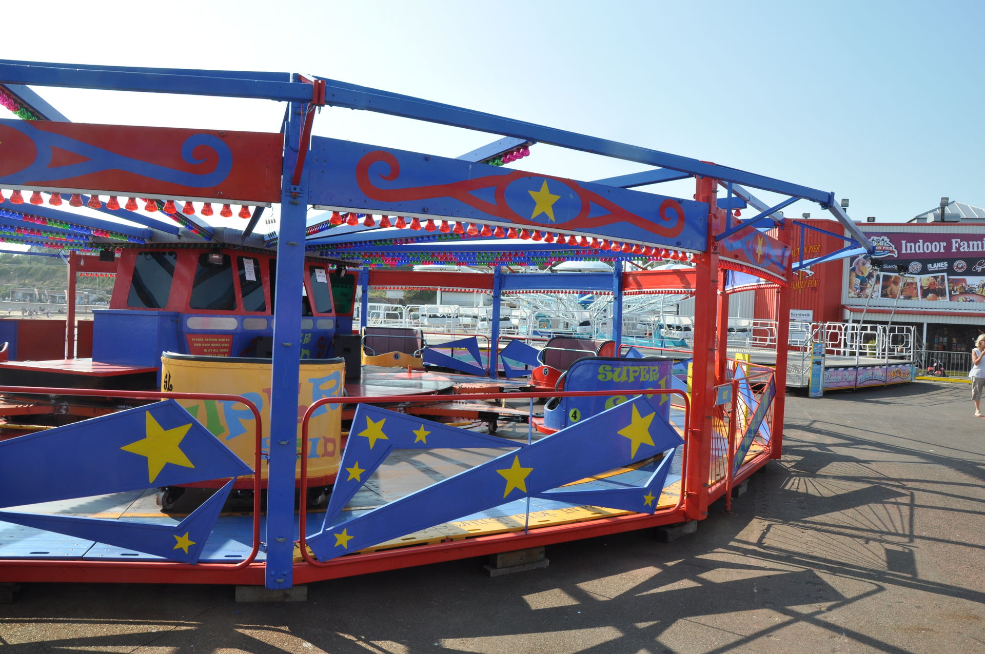 Zum Schluss fuhren wir noch Stellas Revenge. Diese Bahn kam 2011 aus dem Barry Island Pleasure Park in Wales auf den Pier. Bei unserem letzten Besuch war sie noch nicht vollständig aufgebaut. Es handelt sich um eine Bahn im klassischen 8-ter Layout. Hier kann man nicht viel falsch machen. Insbesondere auf einem Pier, direkt am Wasser, liebe ich diesen Typ. Die Fahrt hat etwas Nostalgisches.