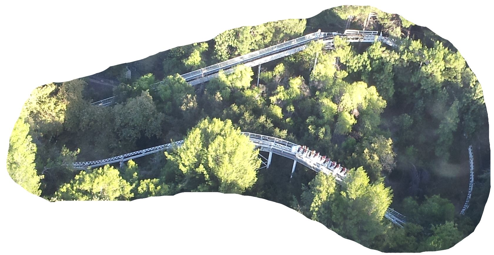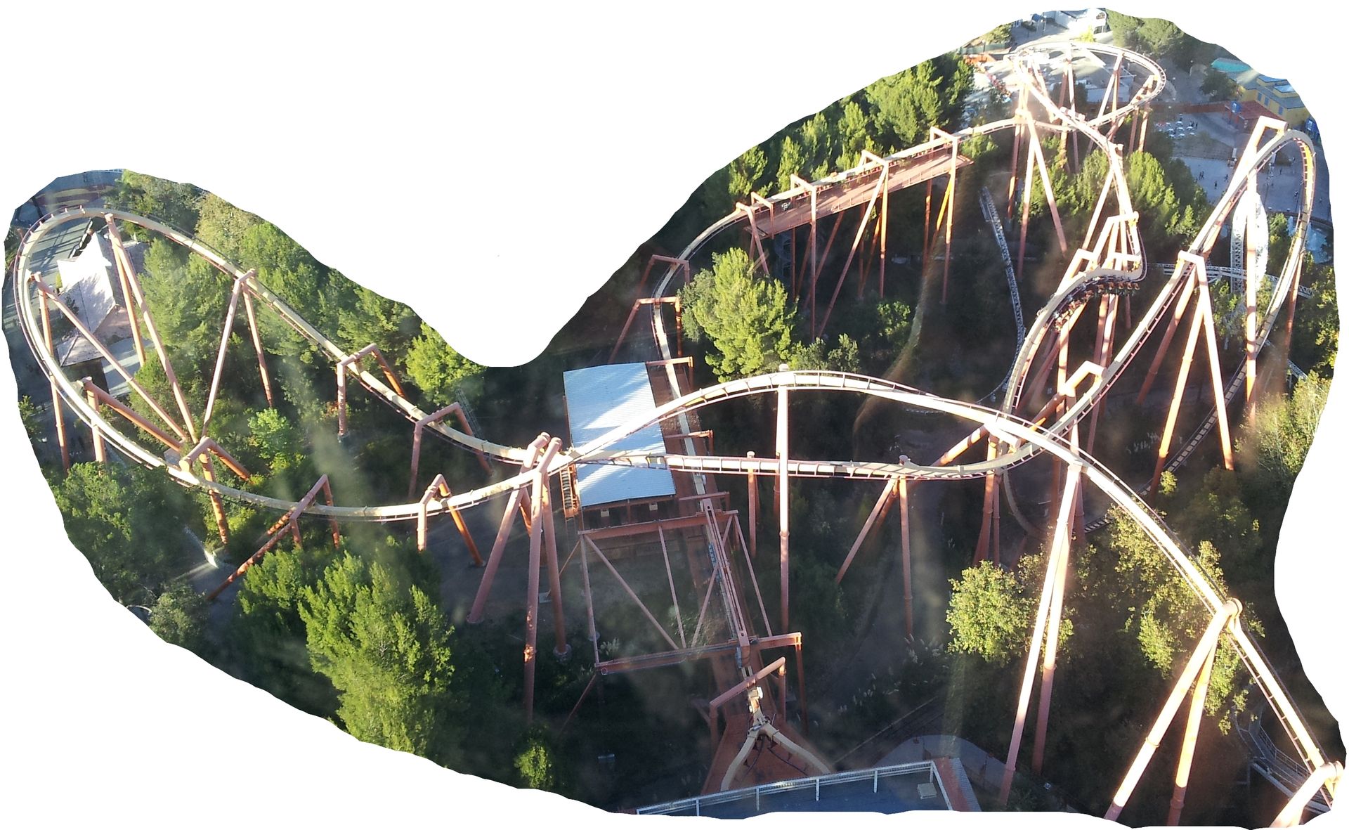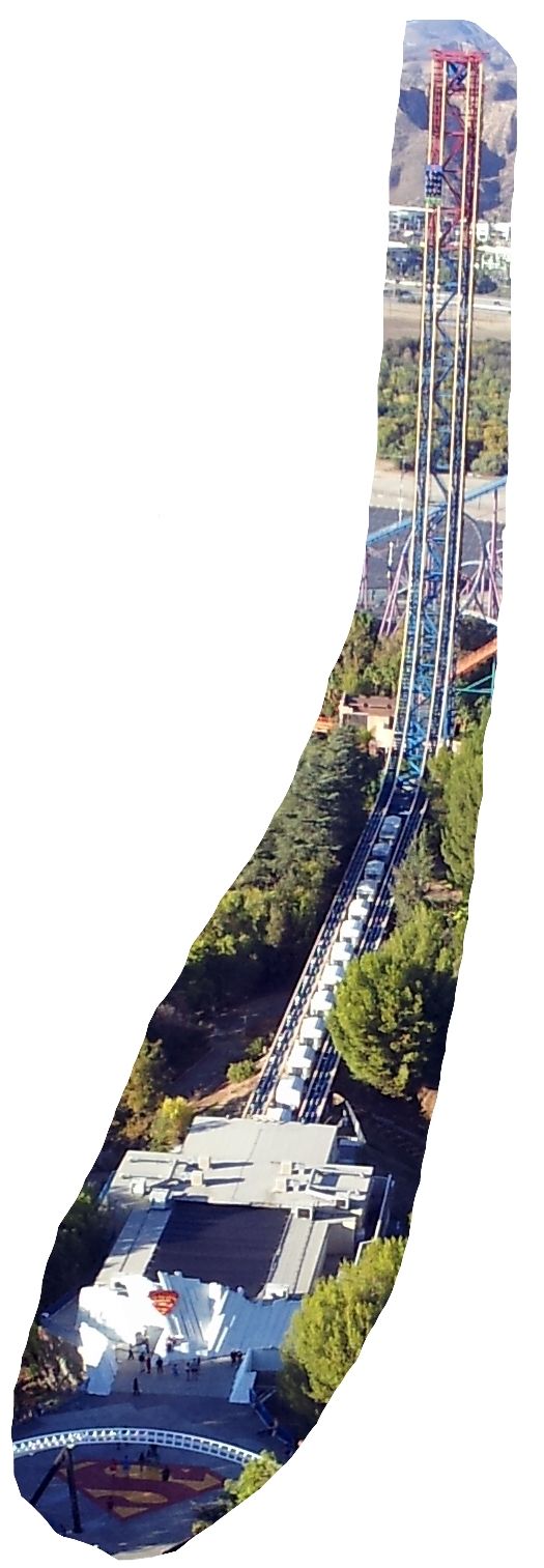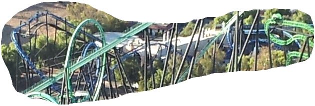 Ich hatte auch mal versucht, ob ich mit der Panoramafunktion von hier oben nicht alle Achterbahnen auf ein Bild bekommen würde. Das ist mir aber leider nicht so gelungen, wie ich gehofft hatte.